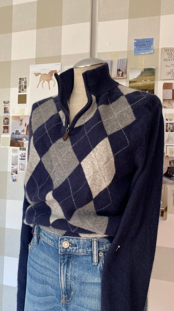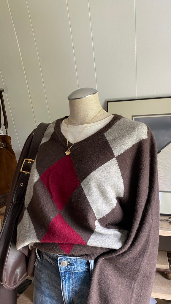 100% cashmere argyle sweater size xxl