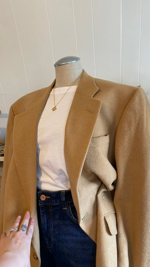 100% camel hair blazer good for size small / medium for slight oversized fit (measurements in photos)