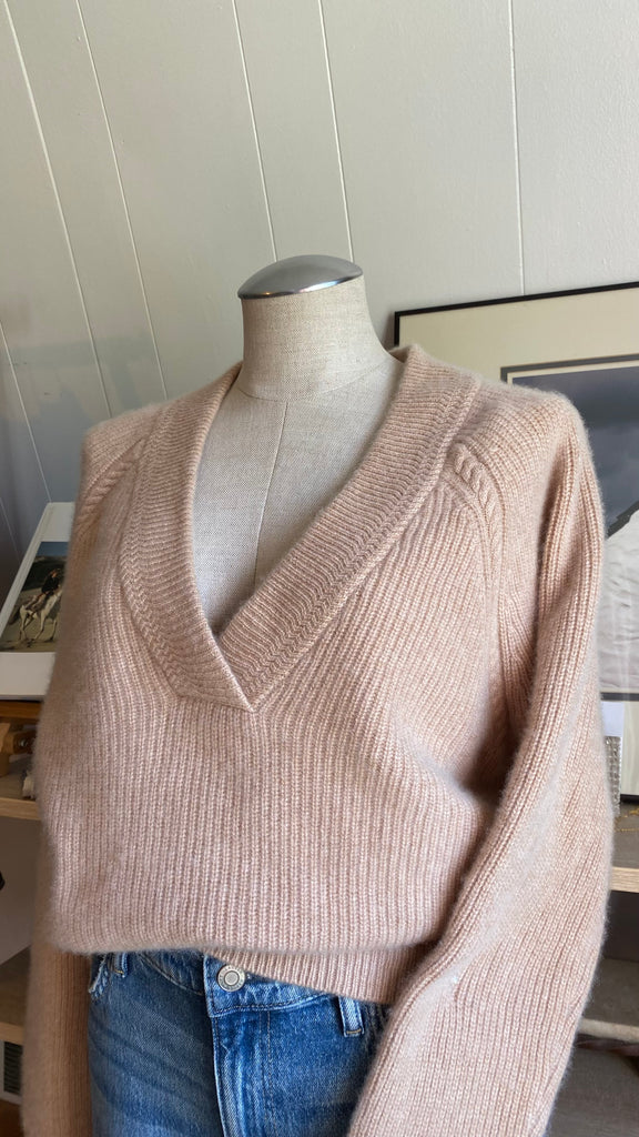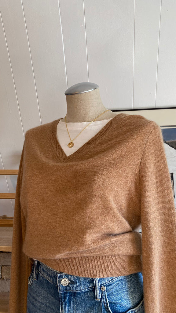 100% cashmere (thick beyond soft) like new tan sweater good for medium - large