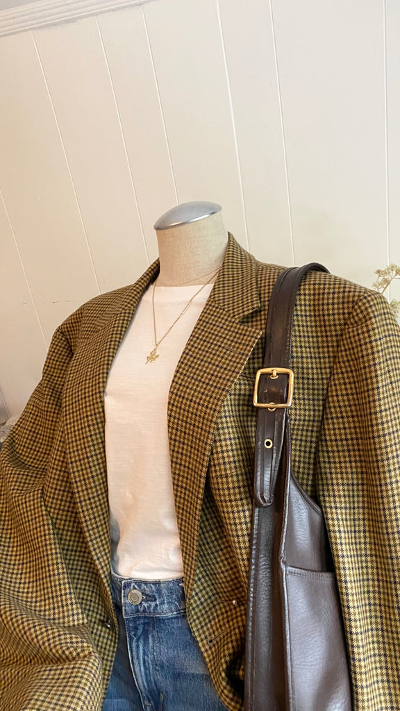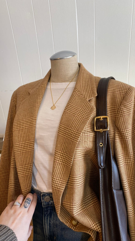 100% cashmere plaid blazer good for oversized look on size large / xl (measurements in photos)