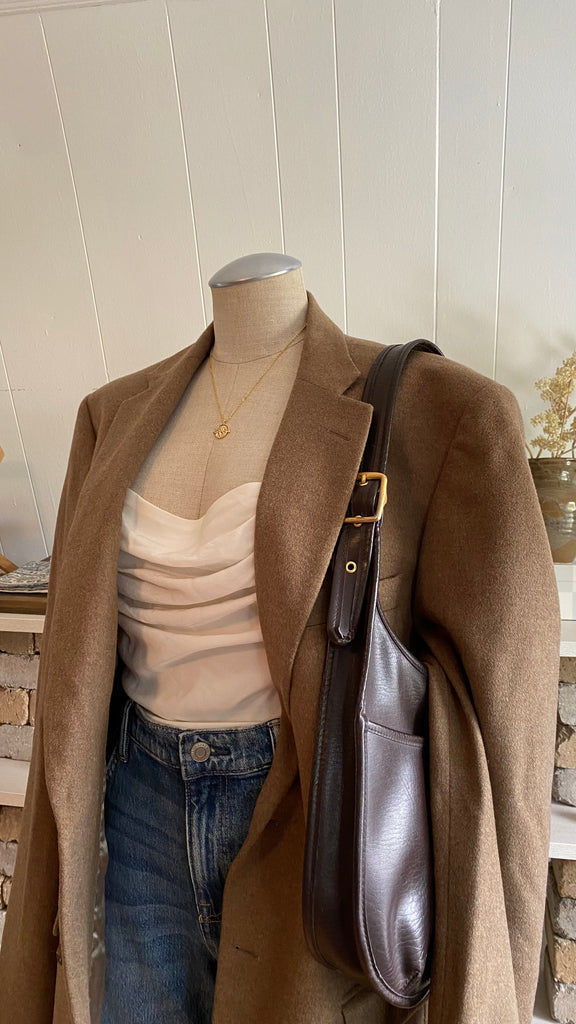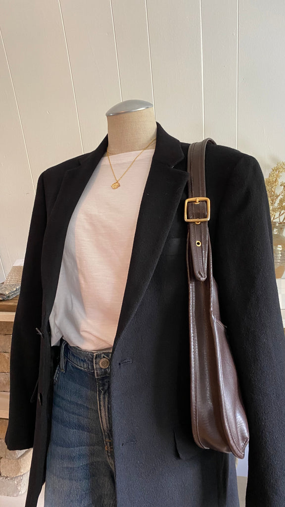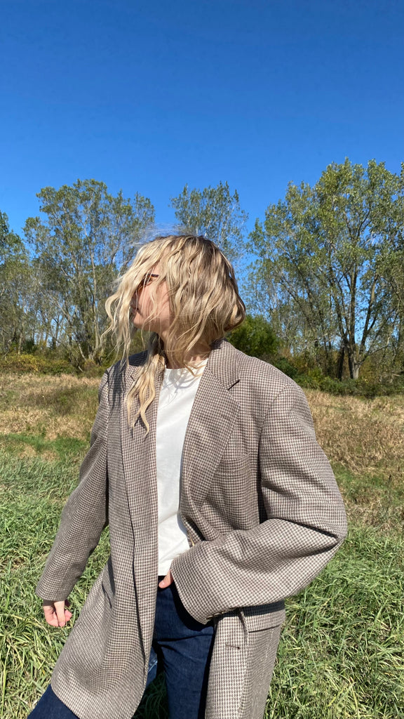 wool shell blazer good for woman’s large for slight oversized look (measurements in photos)
