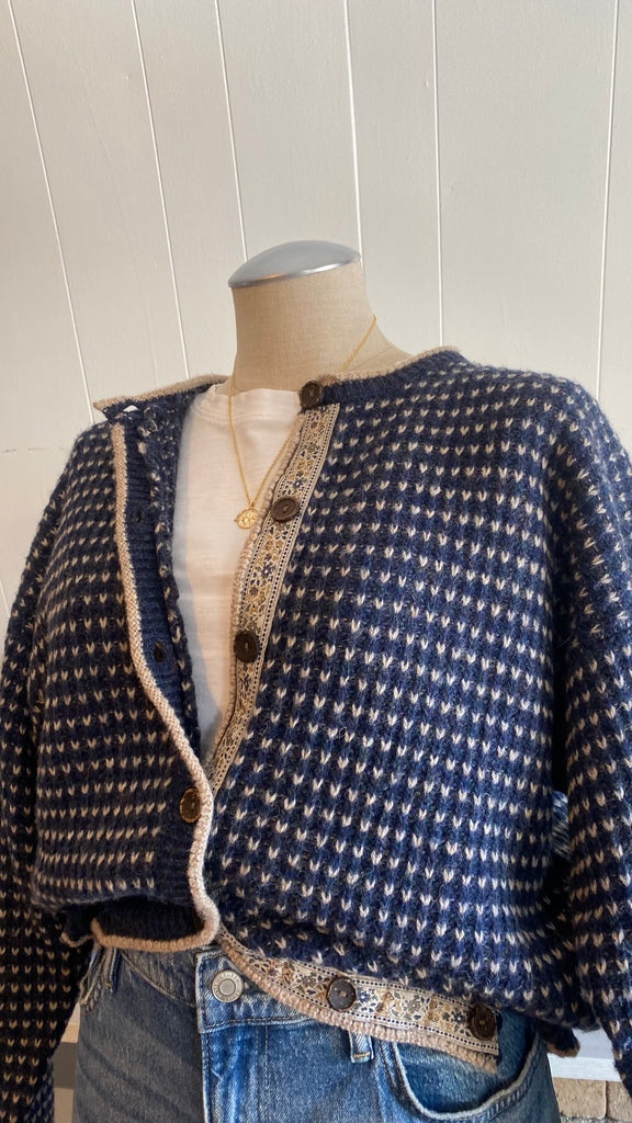 World folk arts 100% wool knit funky sweater cardigan good for many sizes ( works up to xl id say from my try on:)