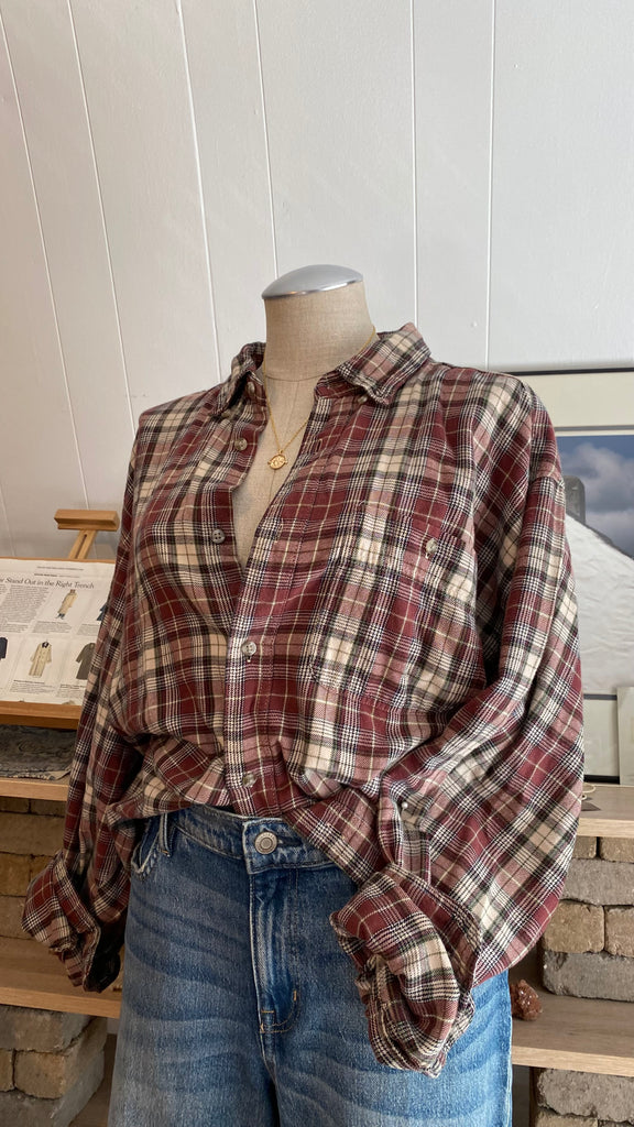 Wrangler cotton country plum plaid good for size xl (measurements in photos)