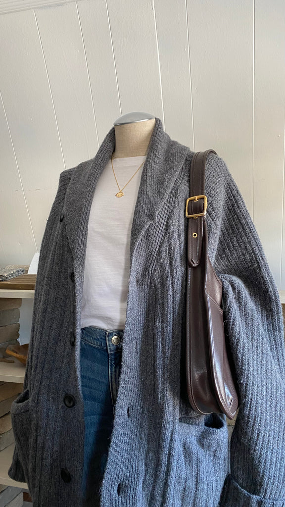 Xl 80% lambswool 20% angora grey flannel lined button up cardigan Duluth trading