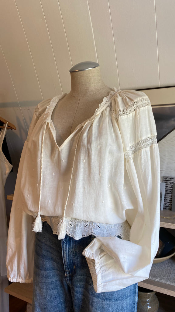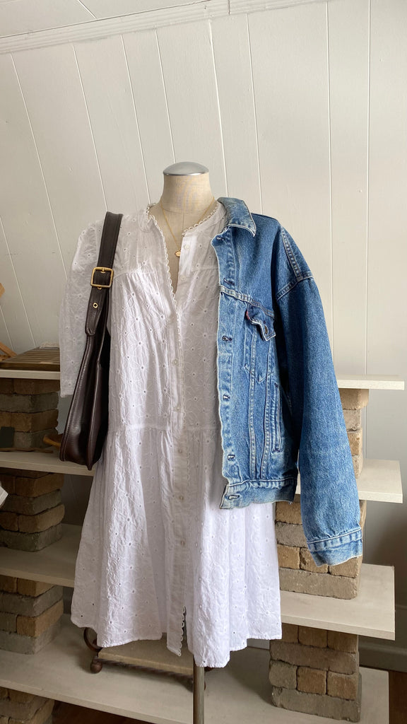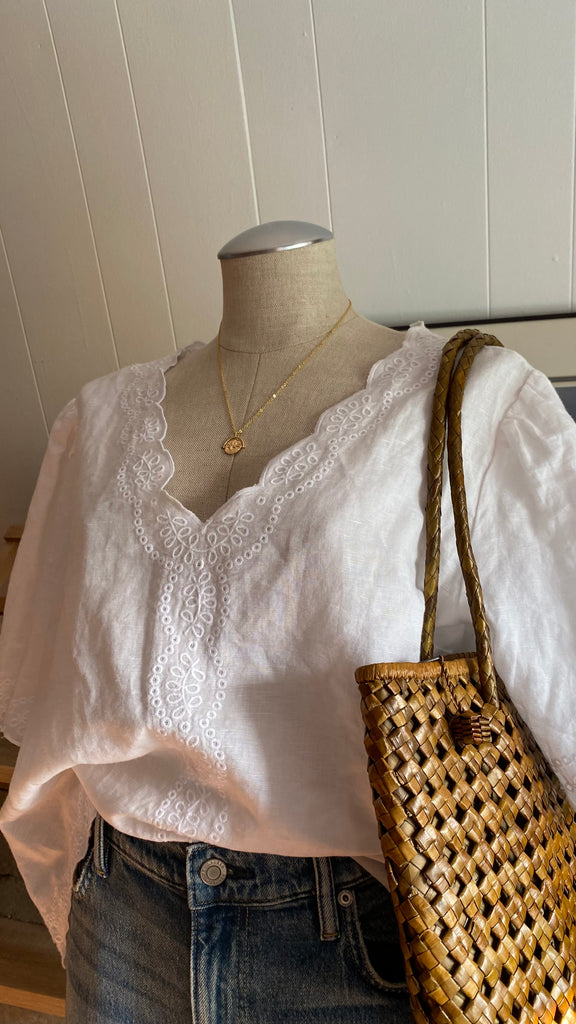 Xl linen and cotton eyelet scalloped blouse new with tags