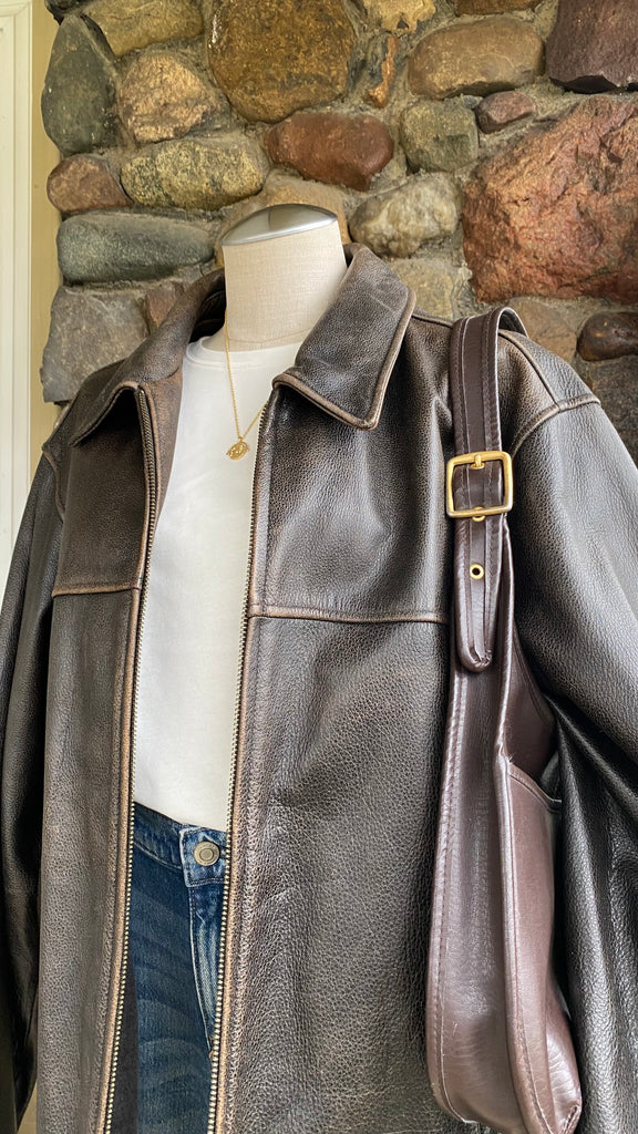 Xl genuine leather distressed brown jacket Eddie Bauer