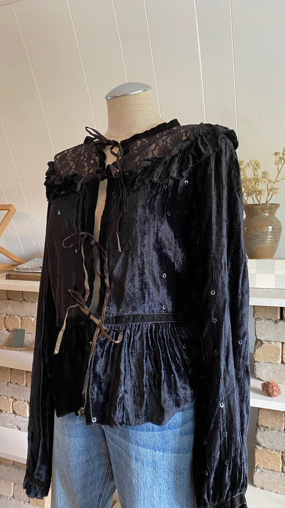 Y2k 100% cotton medium tie front lace blouse brown and black