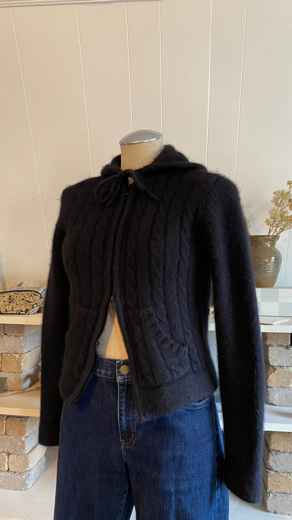 Y2k angora wool cotton cable knit black zip up sweater good for size small