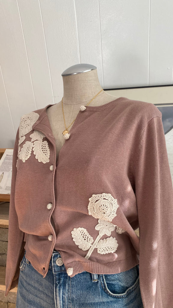 Y2k crochet dusty pink cardigan large