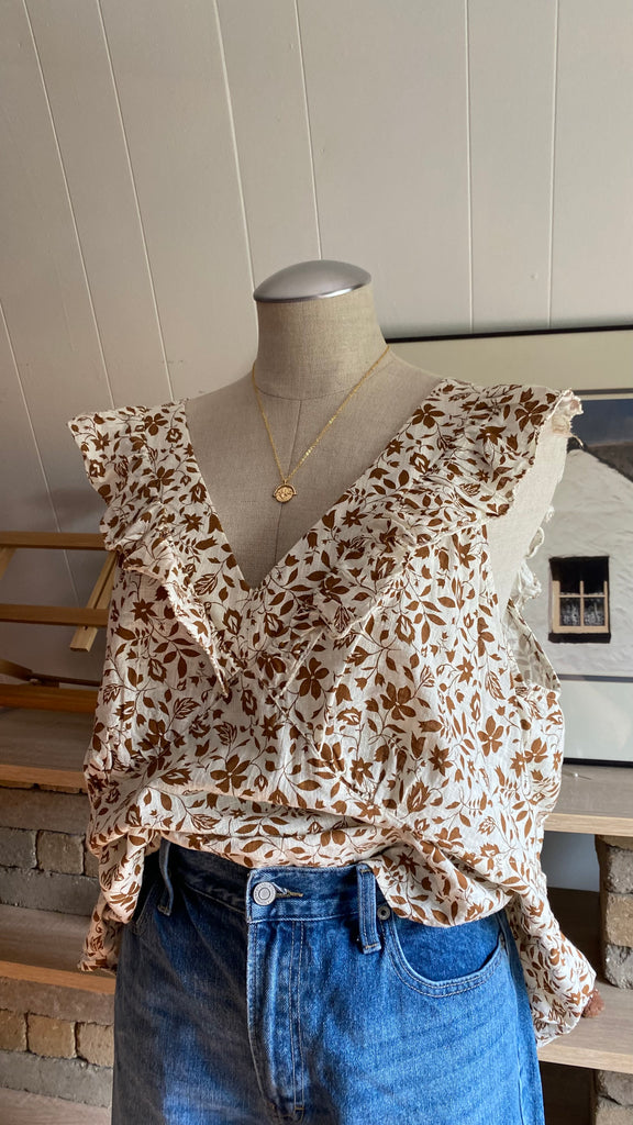 Xxl fall floral sleeveless blouse 100% cotton