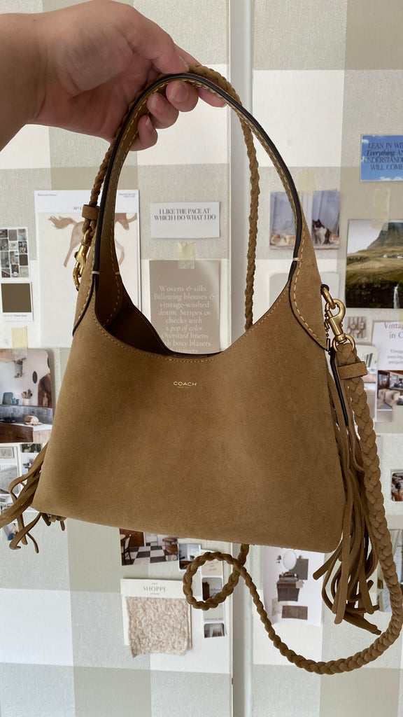 New with tags in box coach western fringe genuine suede braided strap purse