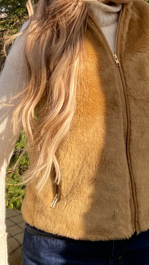 Vintage wool blend textured camel sweater vest good for size medium- large