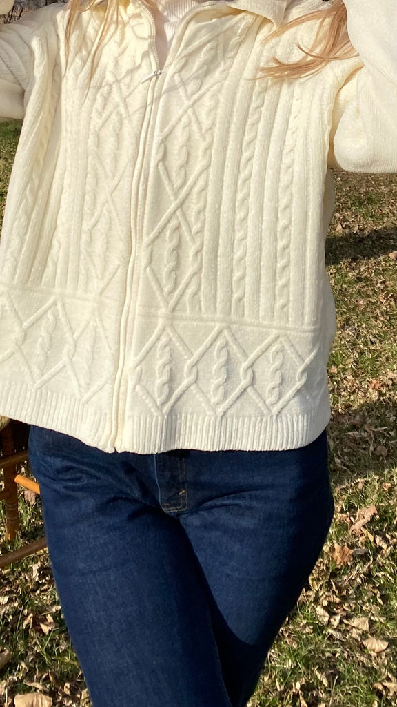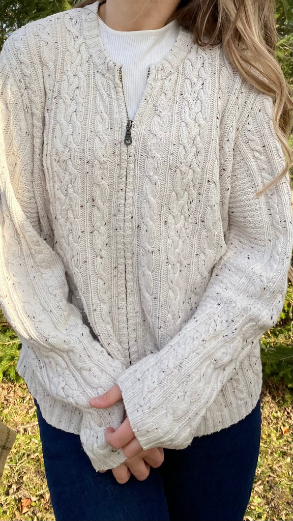 Hand knit thick wool sweater cardigan good for size medium (measurements in photos)