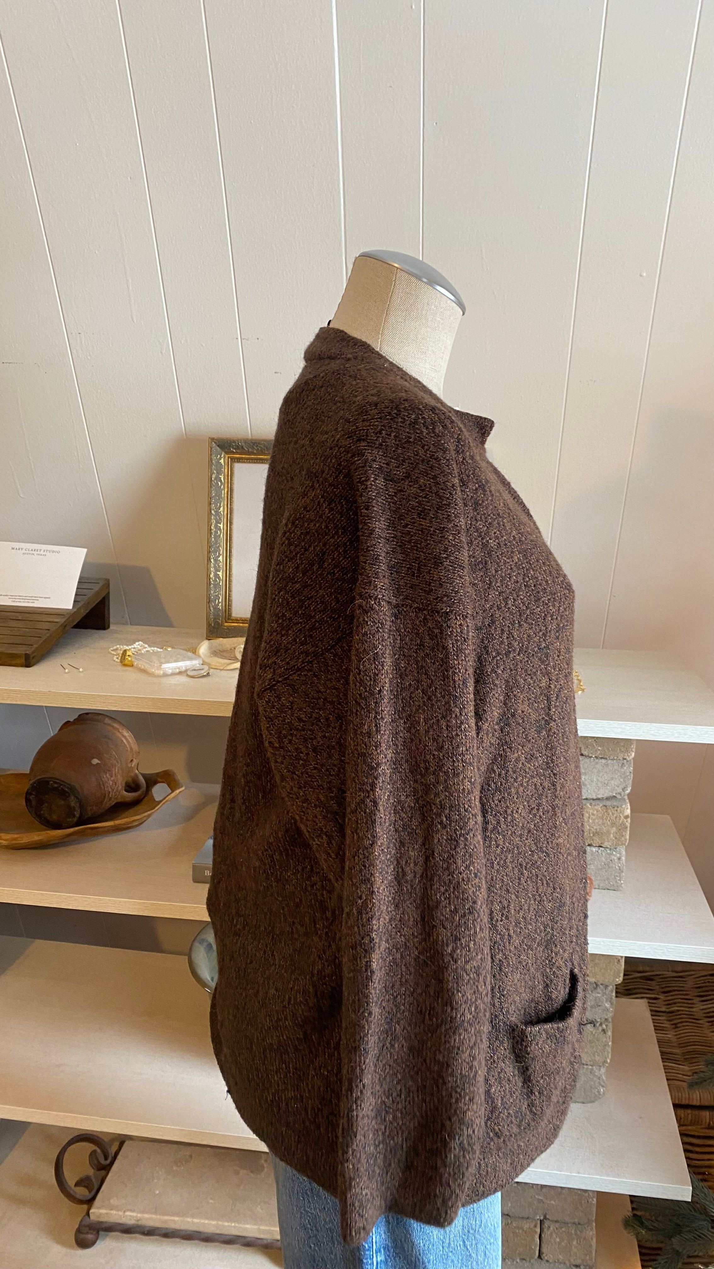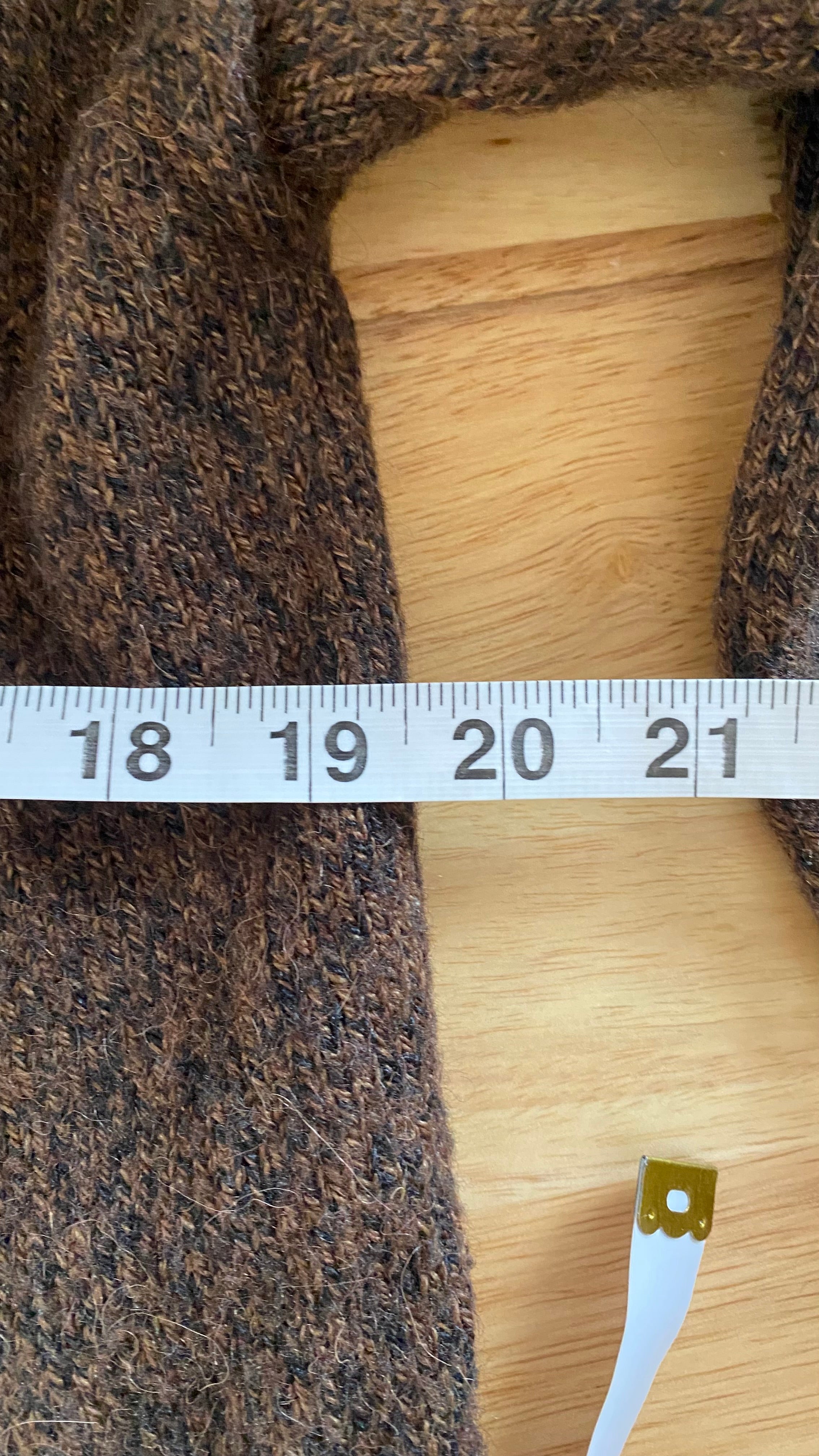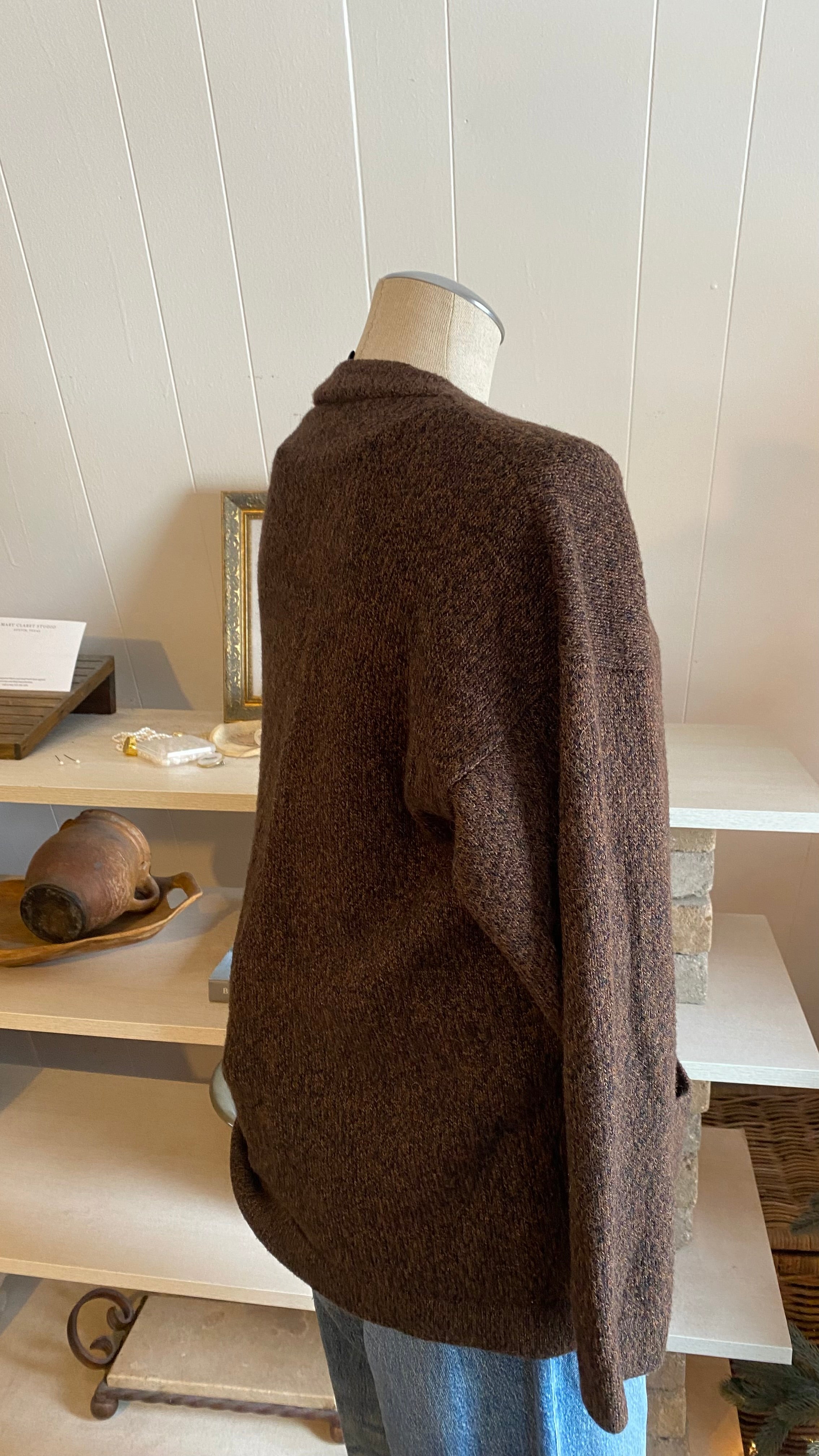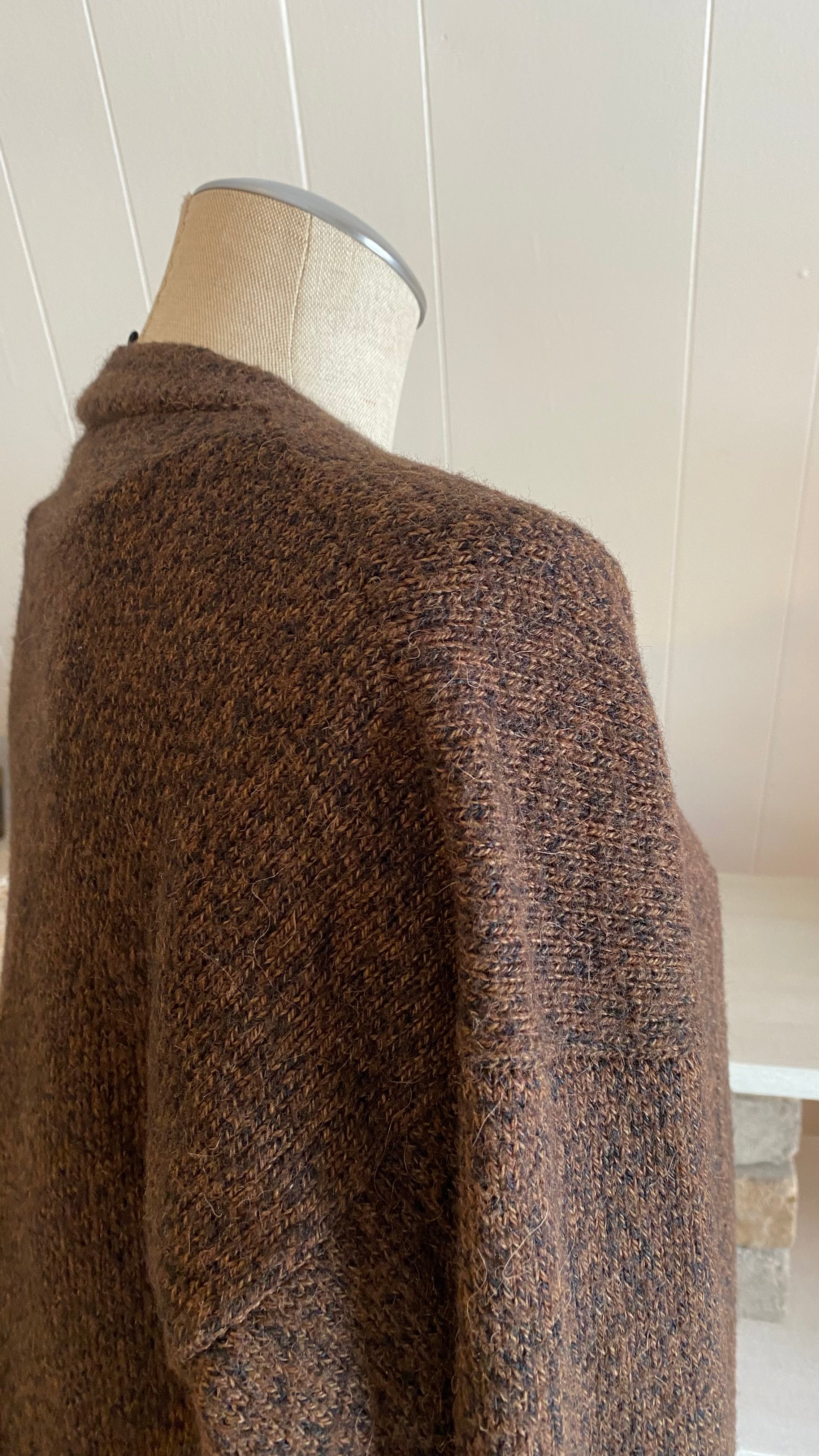 100% alpaca brown black knit cardi good for medium / large (measurements in photos)