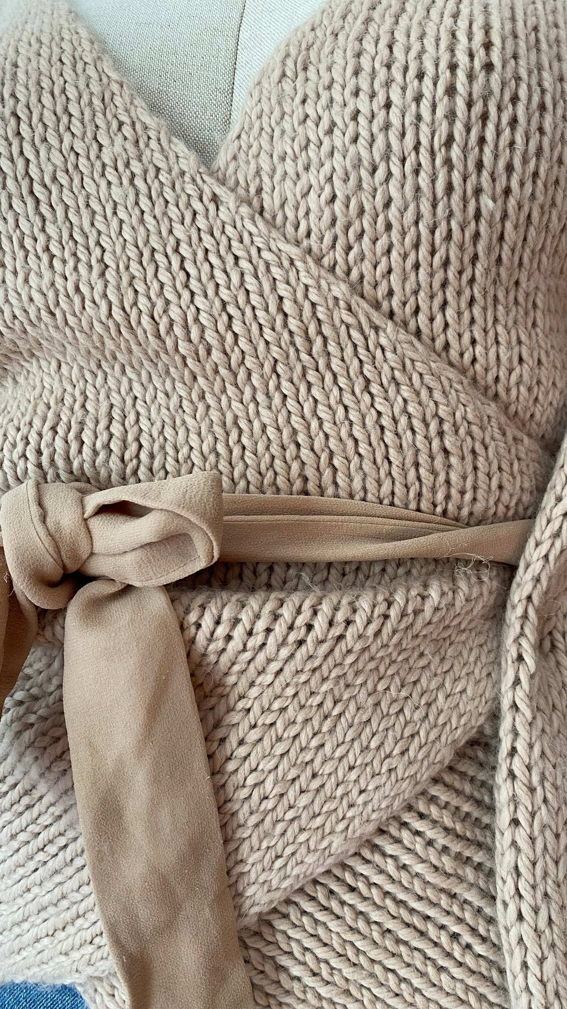 100% alpaca (super soft) knit cardigan with silk tie size small