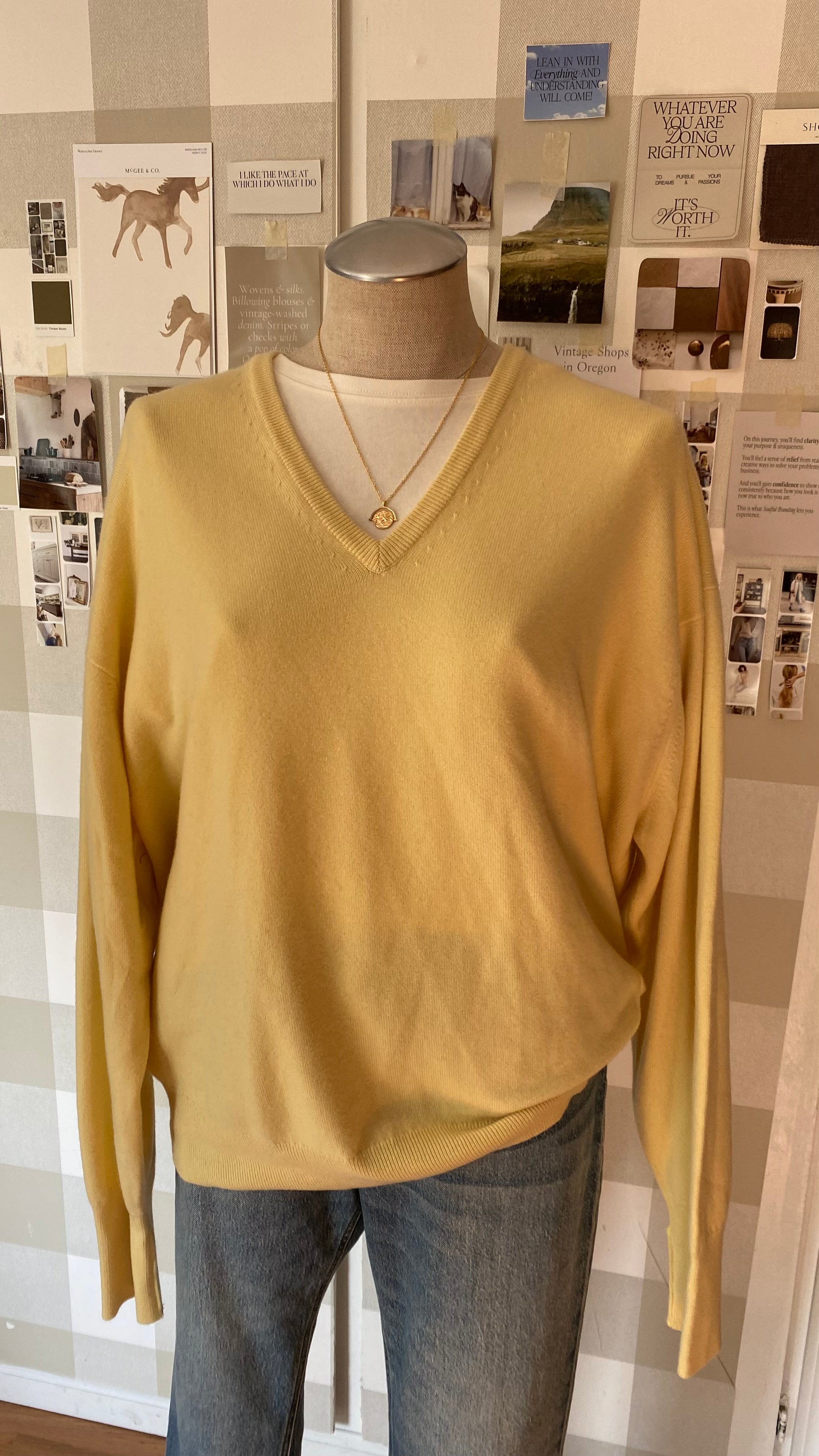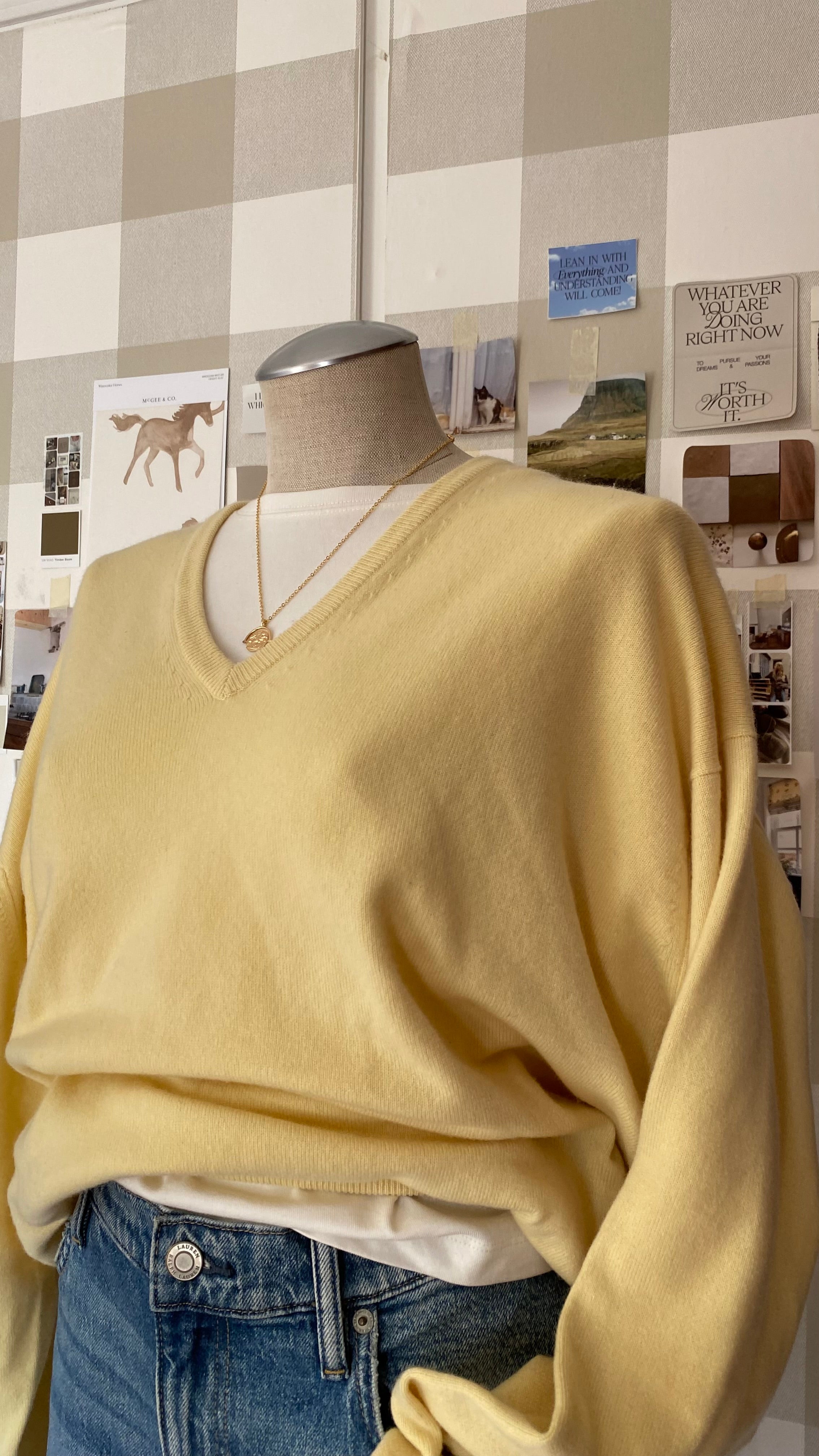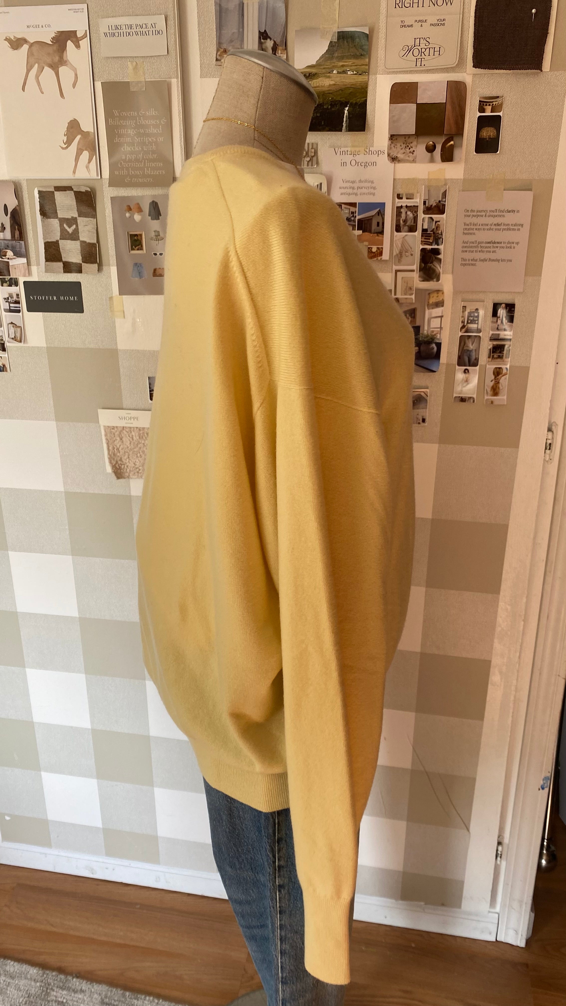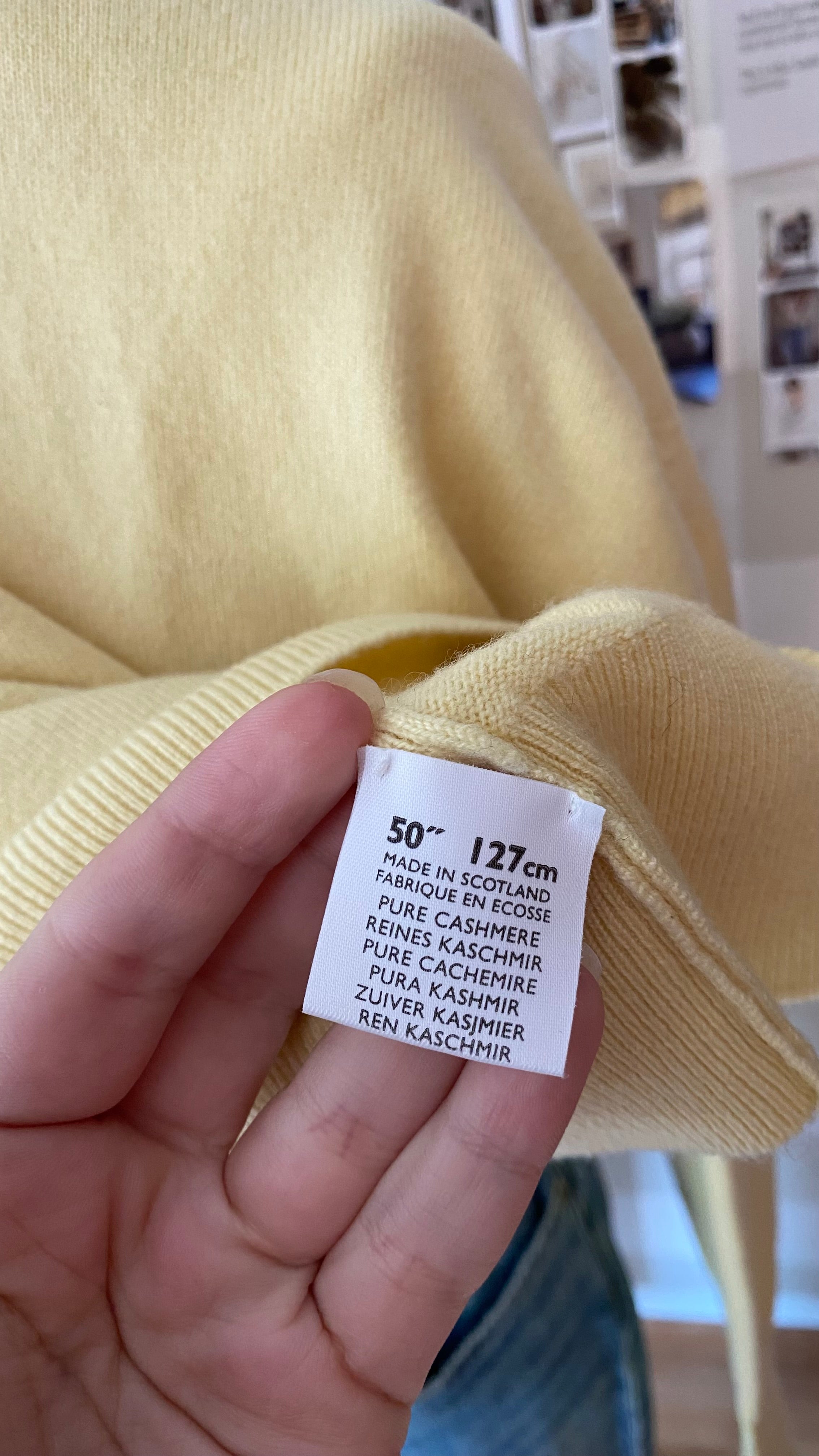 100% cashmere made in Scotland butter yellow sweater good for up to xl (measurements in photos)