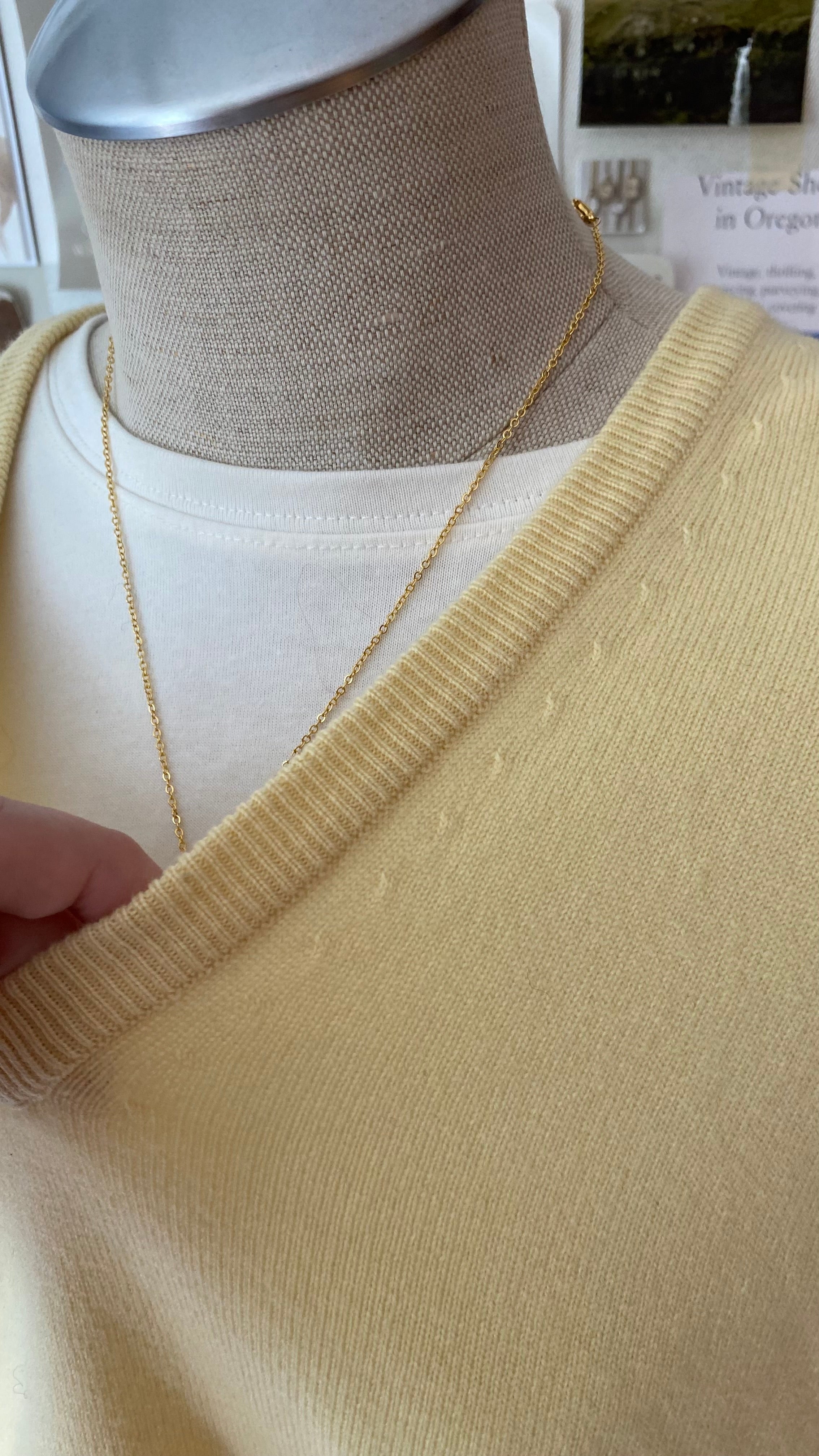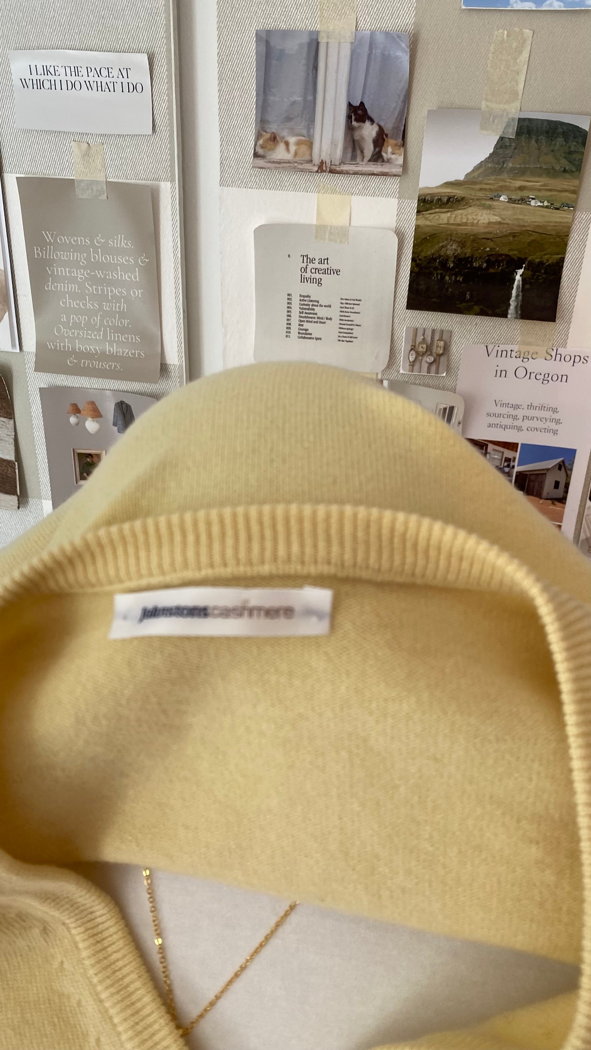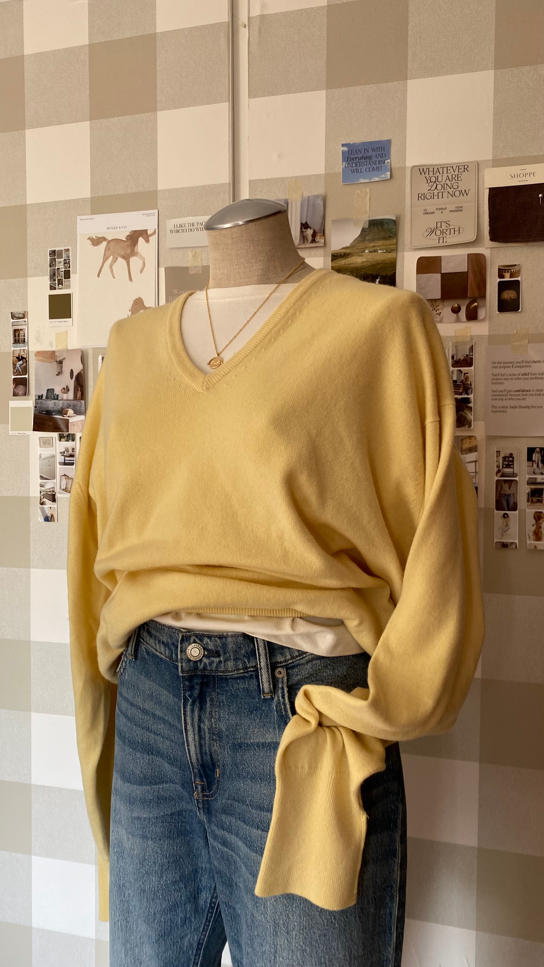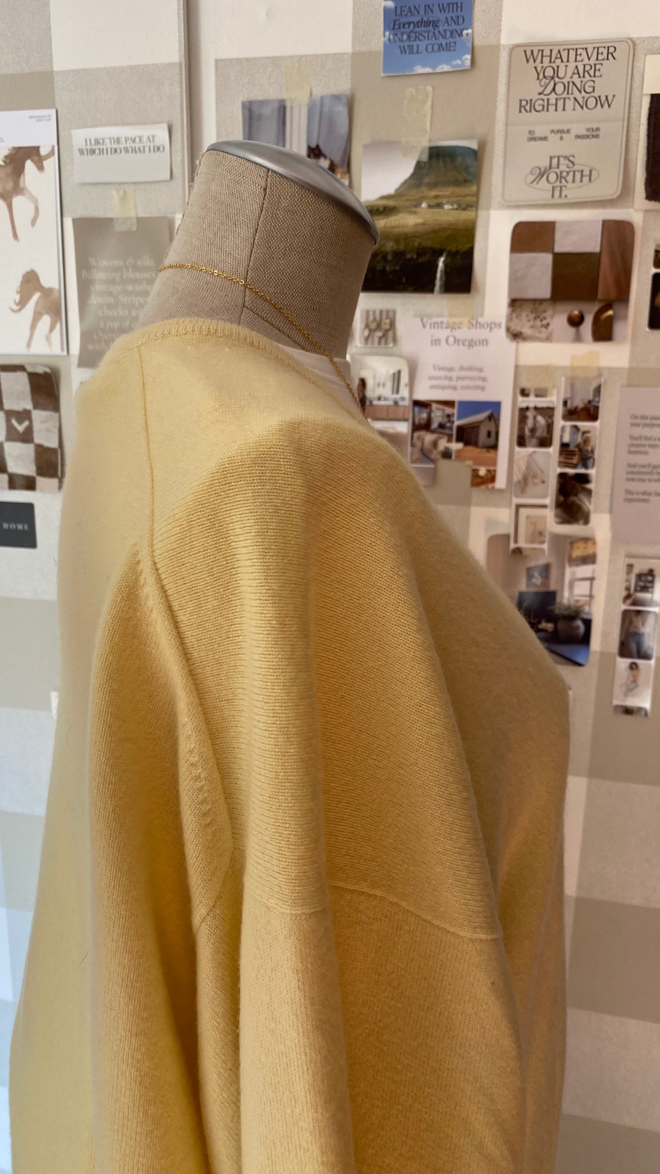 100% cashmere made in Scotland butter yellow sweater good for up to xl (measurements in photos)