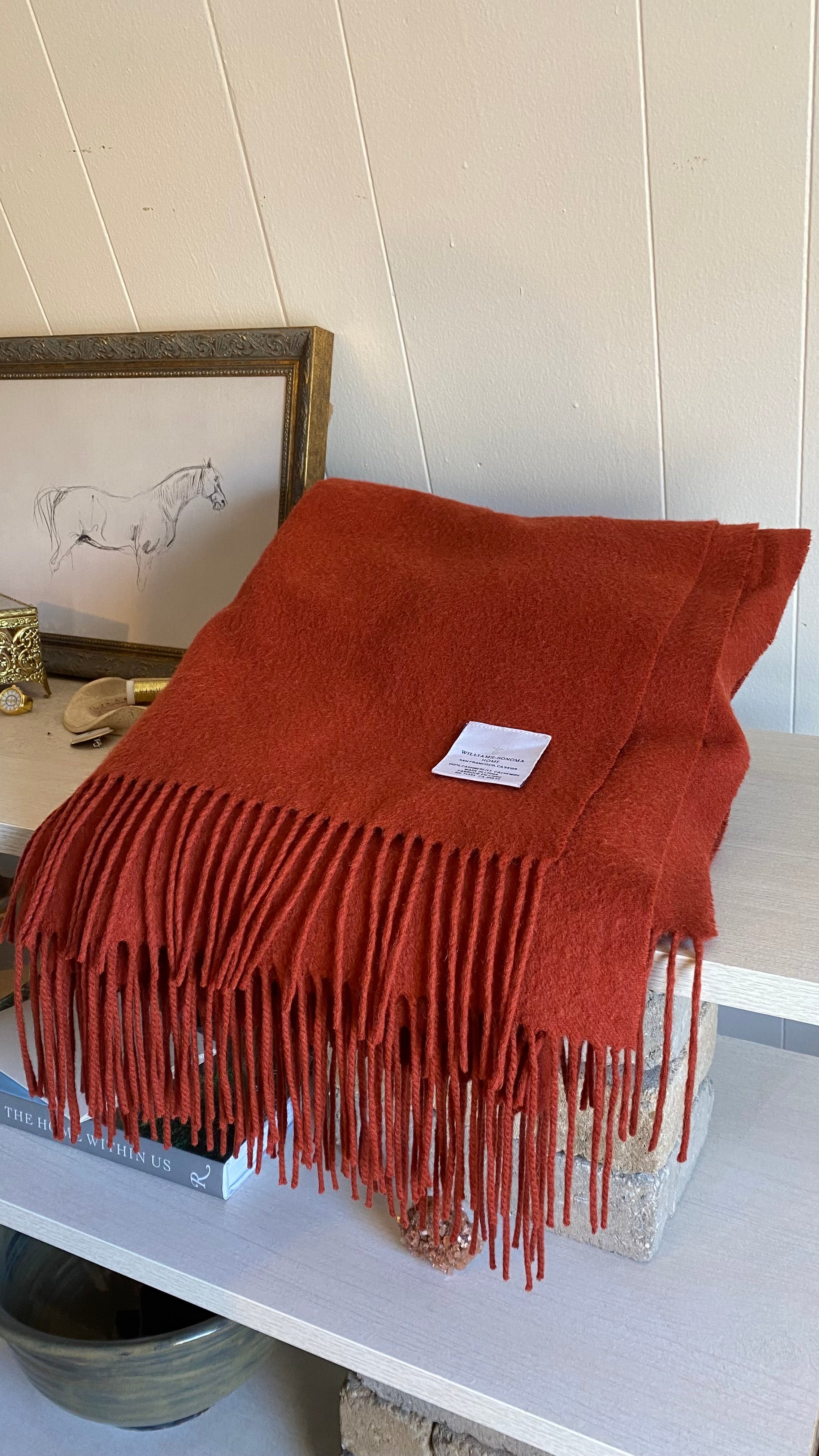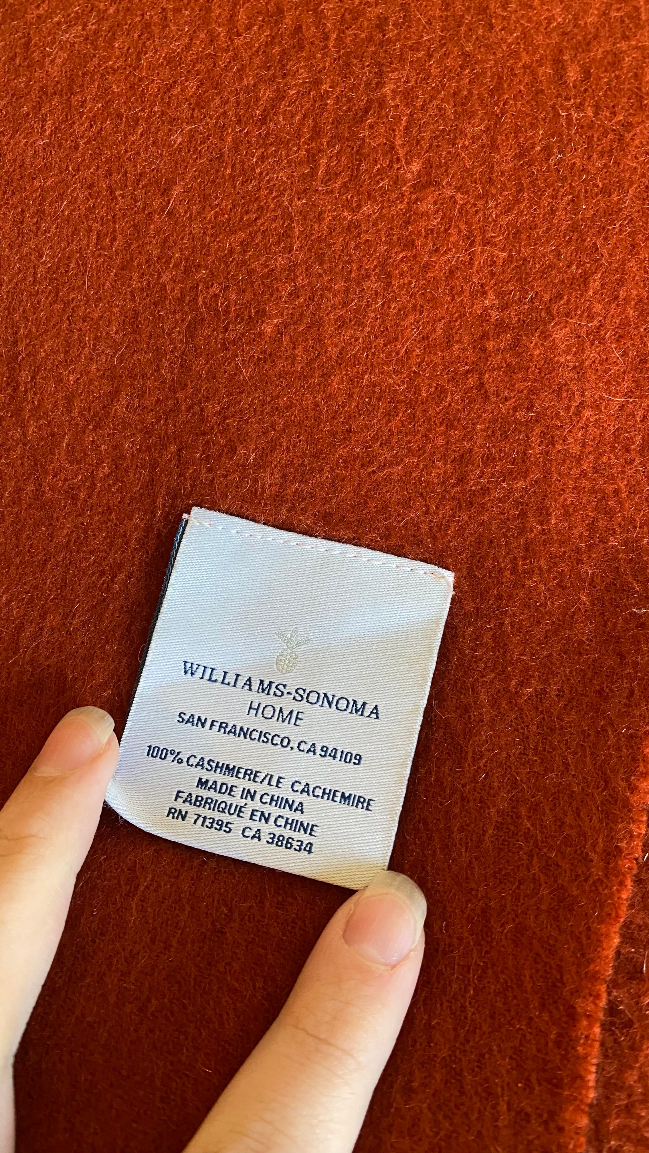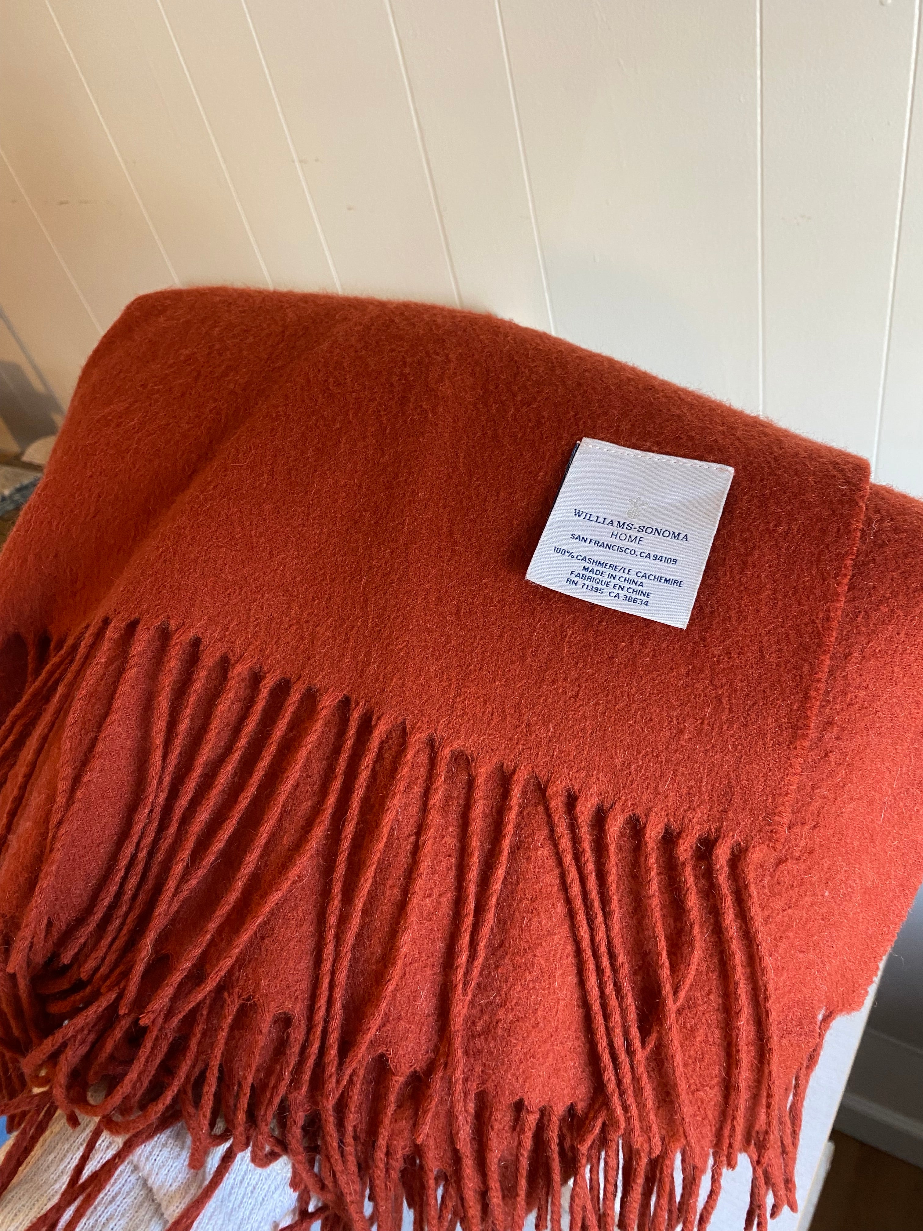 100% cashmere Williams Sonoma rust red fringe blanket current retail $550