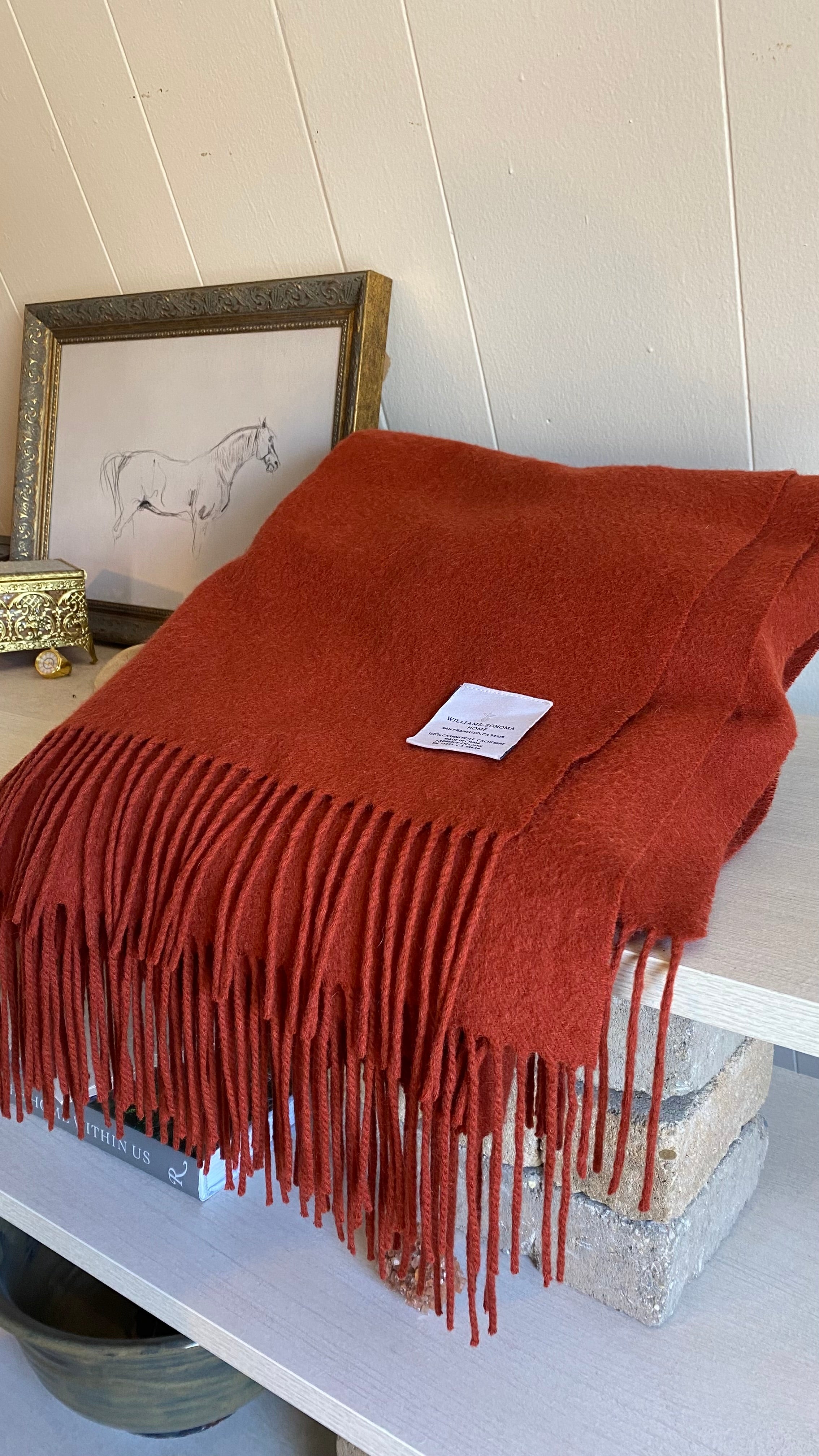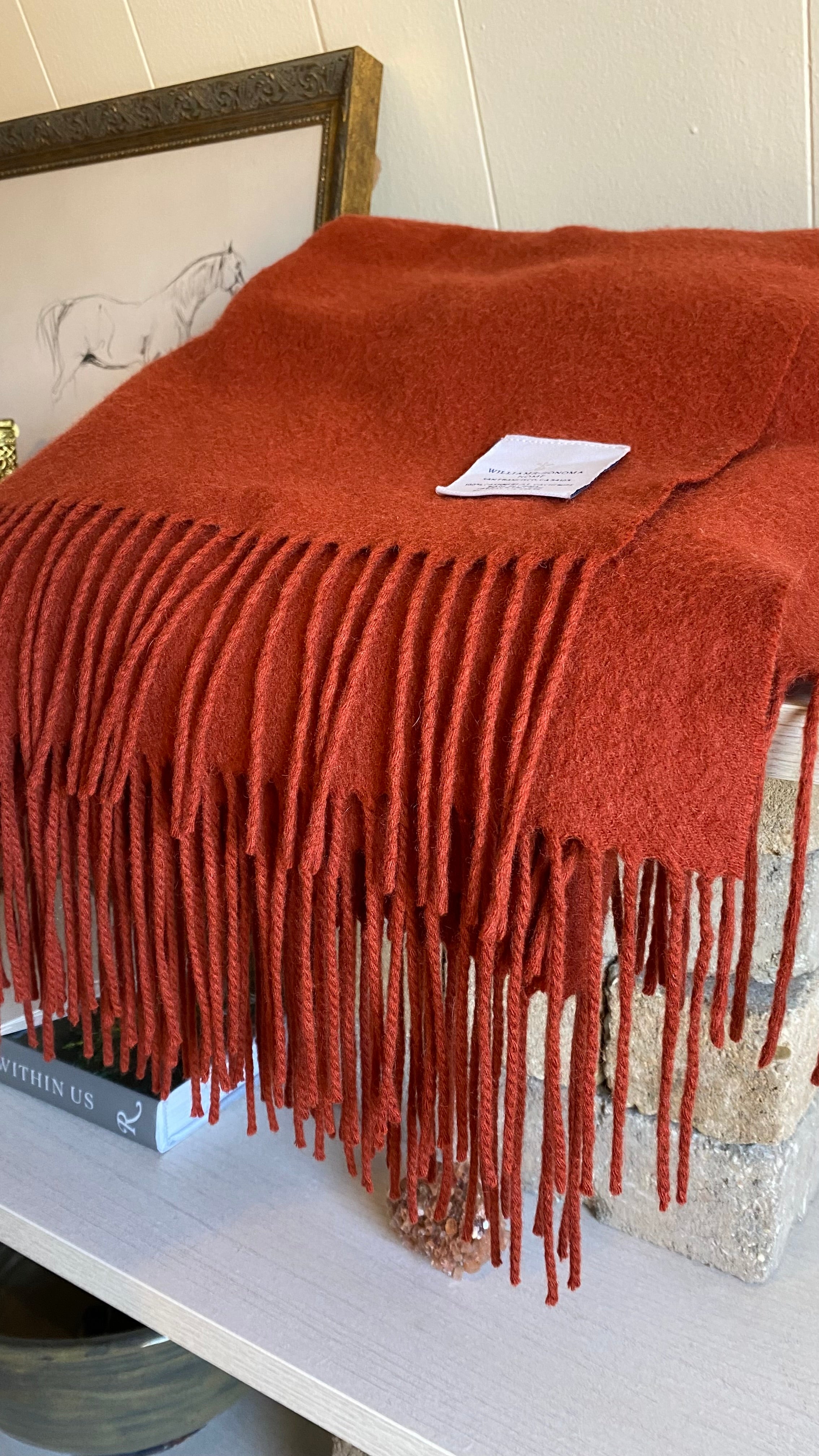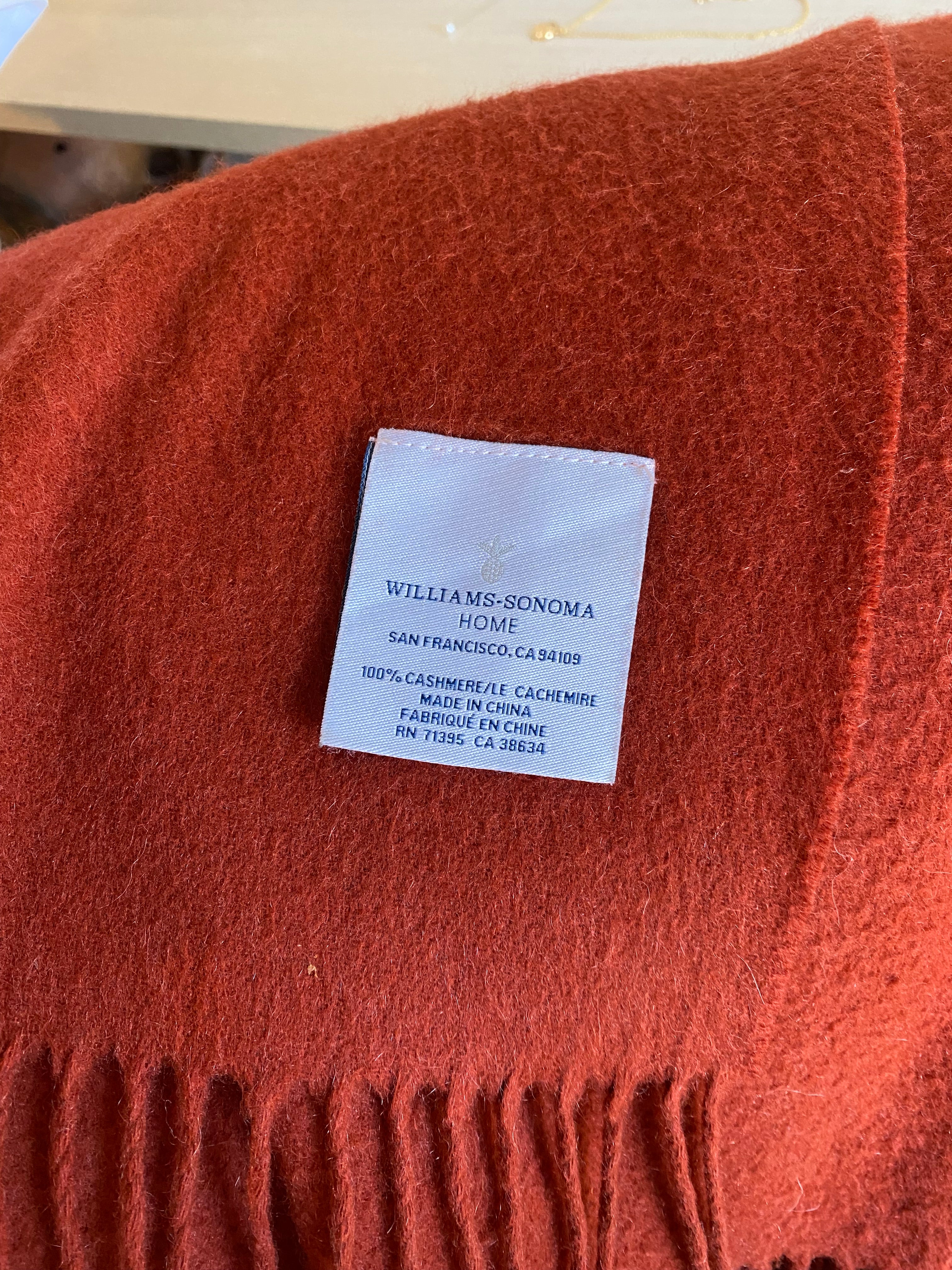 100% cashmere Williams Sonoma rust red fringe blanket current retail $550