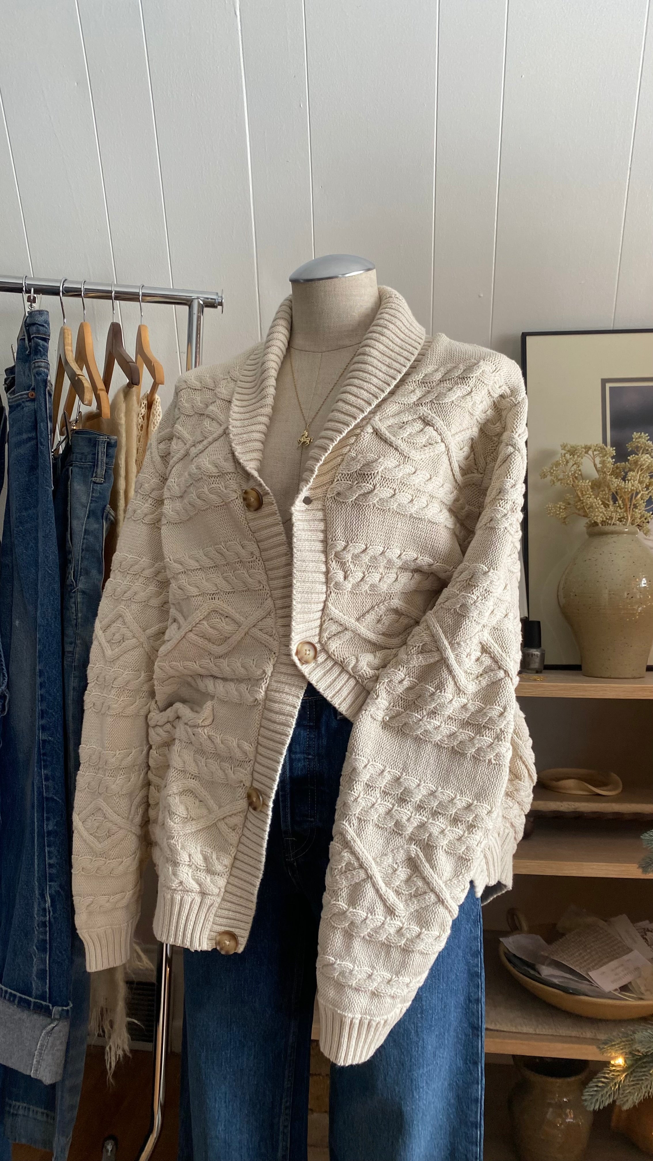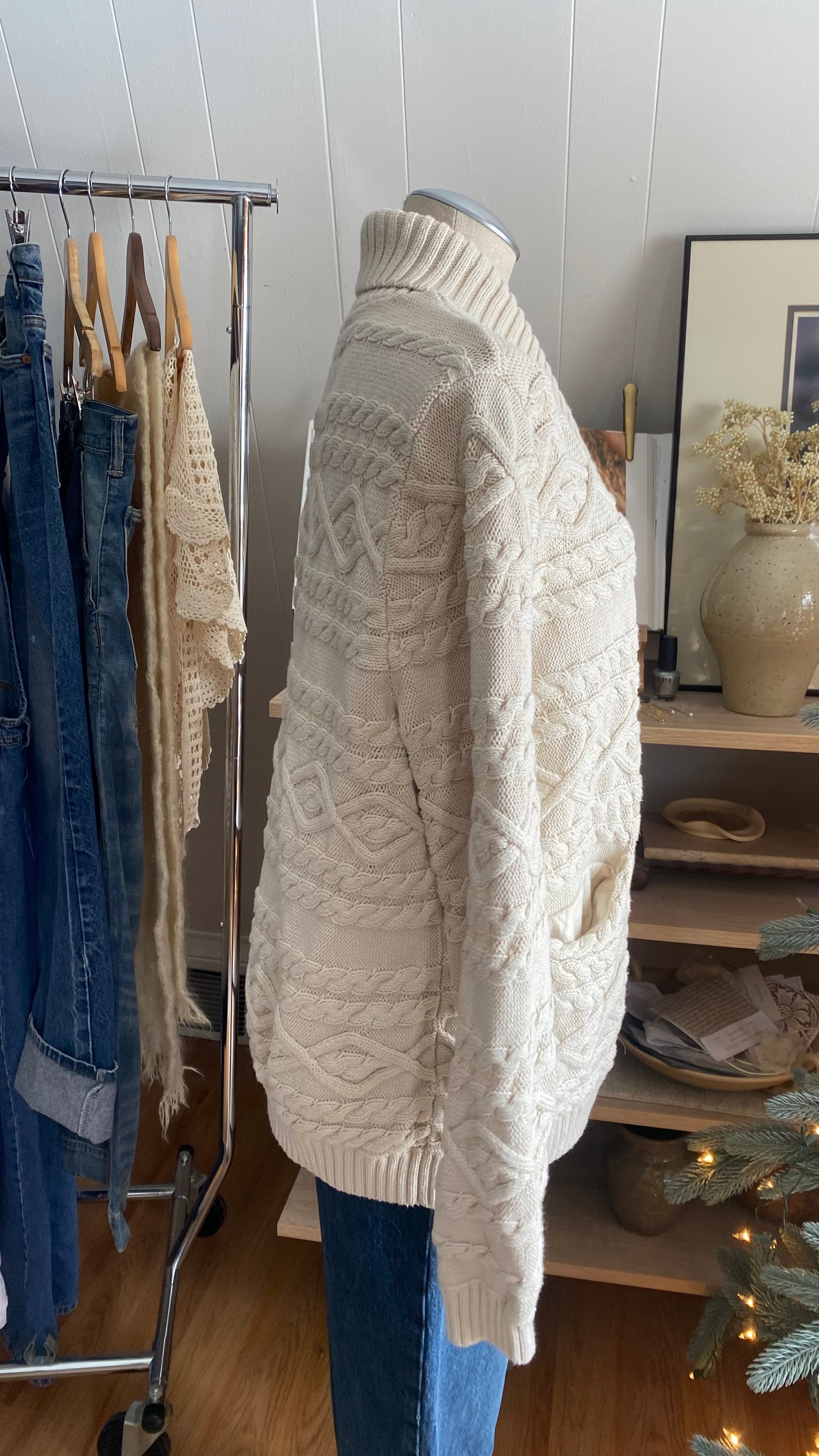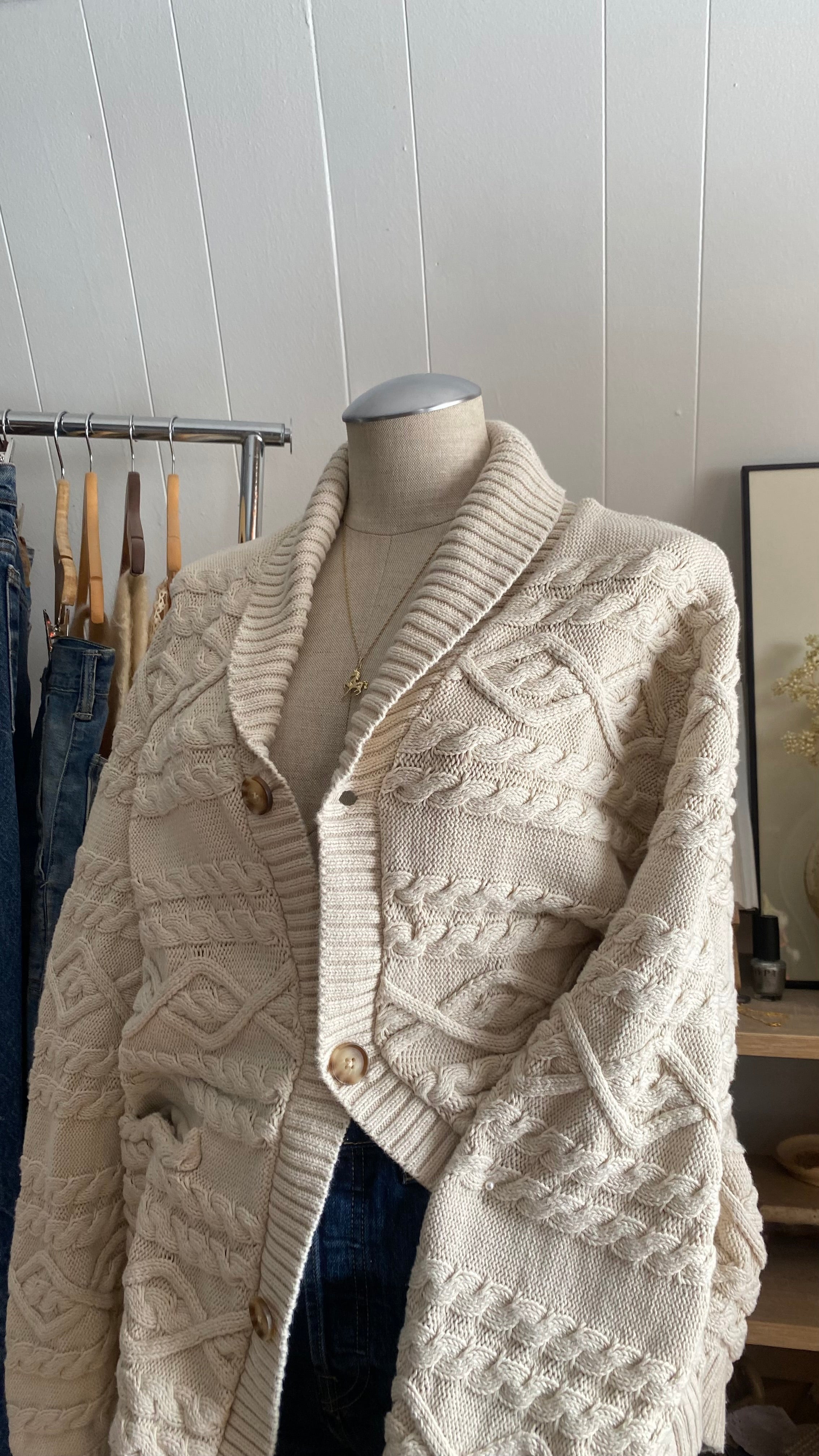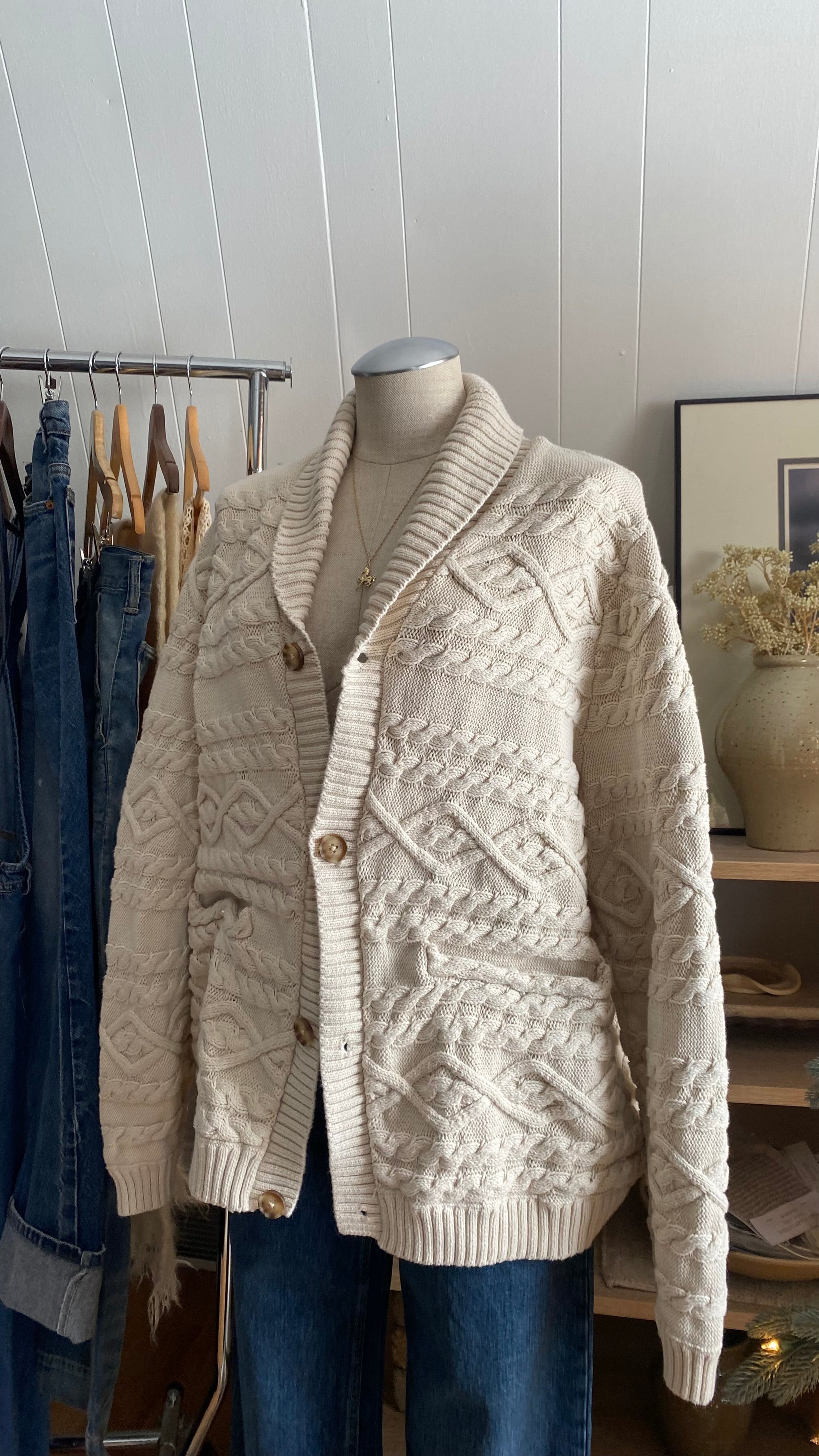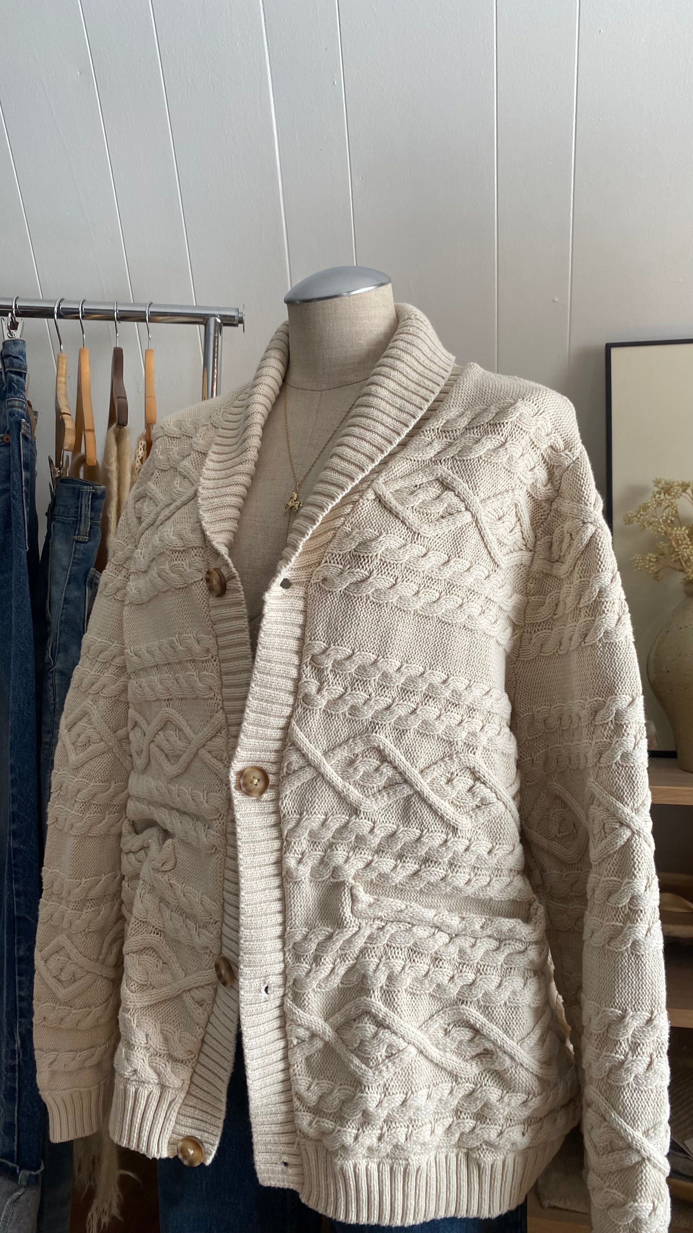 100% cotton cable knit sweater cardigan xl