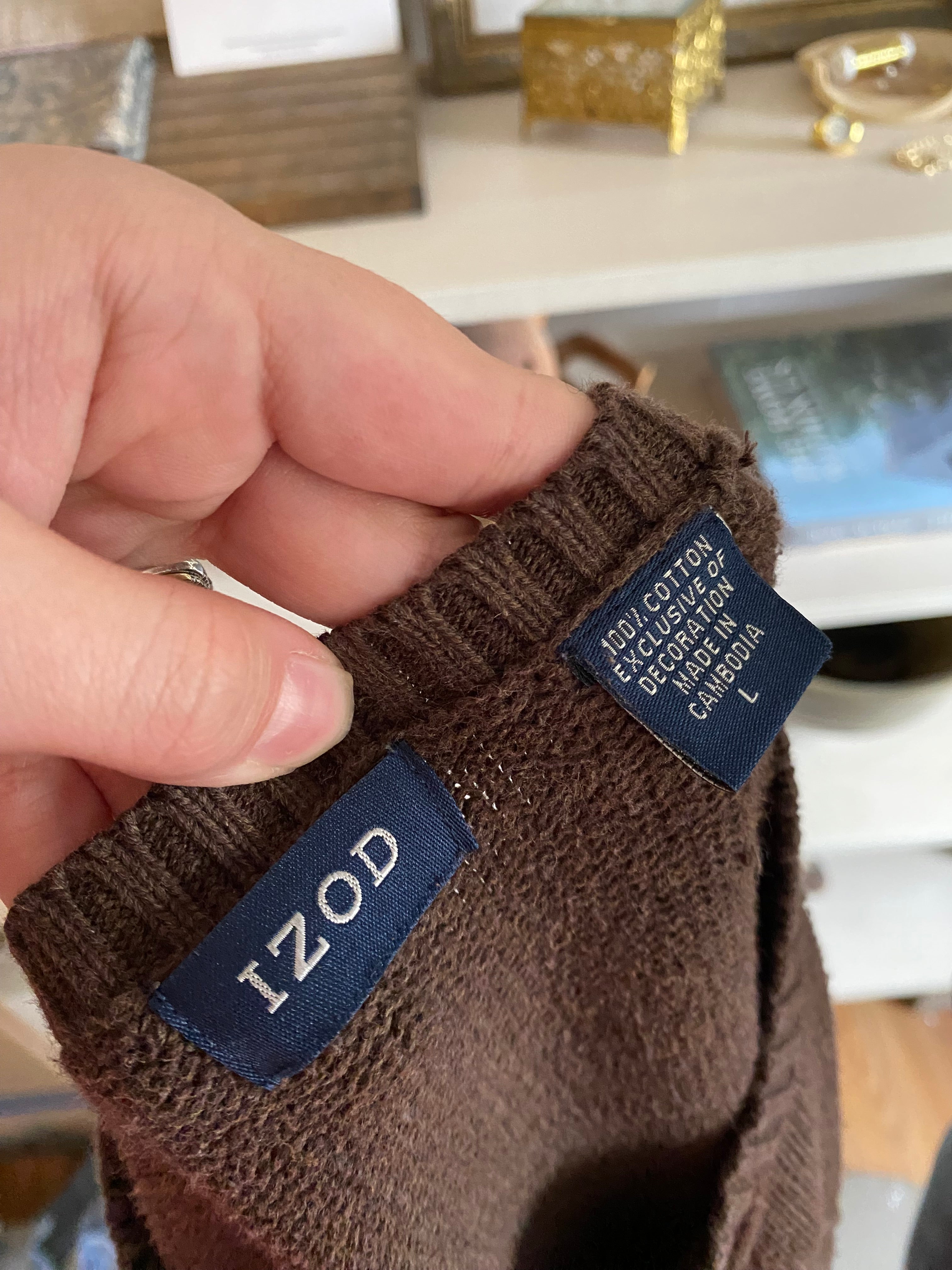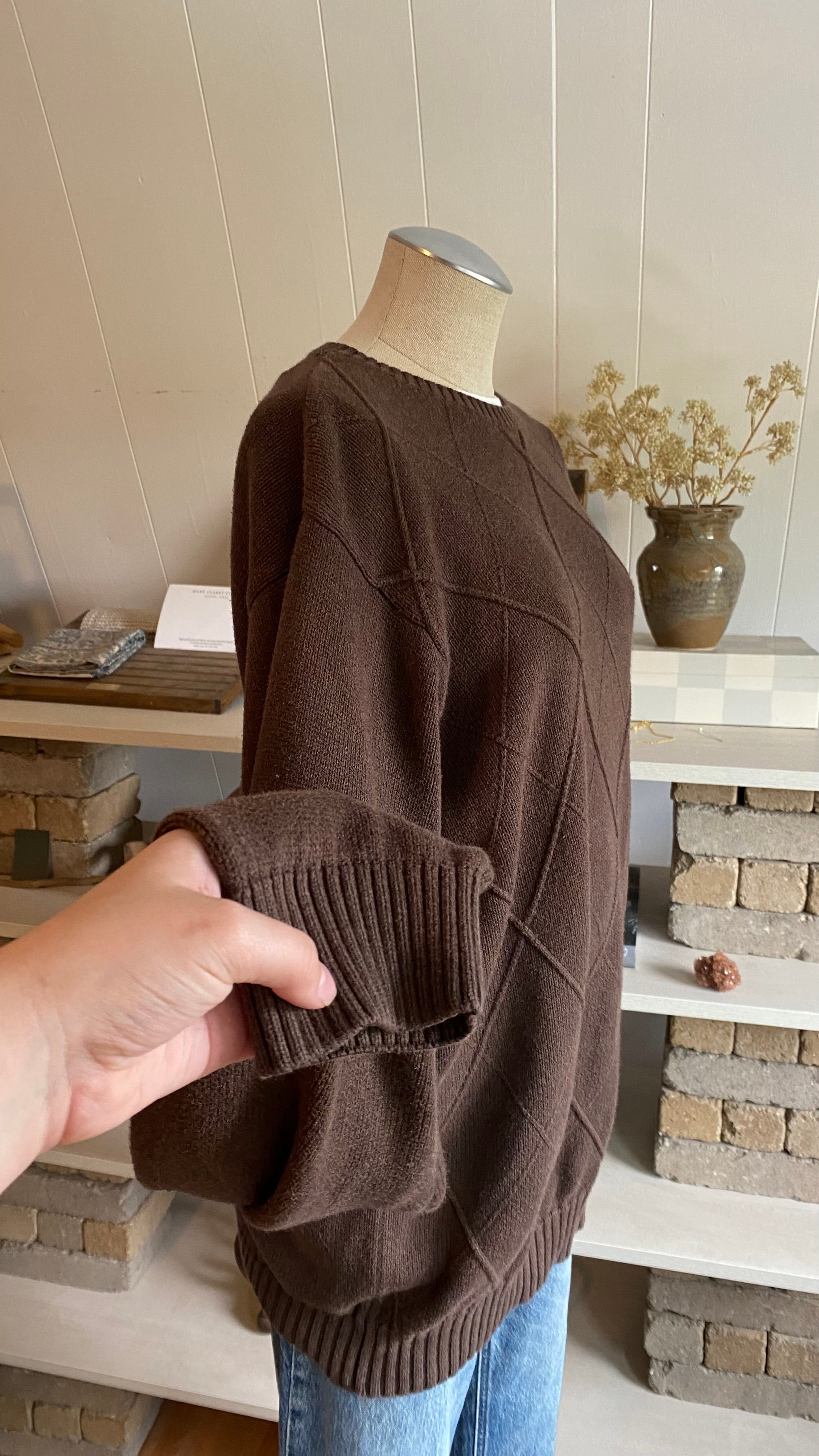 100% cotton size large brown sweater
