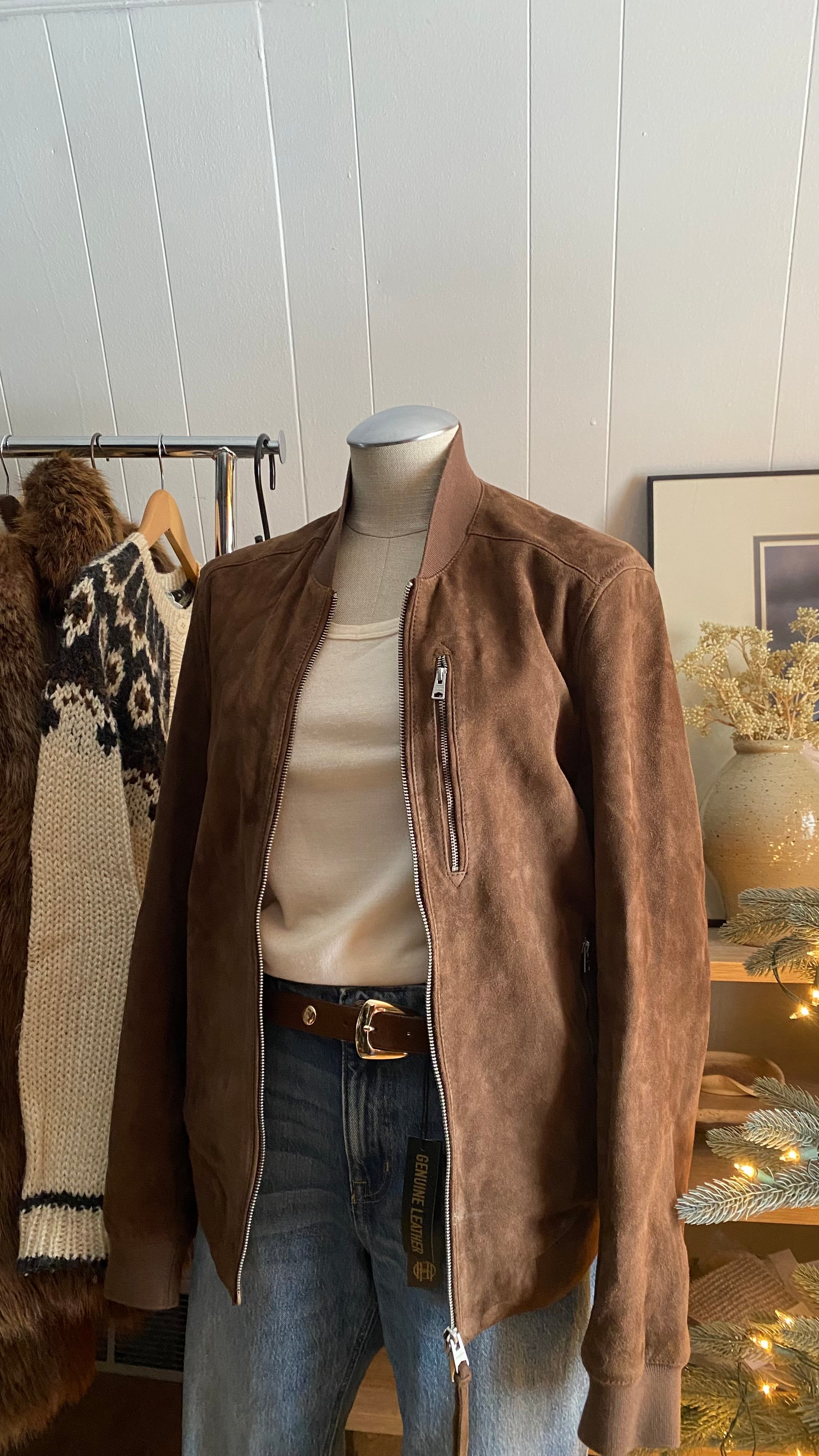 All saints genuine suede zip up jacket size small retail $649