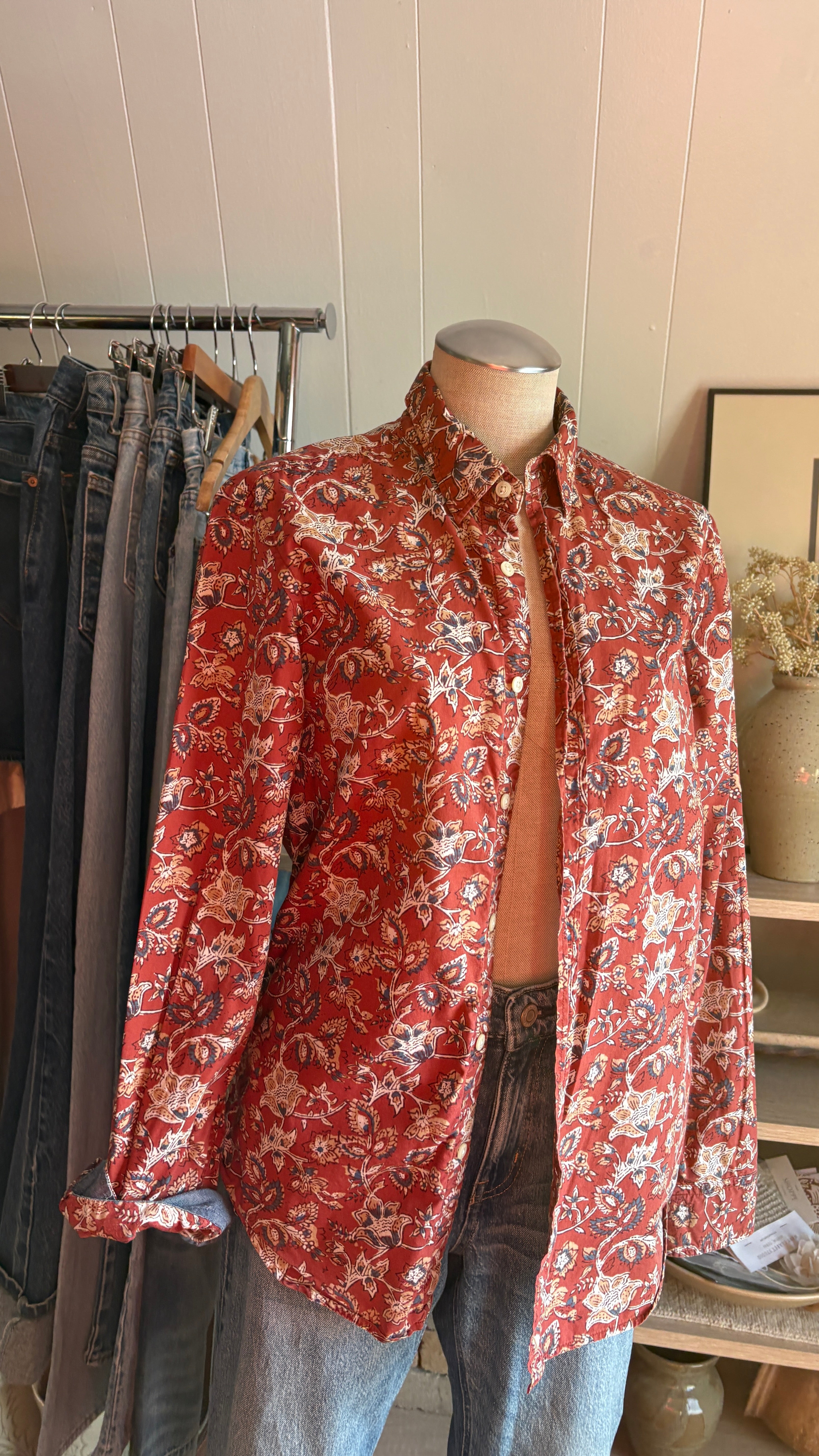 Banana republic block print button up size small