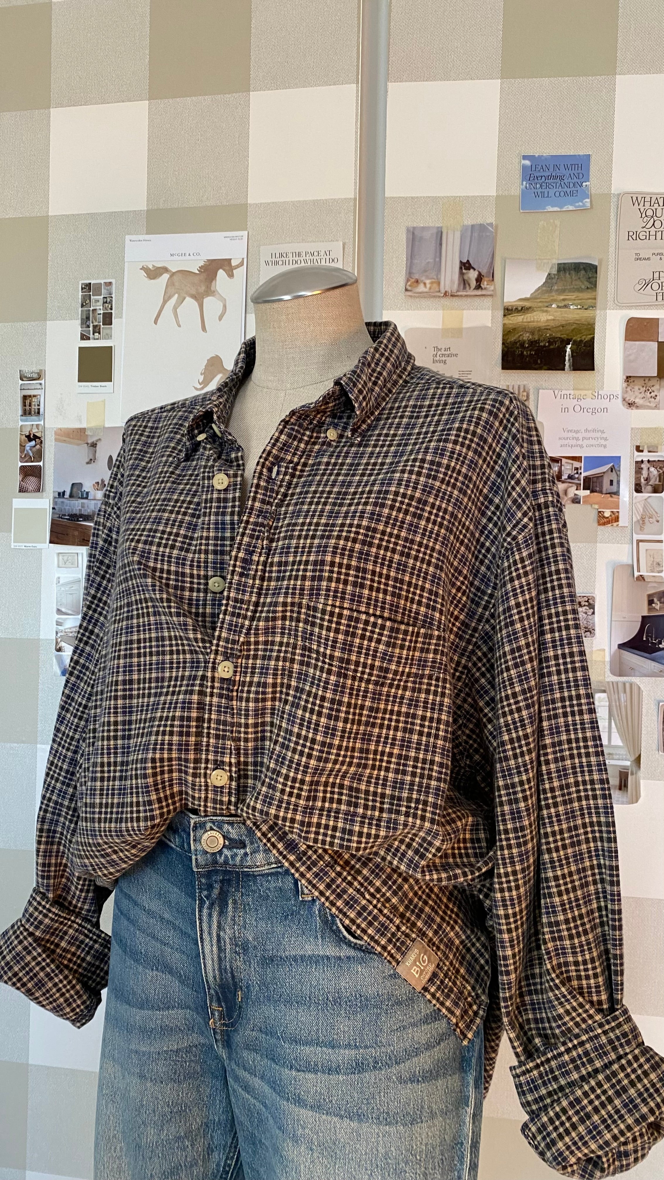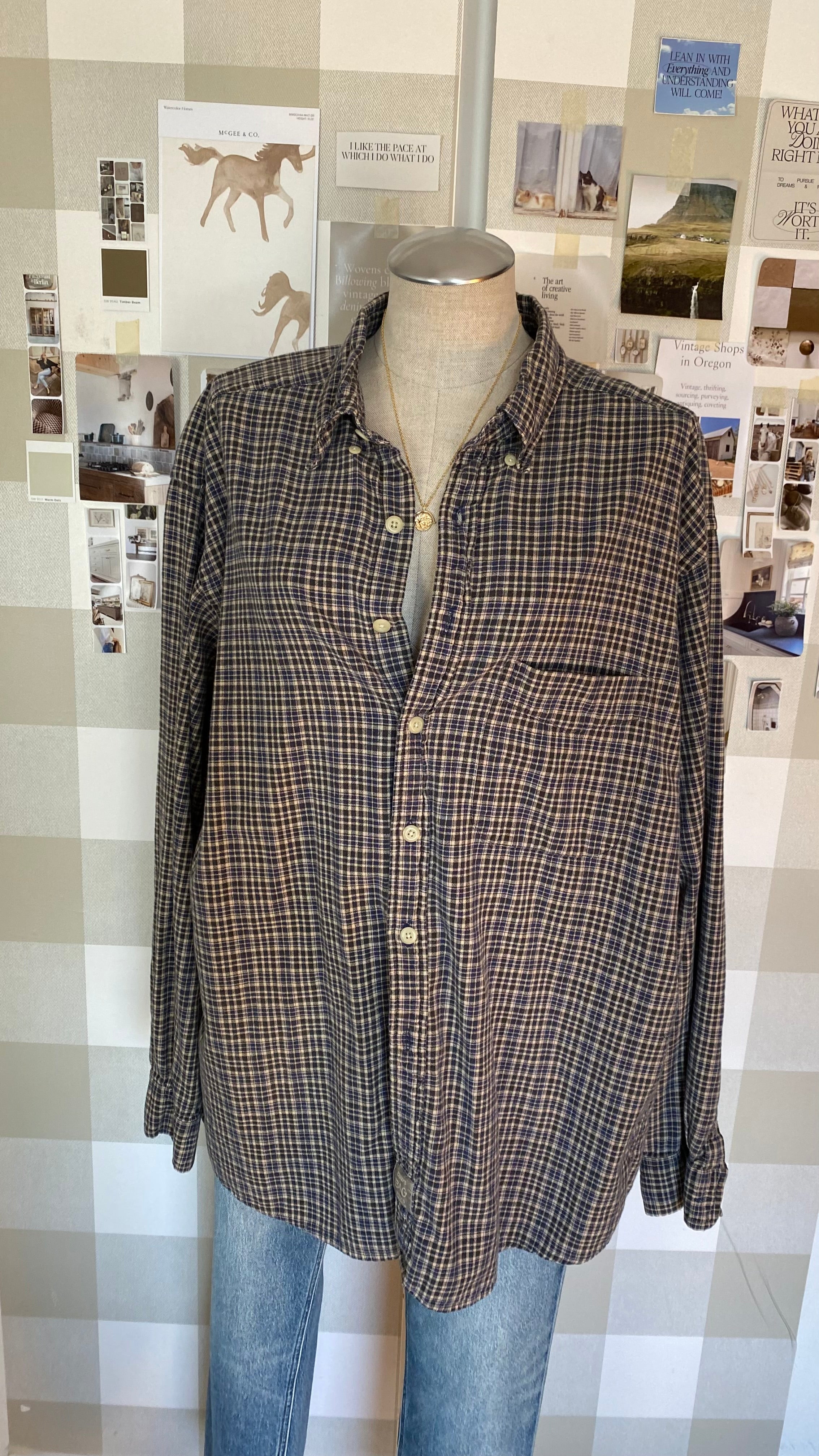 Early 2000s the big shirt plaid xl 100% cotton country blue
