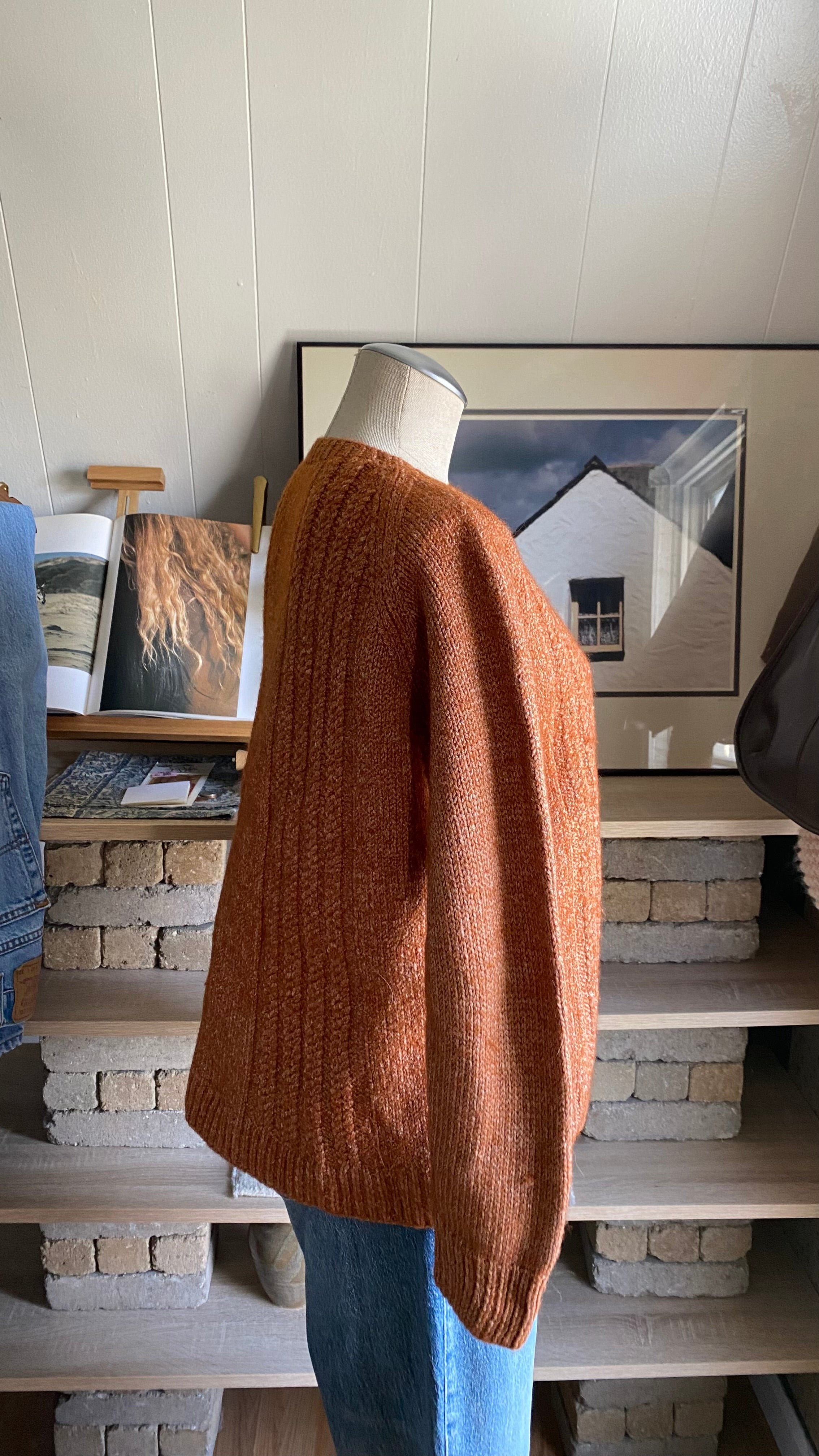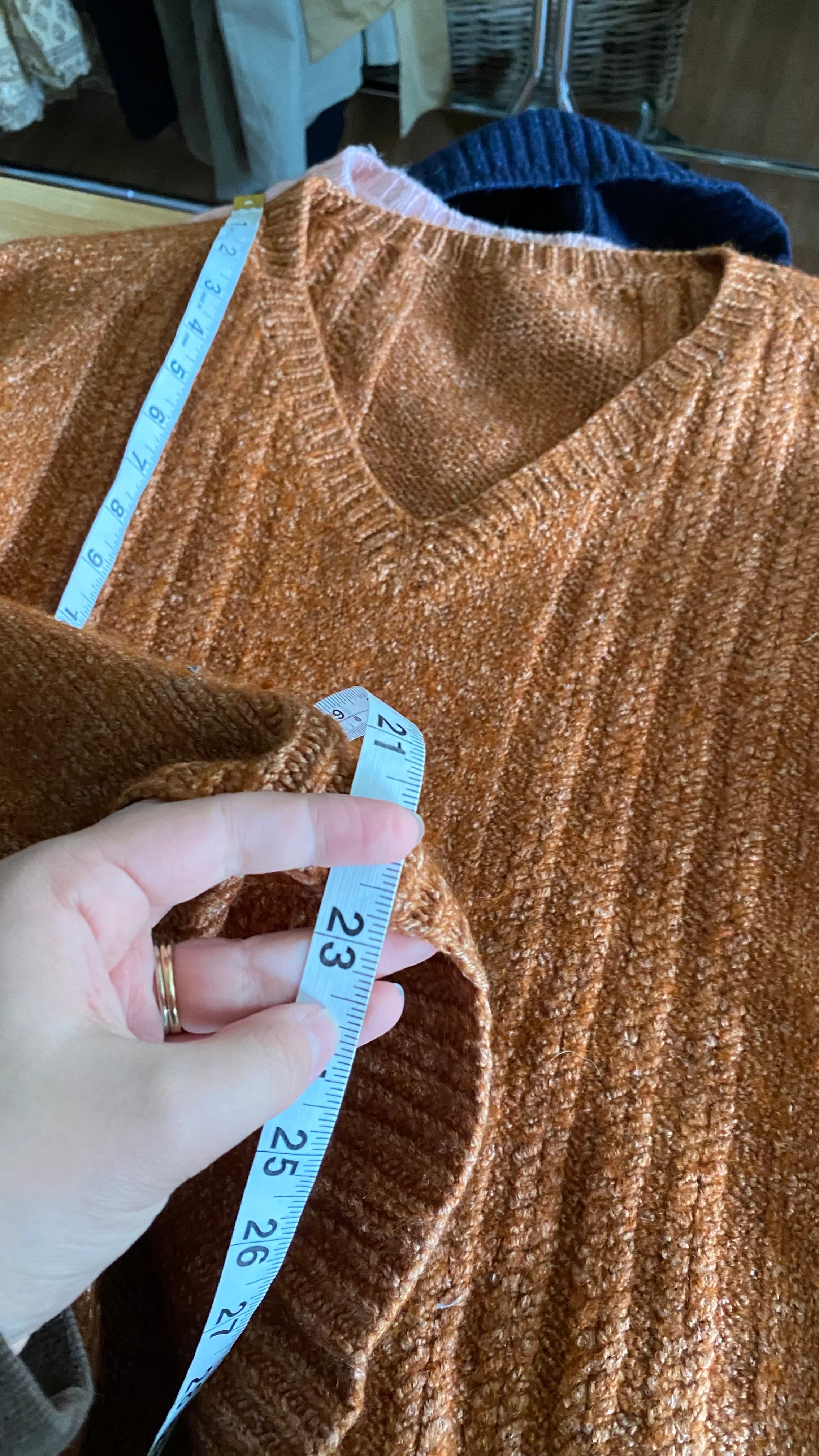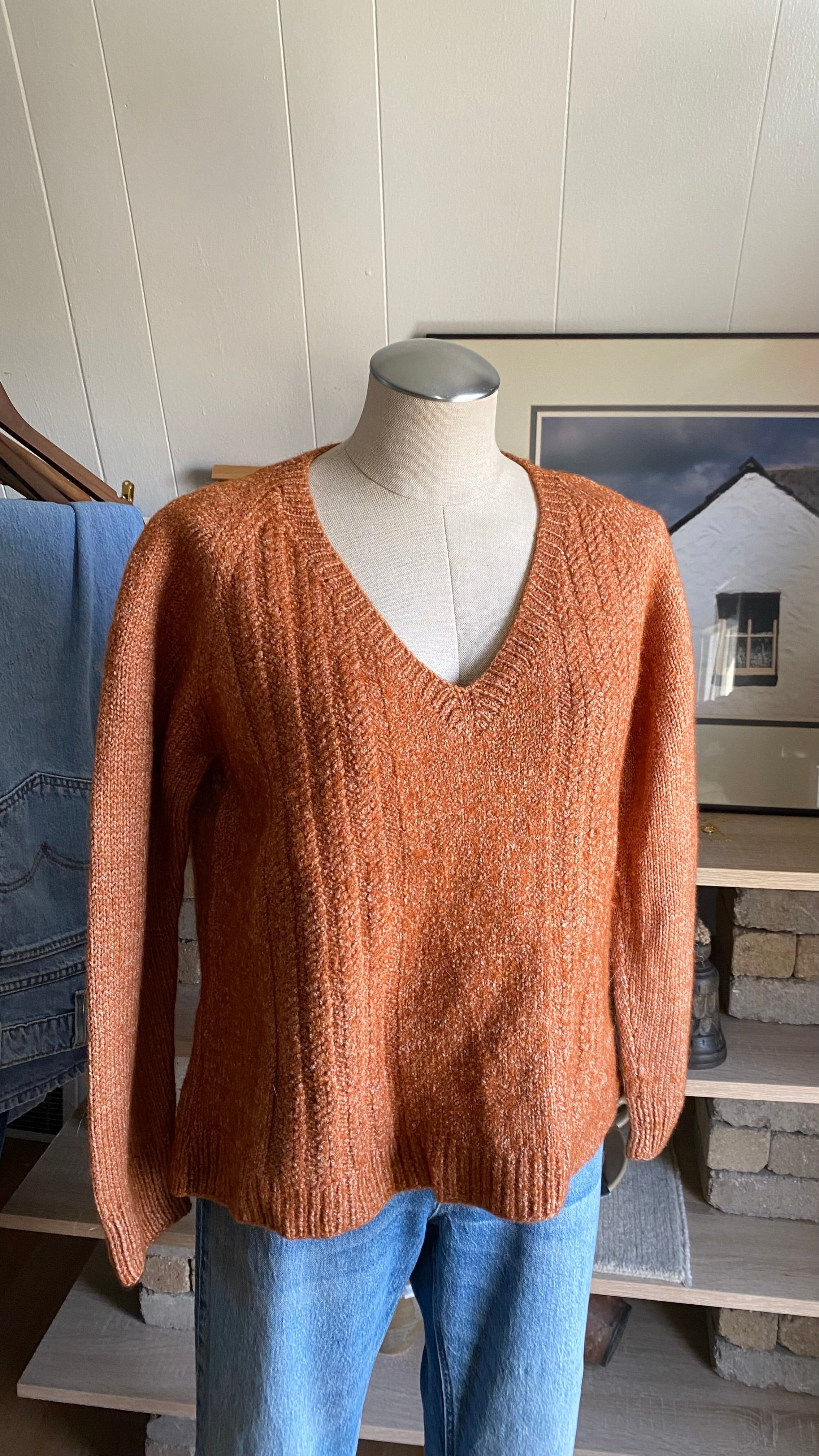 Hand knit orange wool blend v neck thick sweater good for size medium