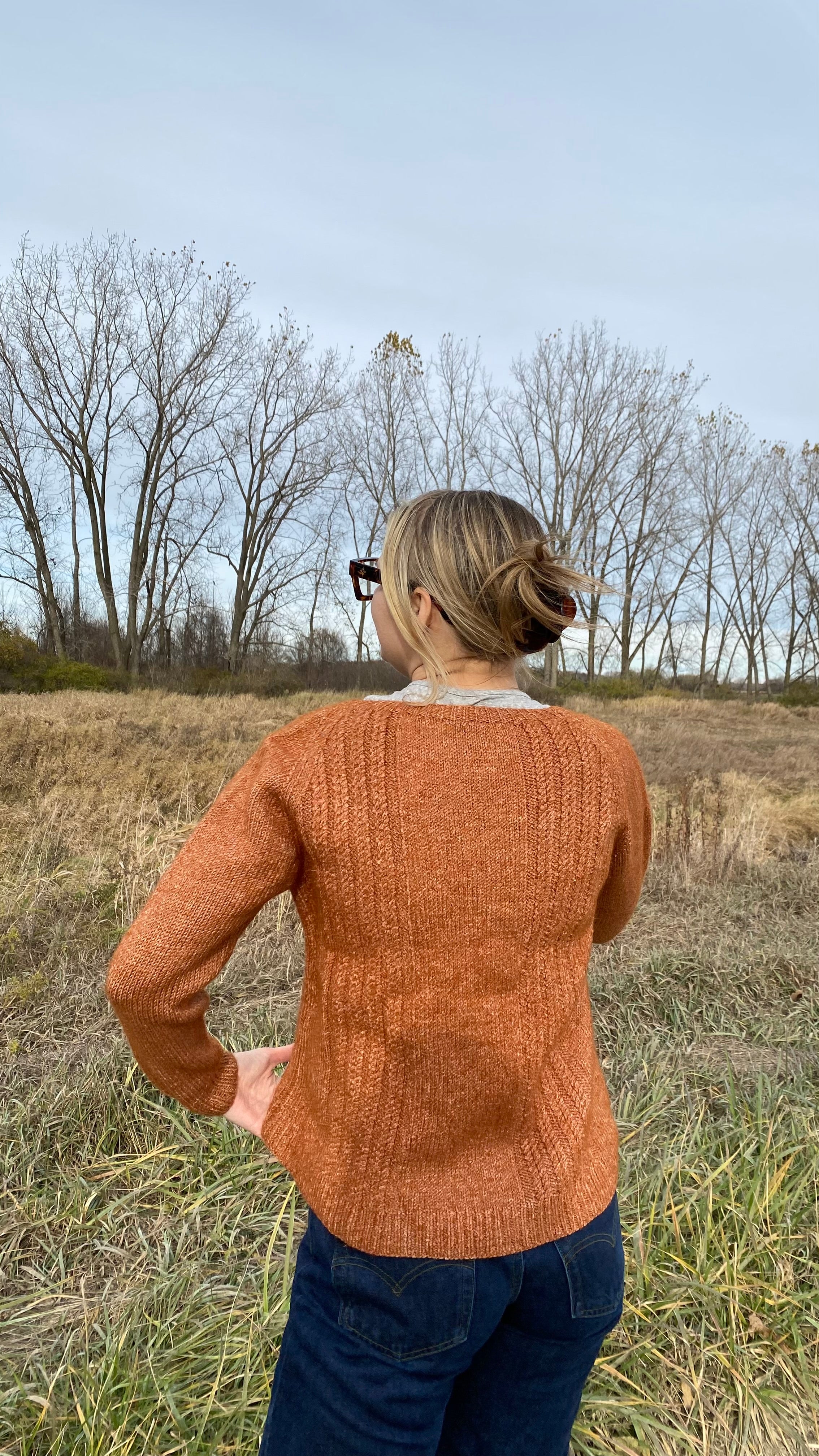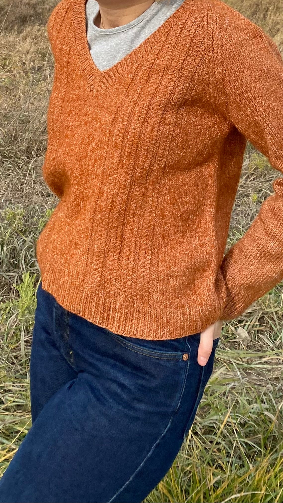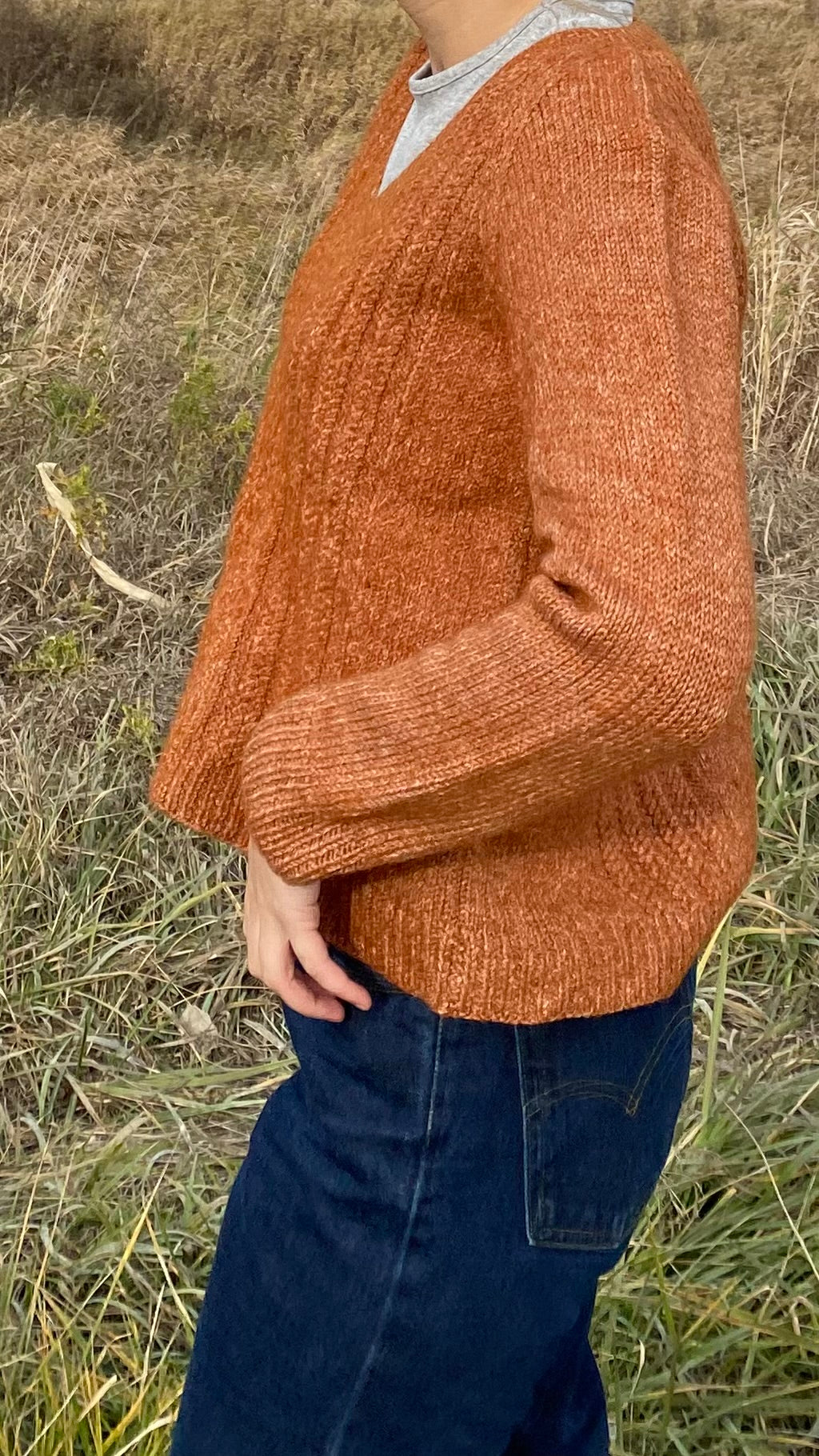 Hand knit orange wool blend v neck thick sweater good for size medium