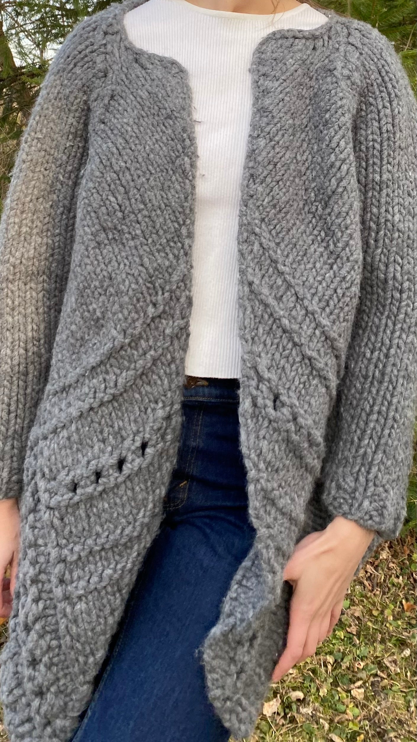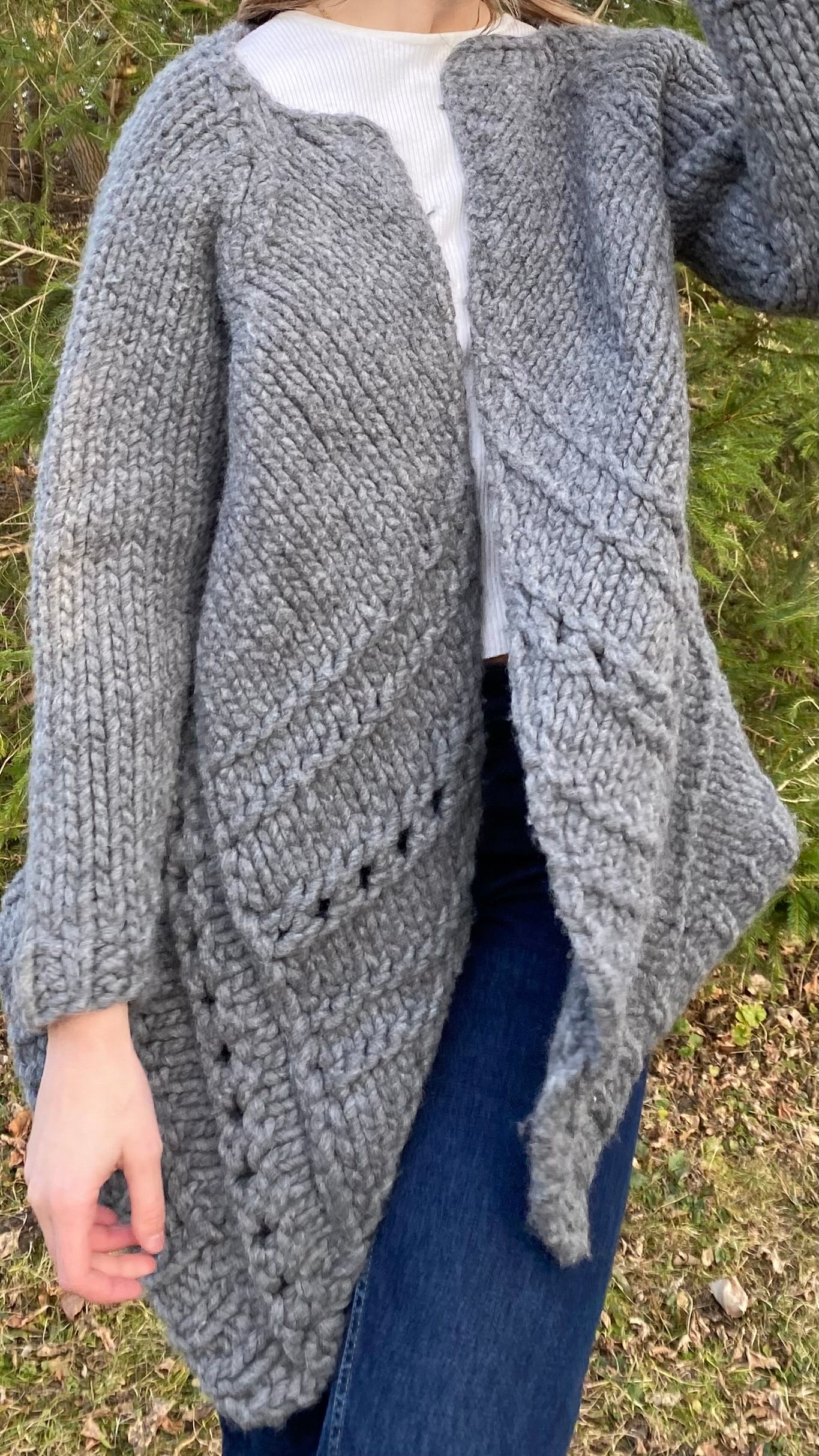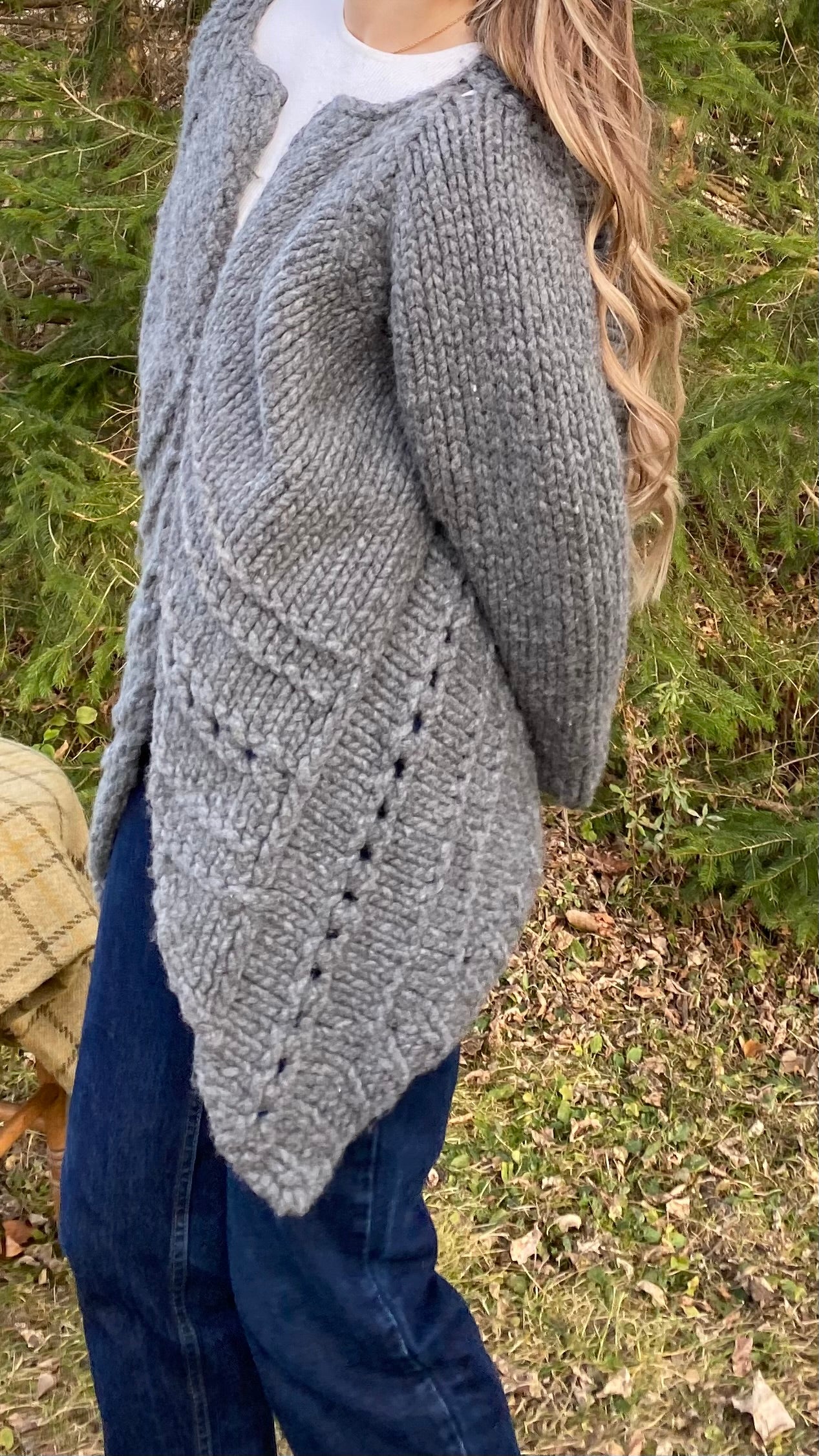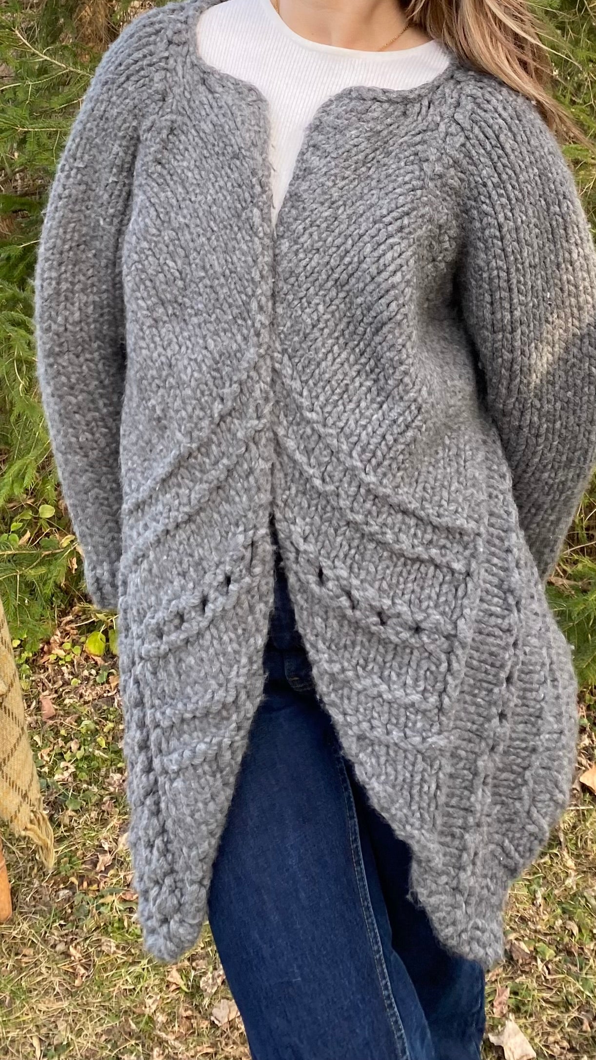Hand knit thick wool sweater cardigan good for size medium (measurements in photos)