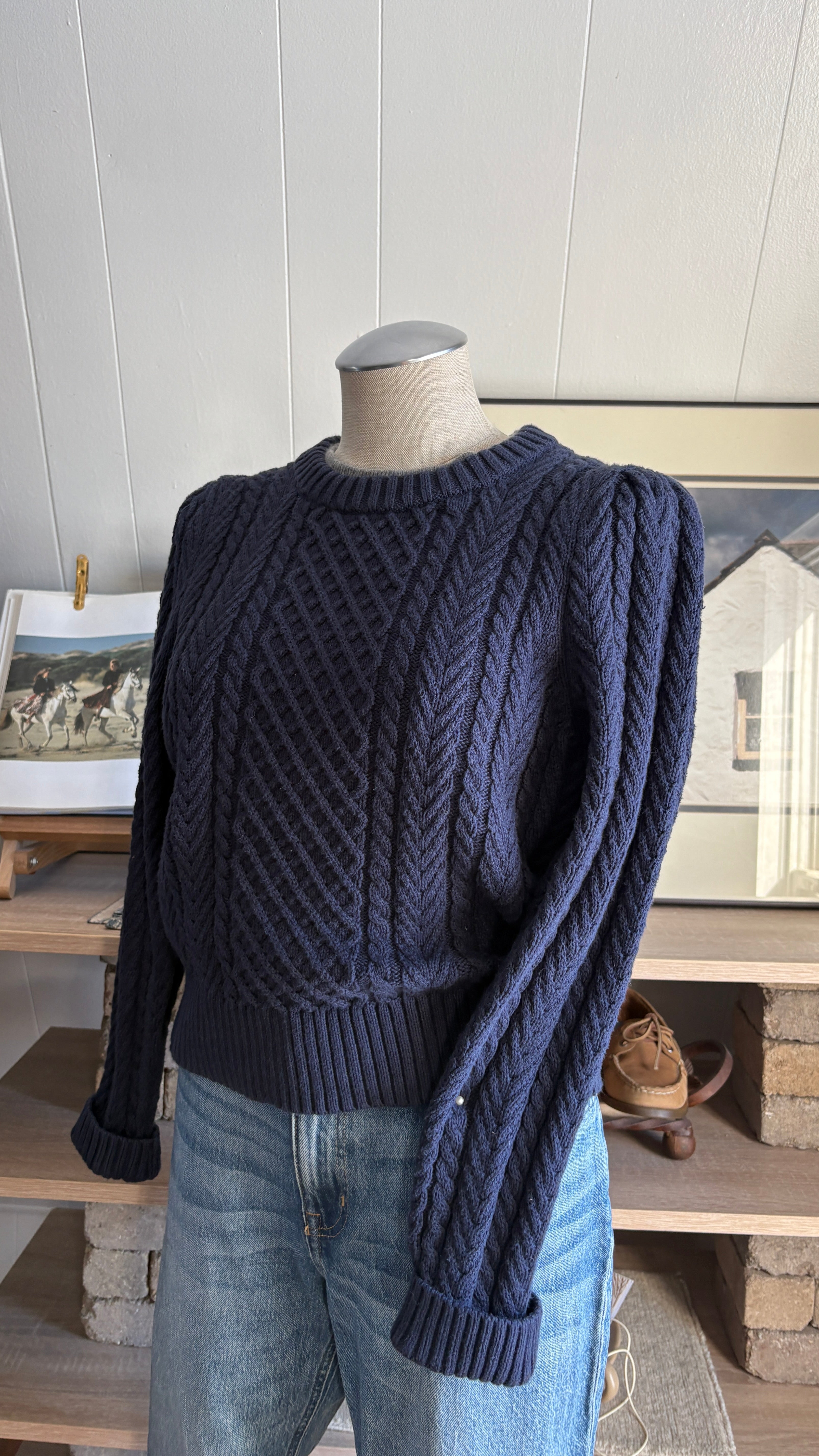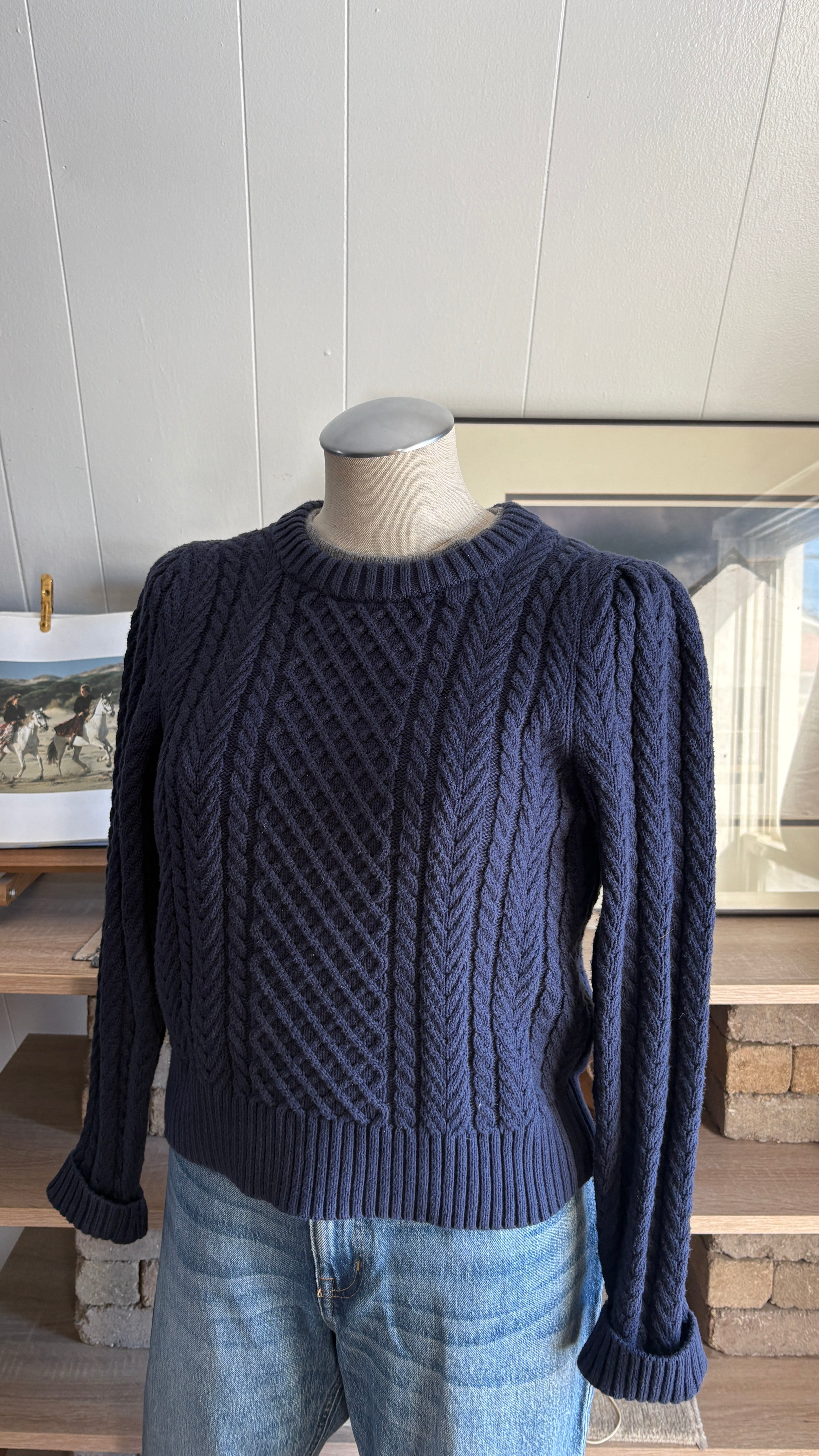 J.crew thick cable knit 100% cotton navy size medium