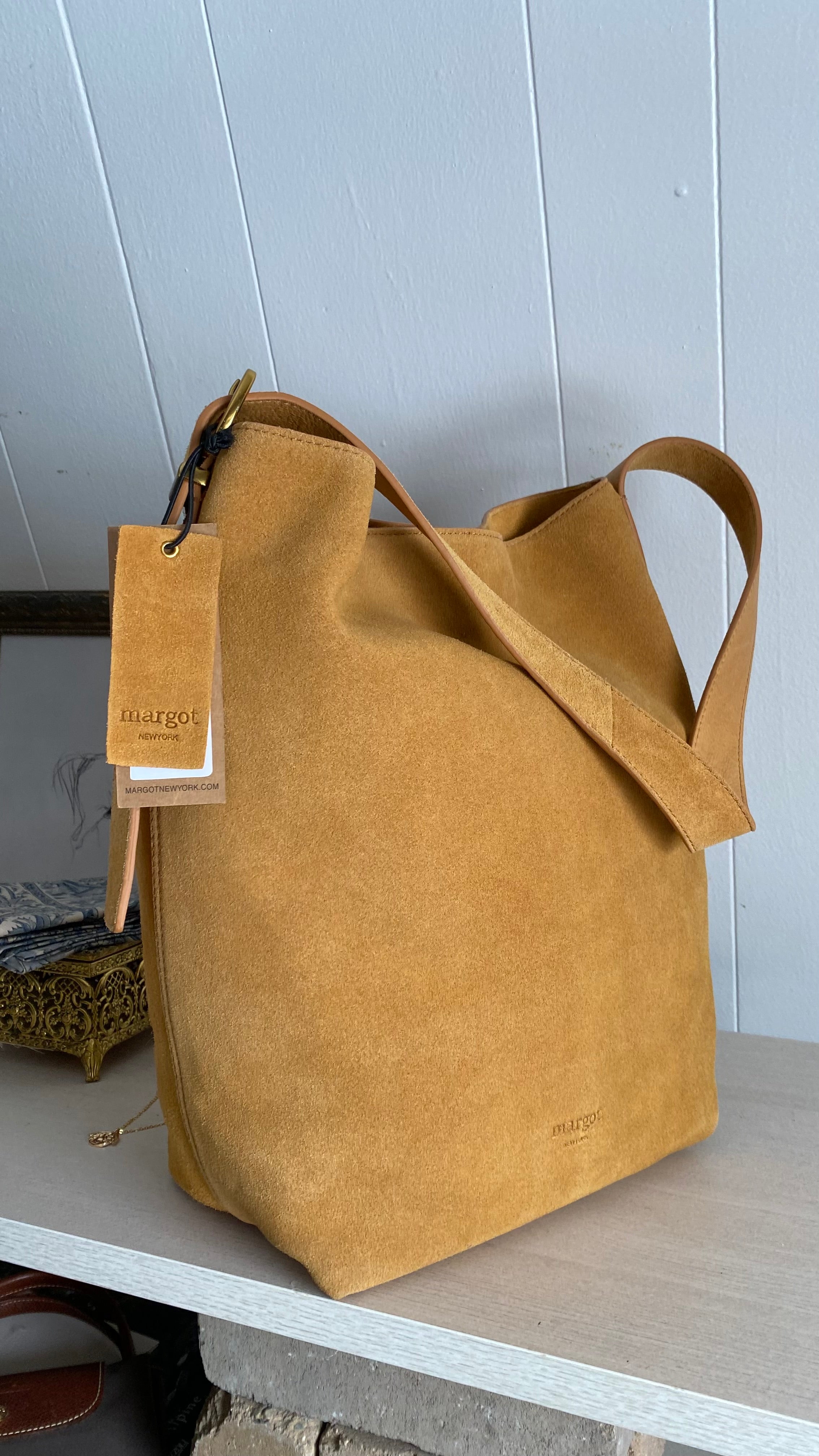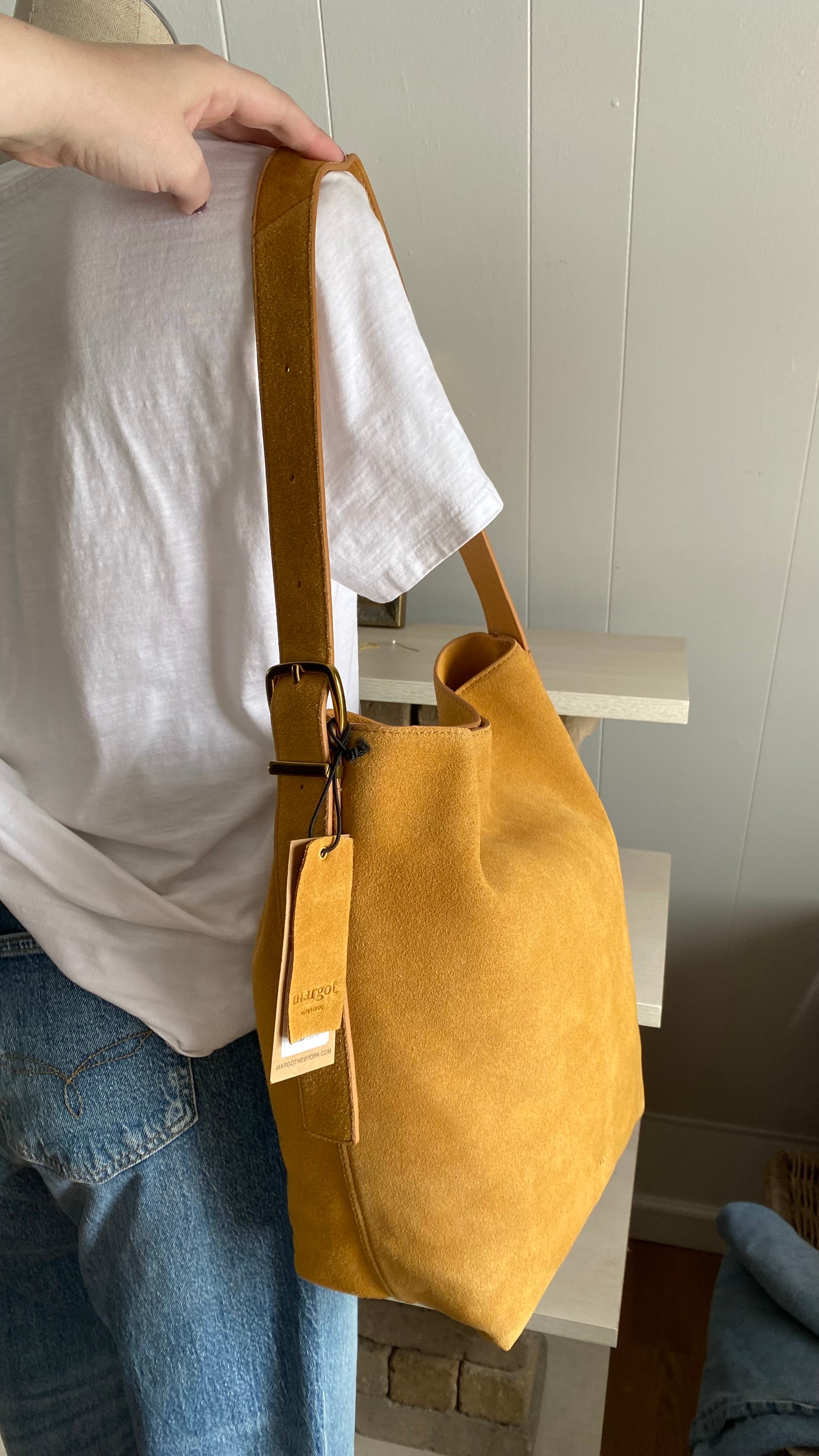 New with tags genuine suede bucket bag