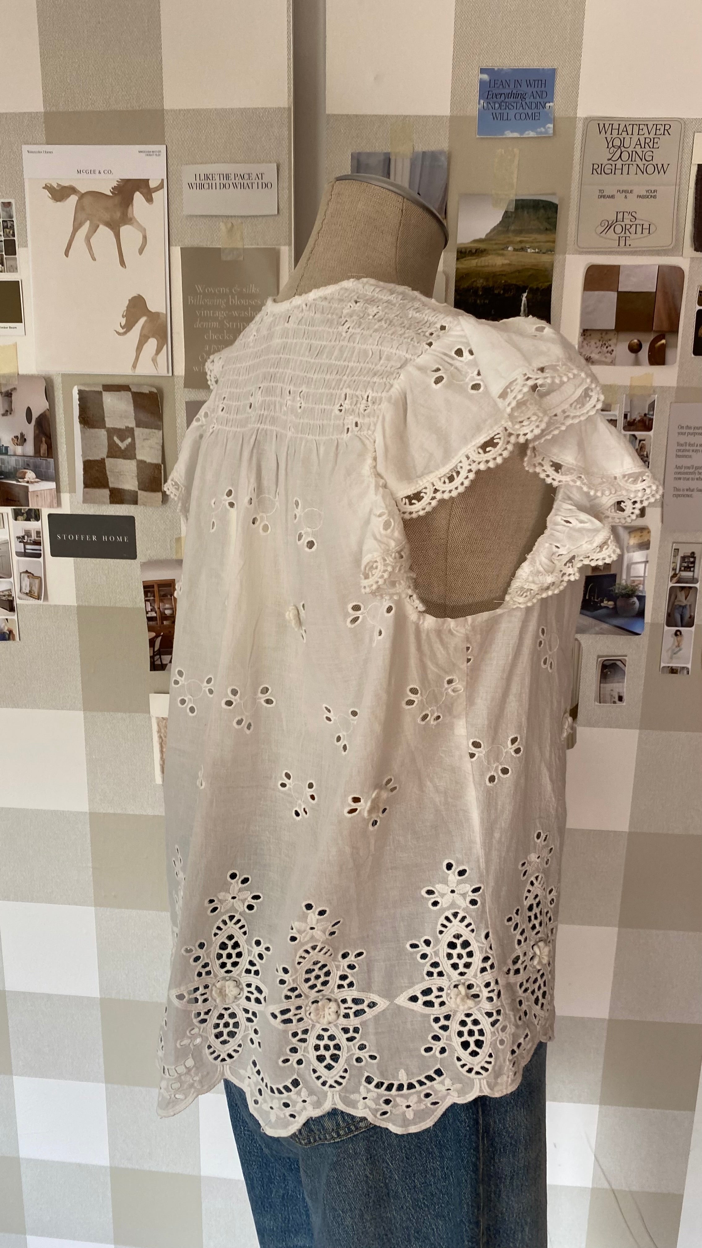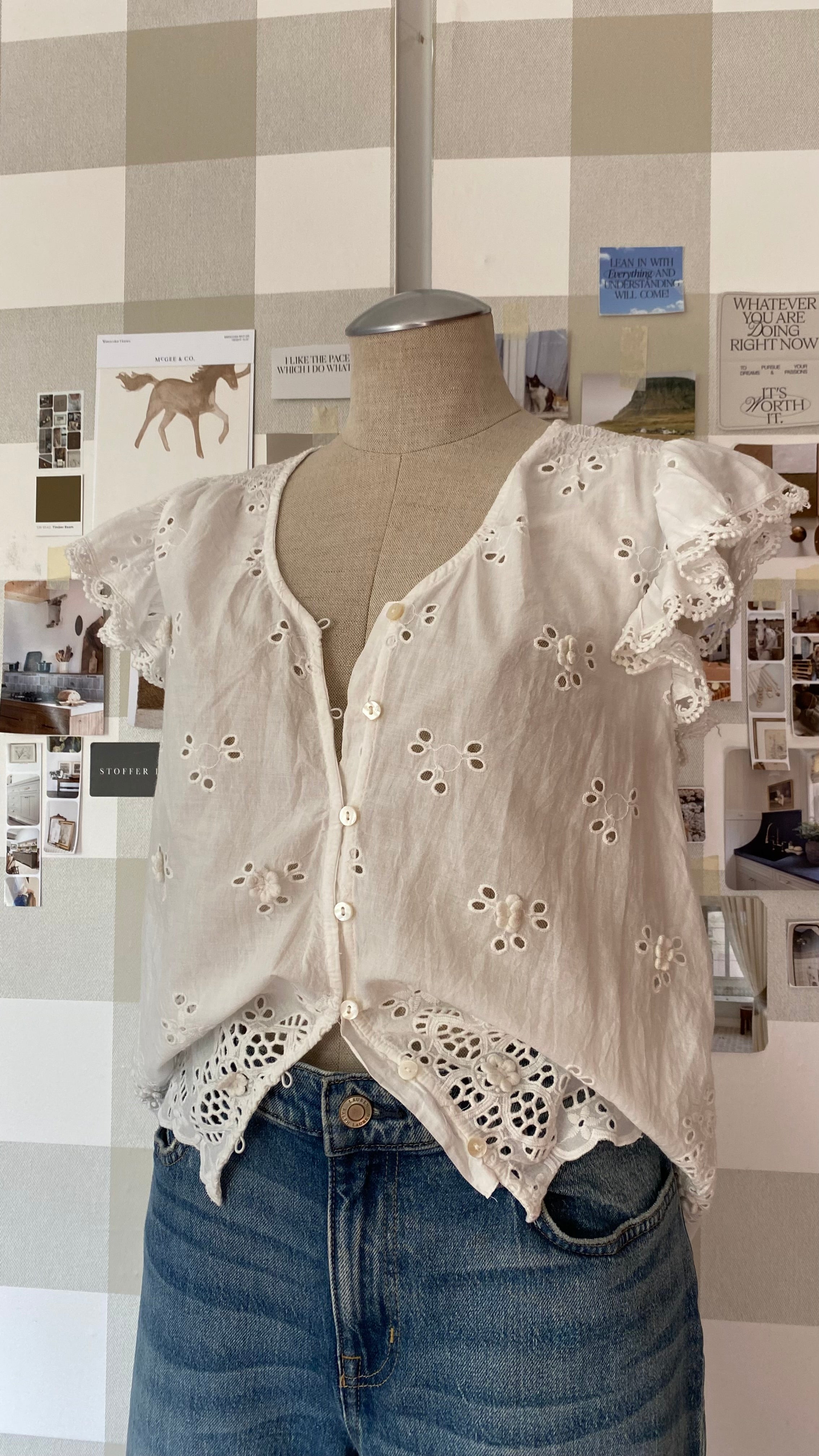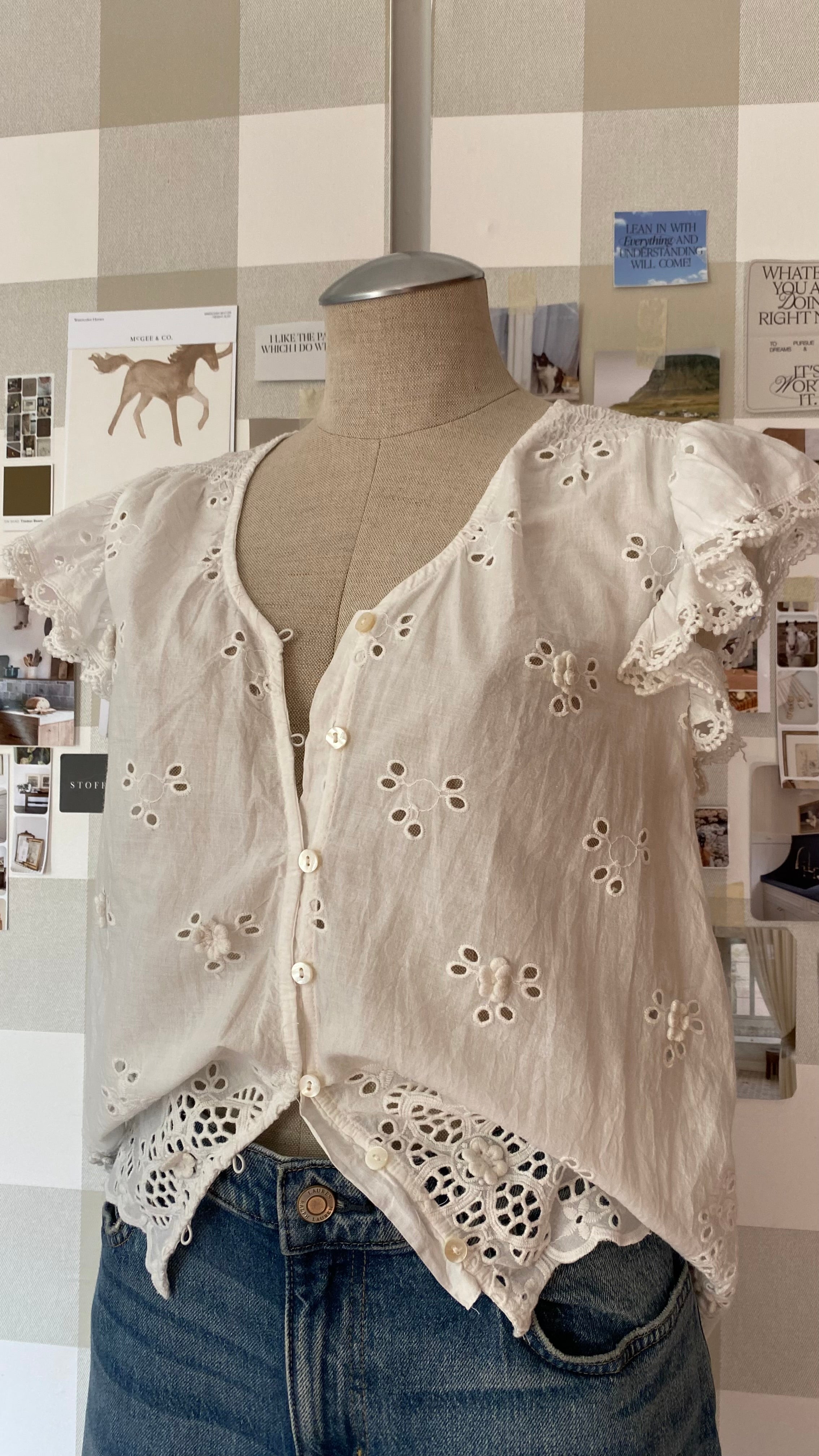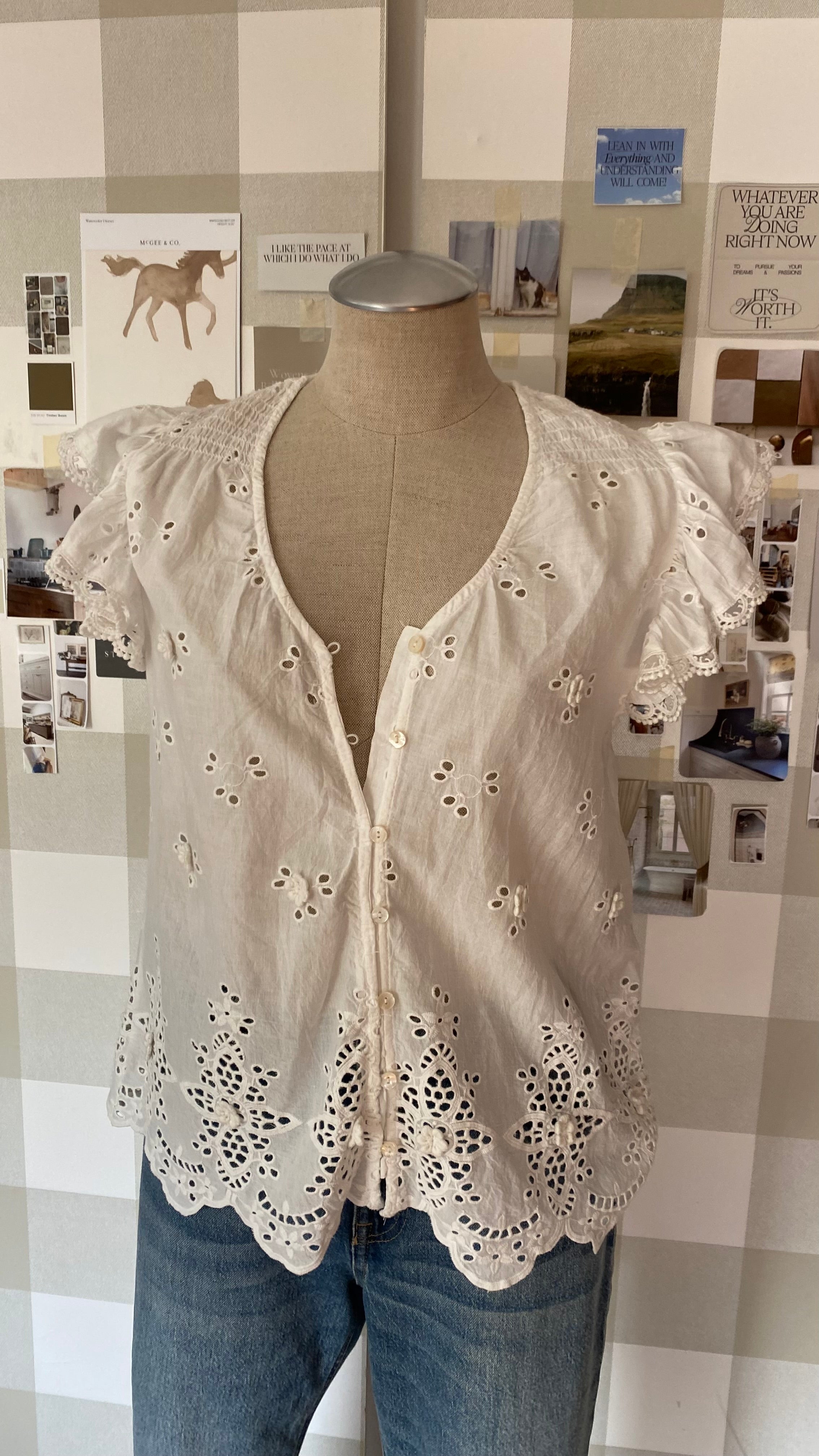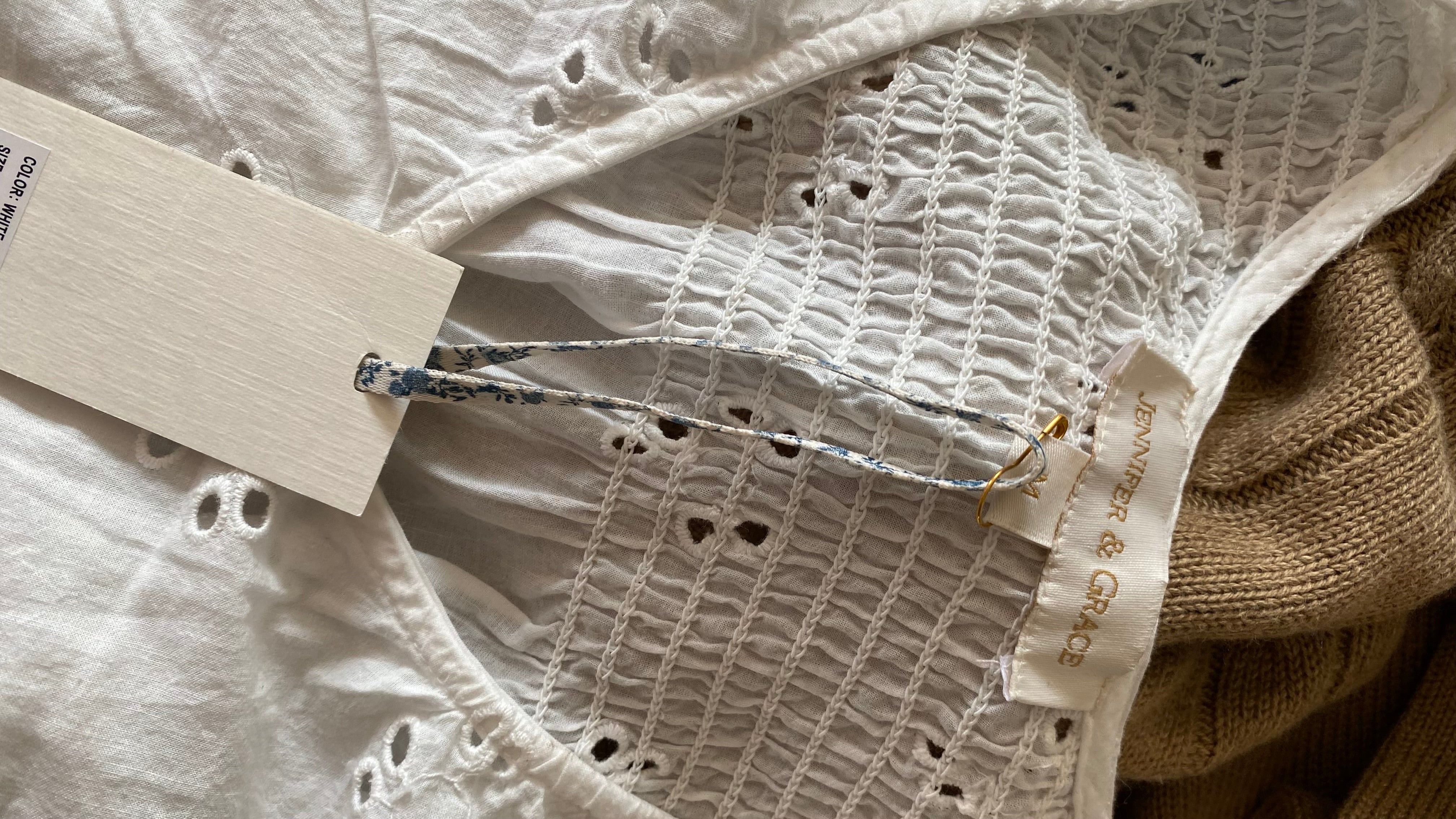New with tags medium eyelet lace button up blouse 100% cotton
