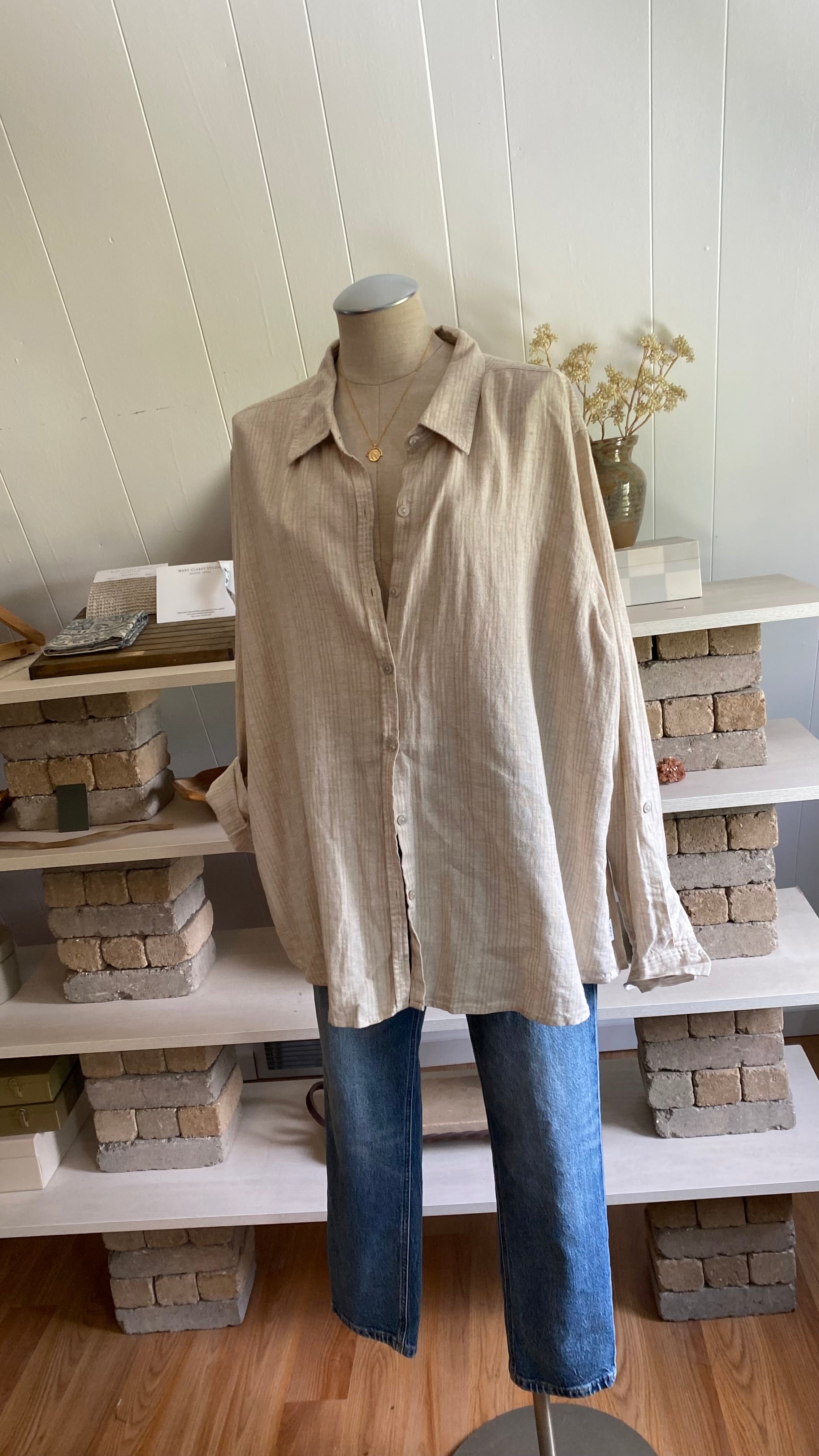Orvis linen blend woman’s xxl button down striped