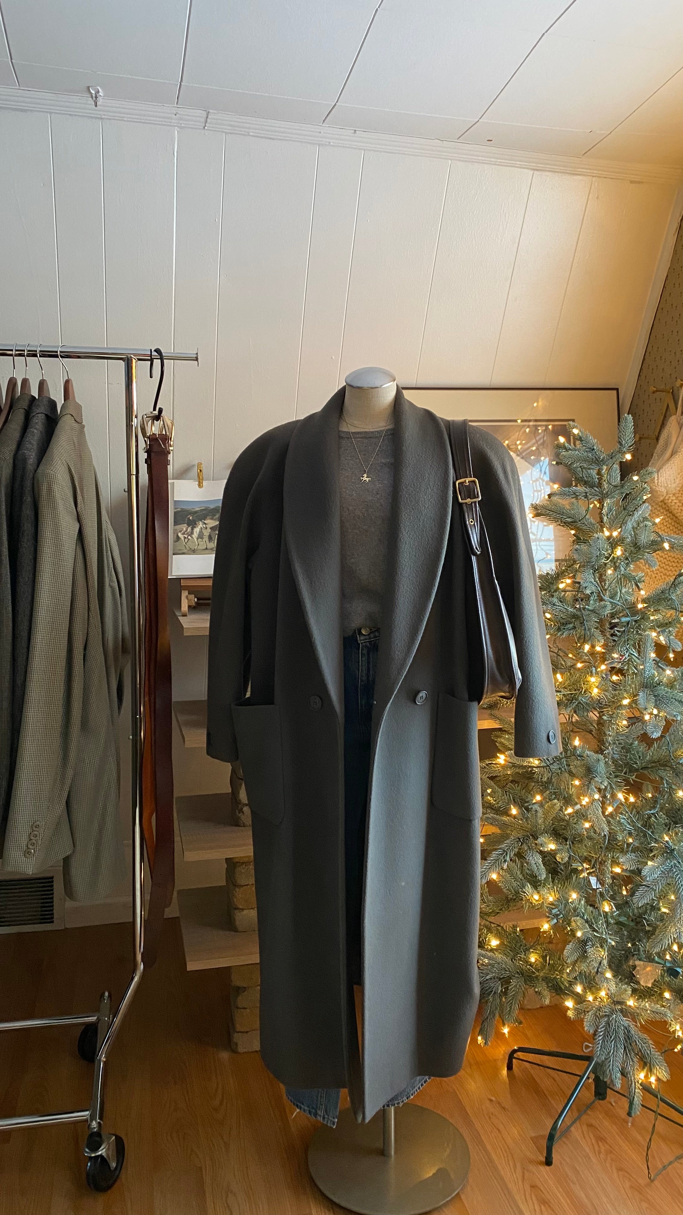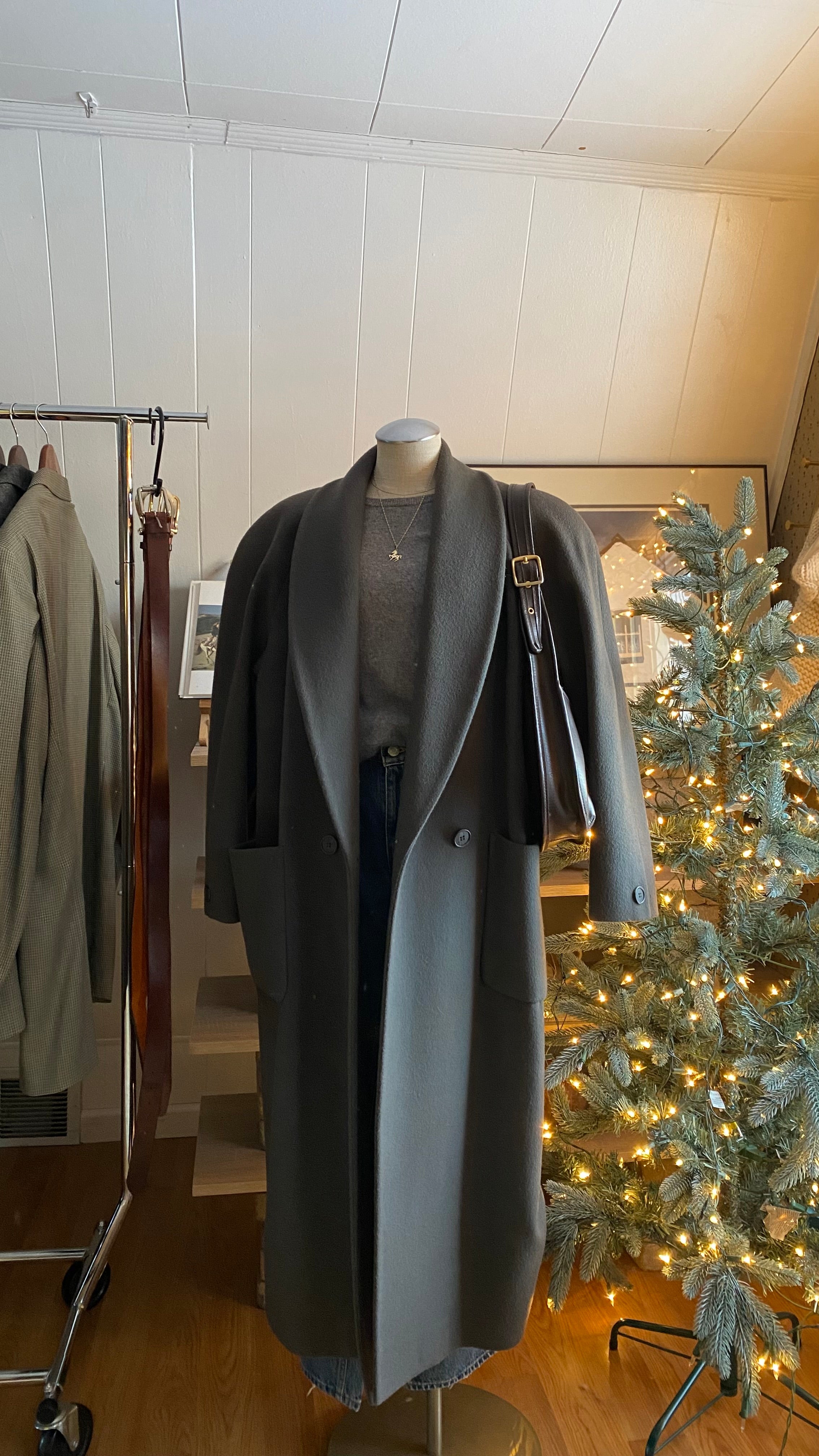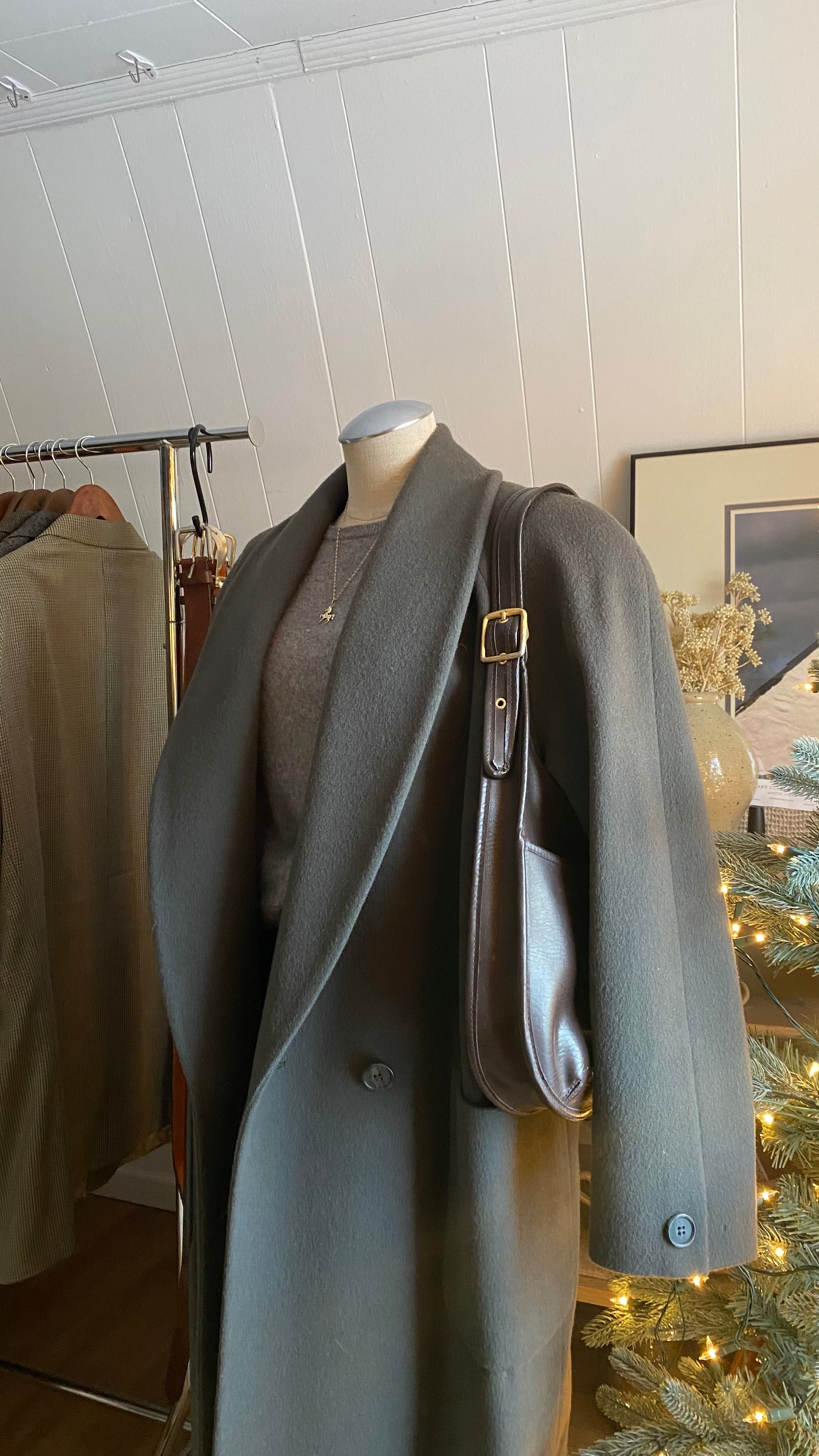 Vintage 100% wool woman’s jones New York weighted moss green coat good for size large