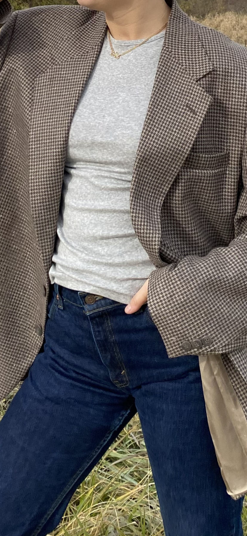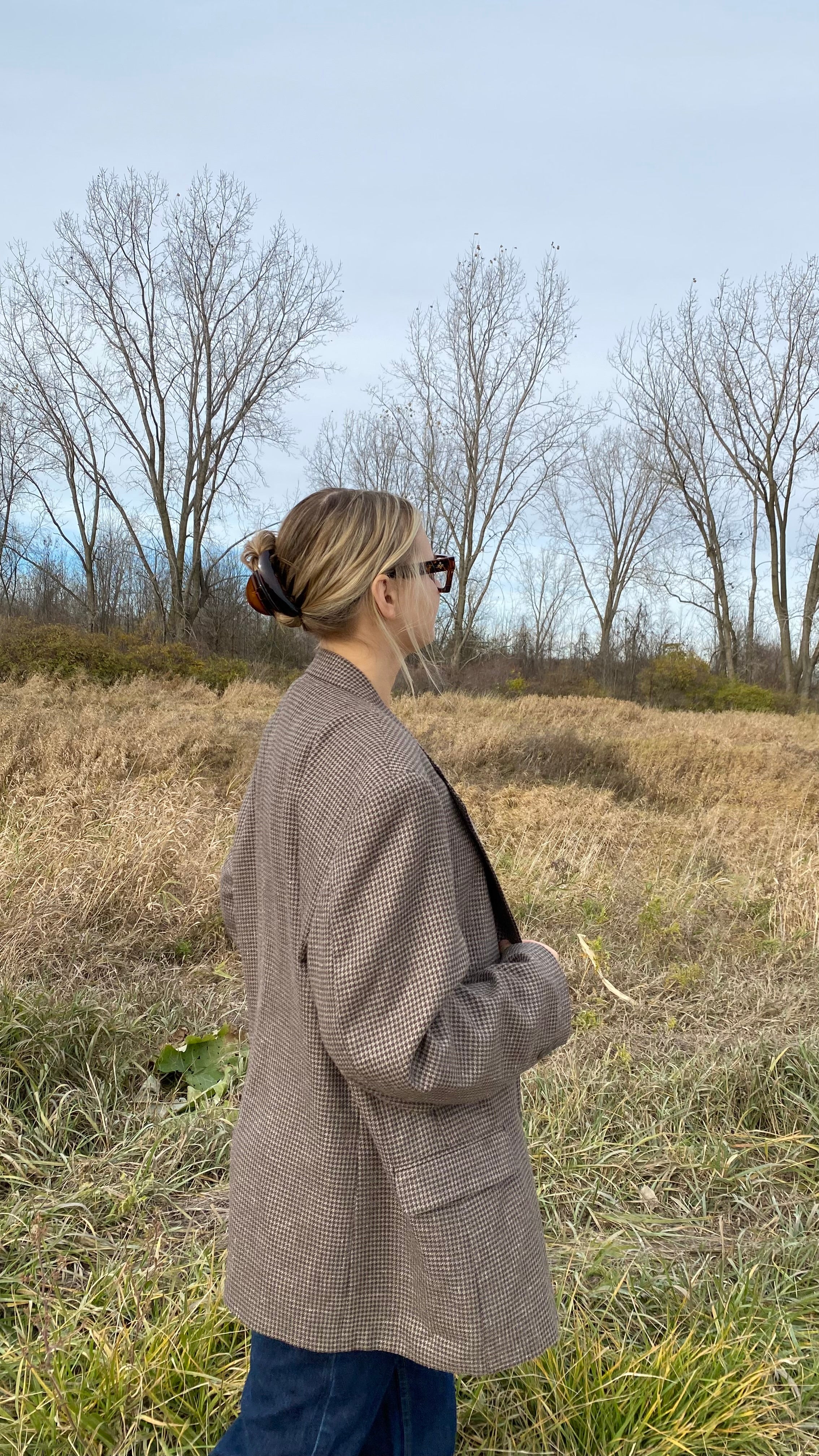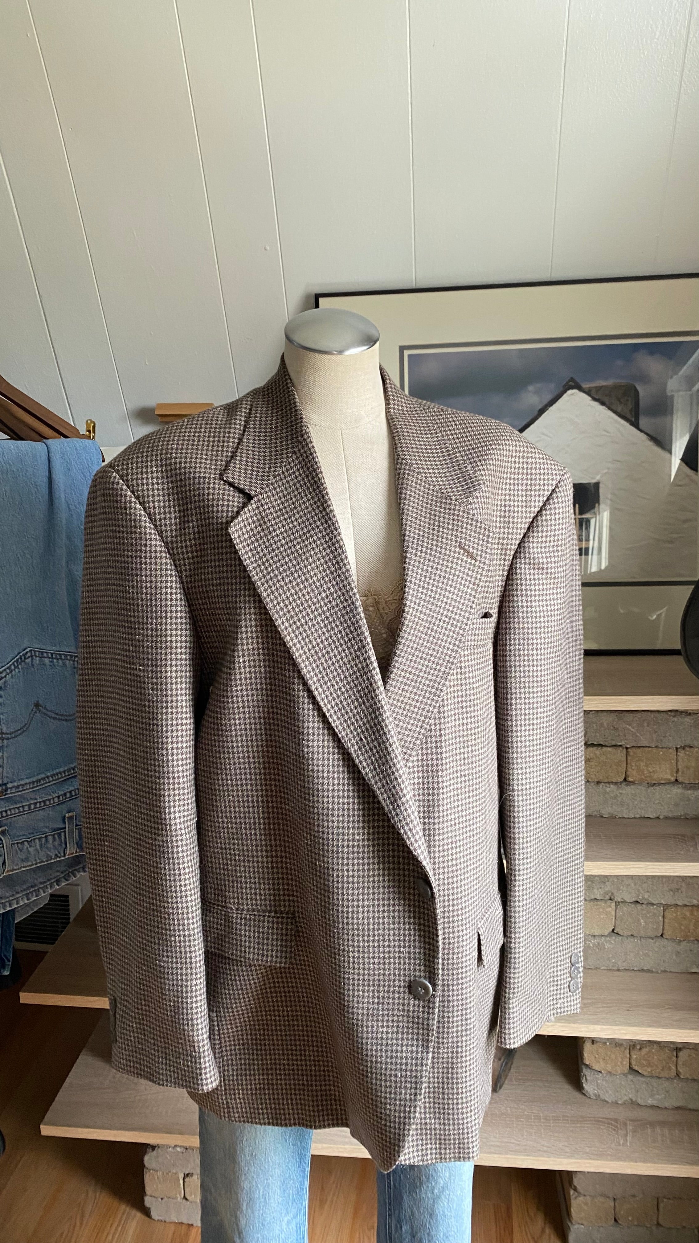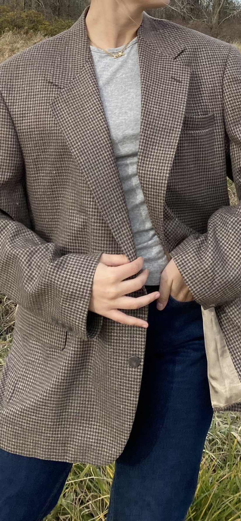 Vintage wool silk blend blazer good for woman’s large for slight oversized fit (measurements in photos)