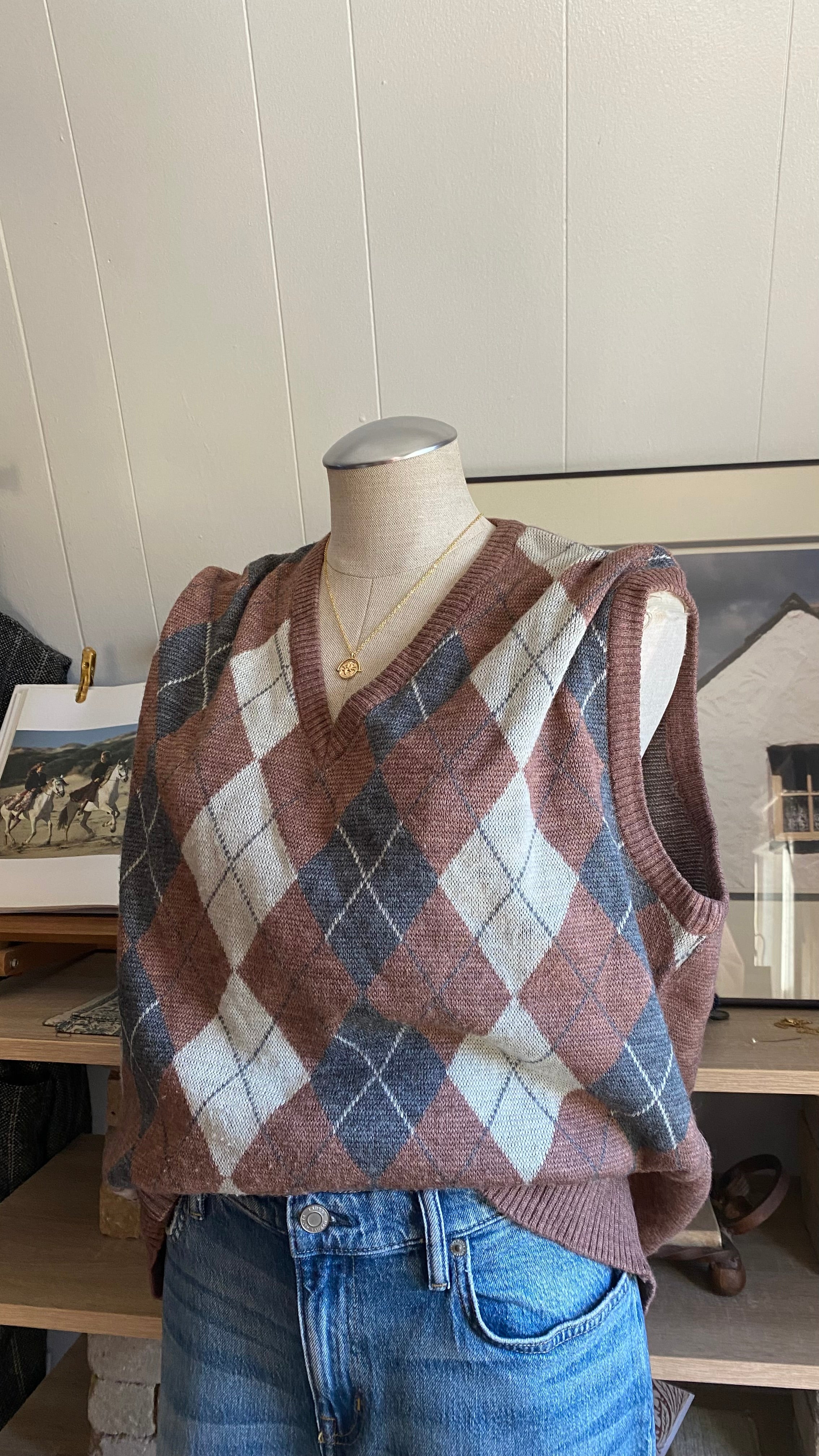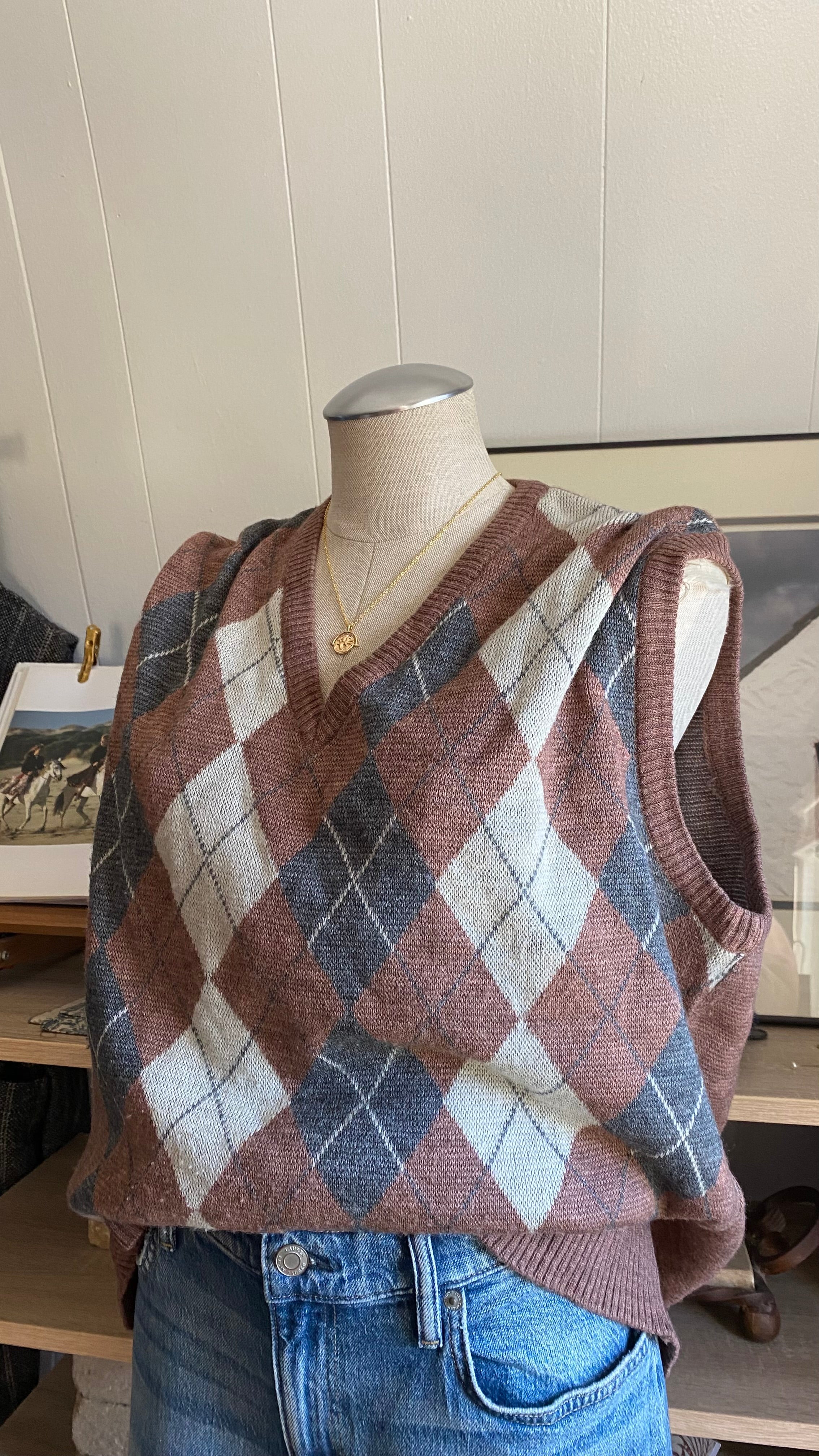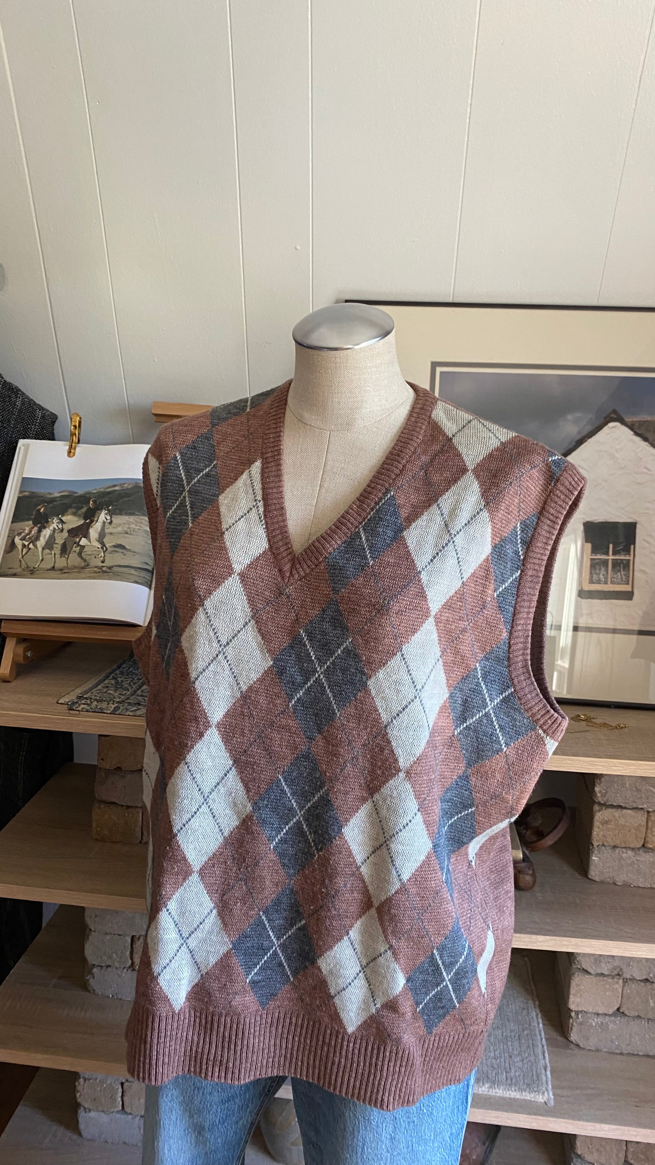 Vintage 65% wool argyle sweater vest xxl
