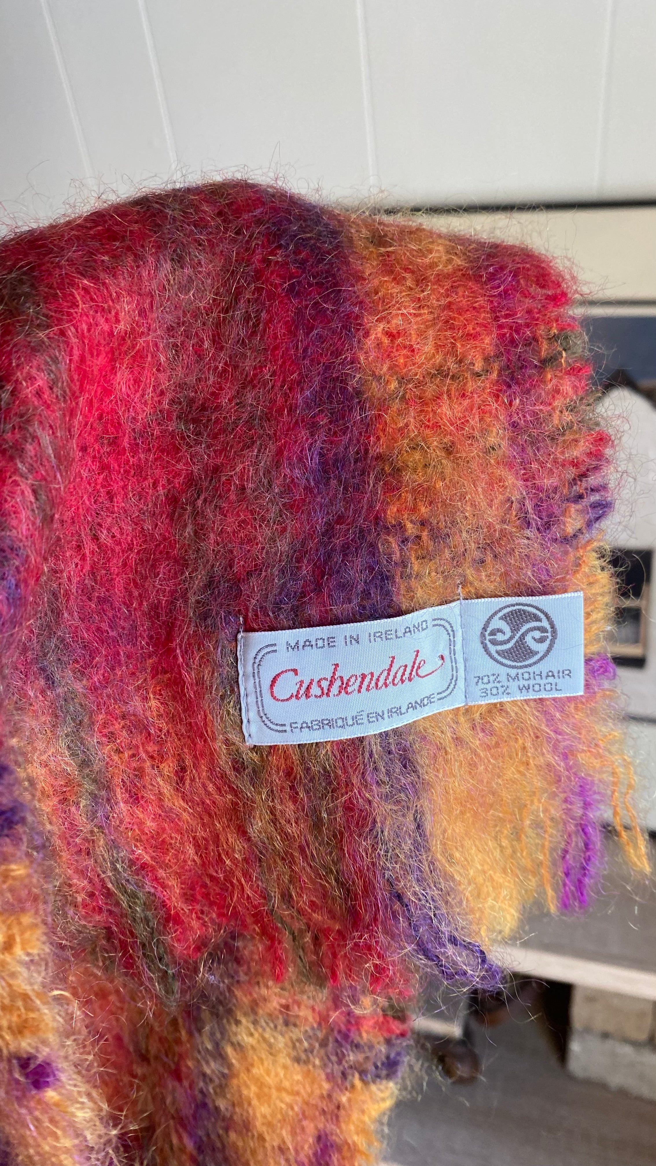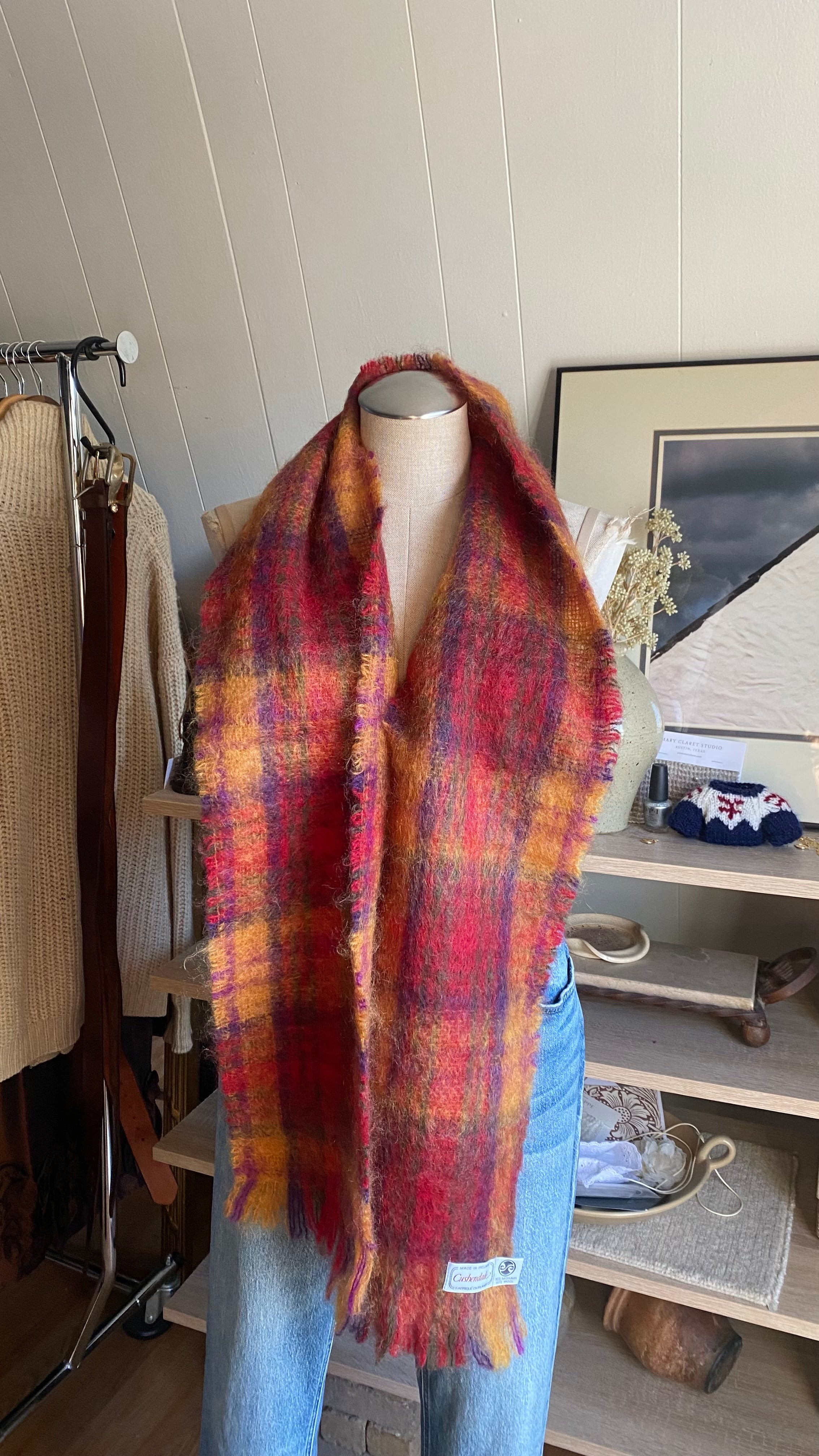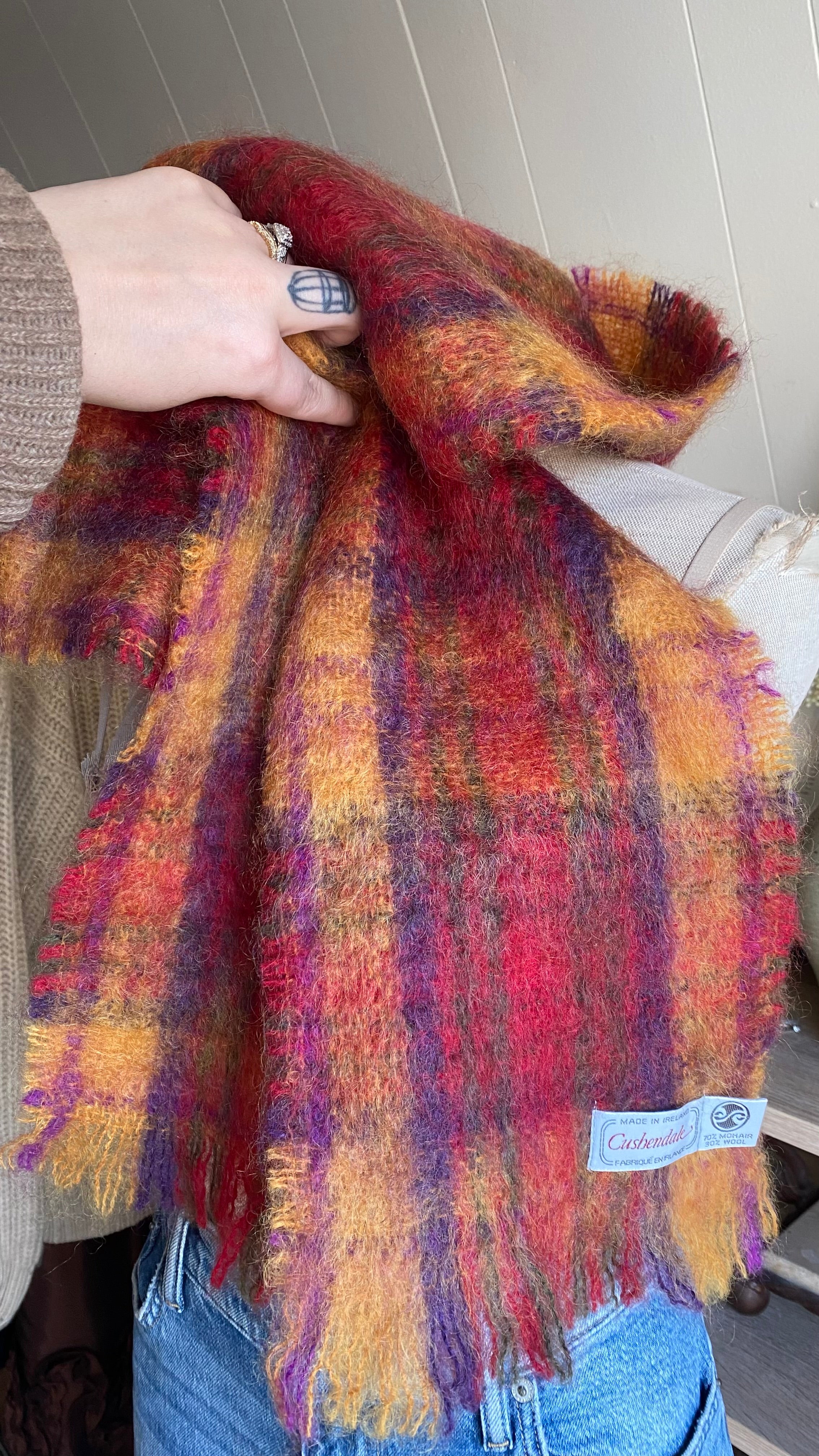 Vintage 70% mohair and wool plaid scarf made in Ireland