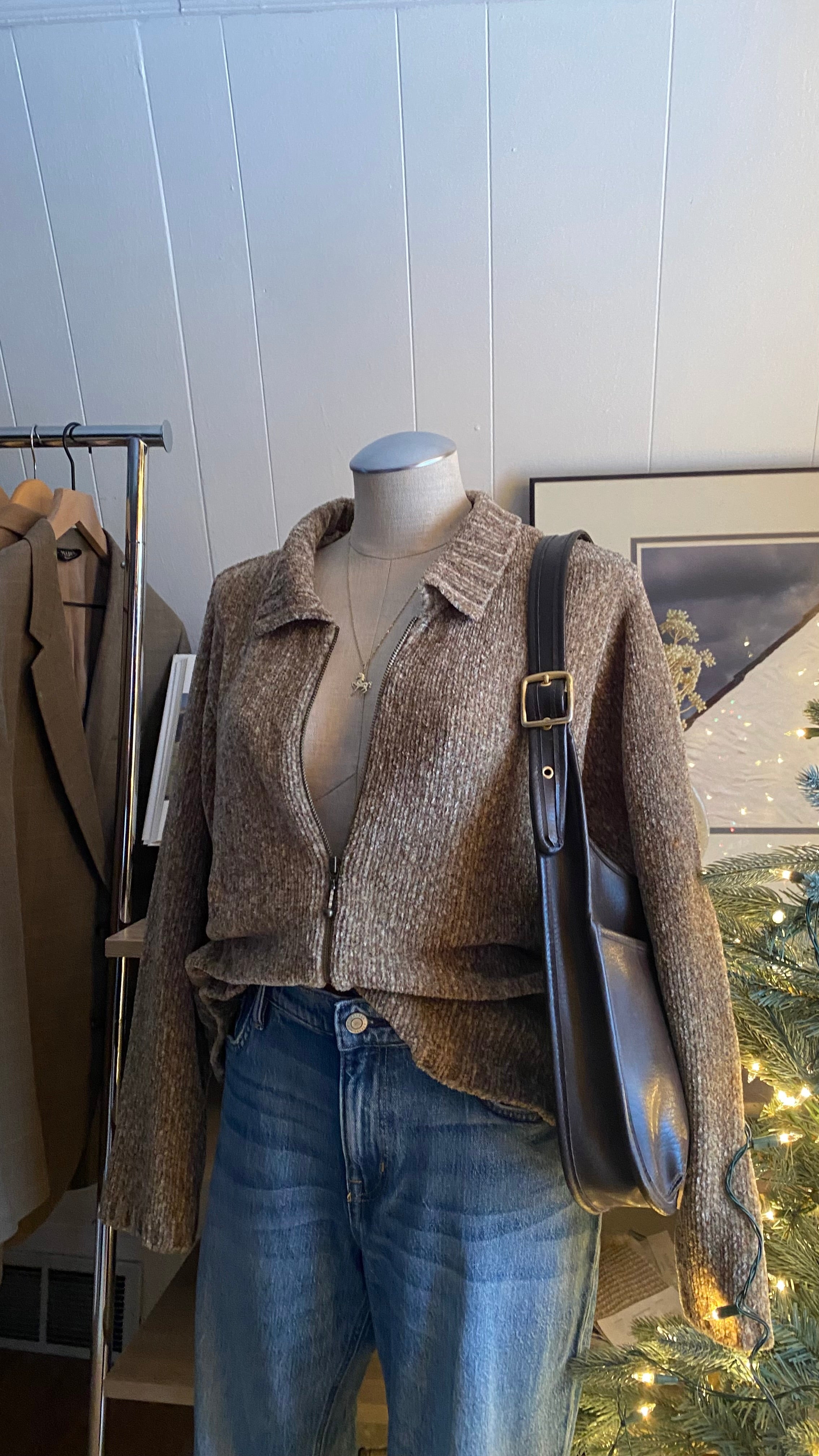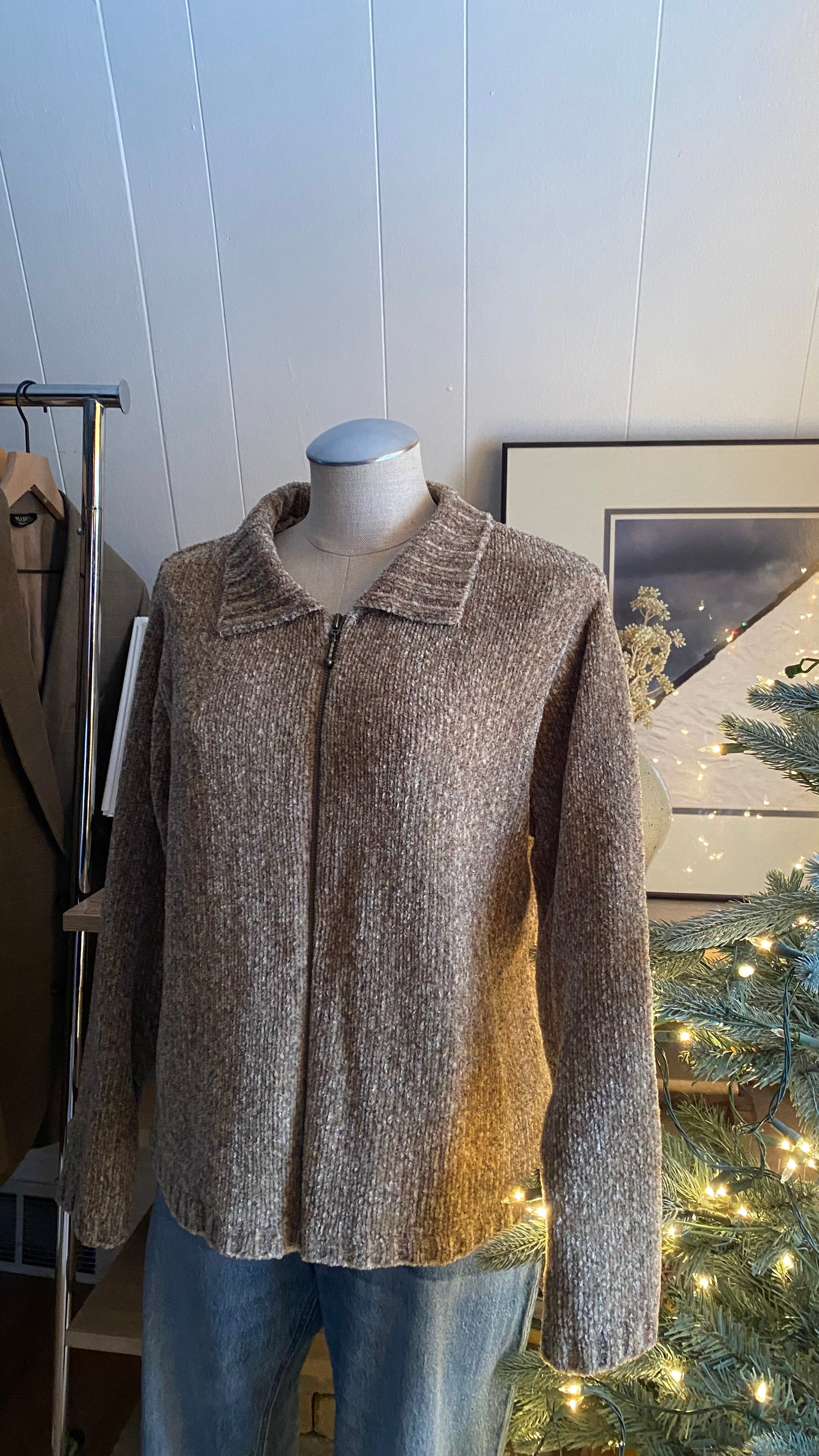 Vintage chenille multi oat zip up large
