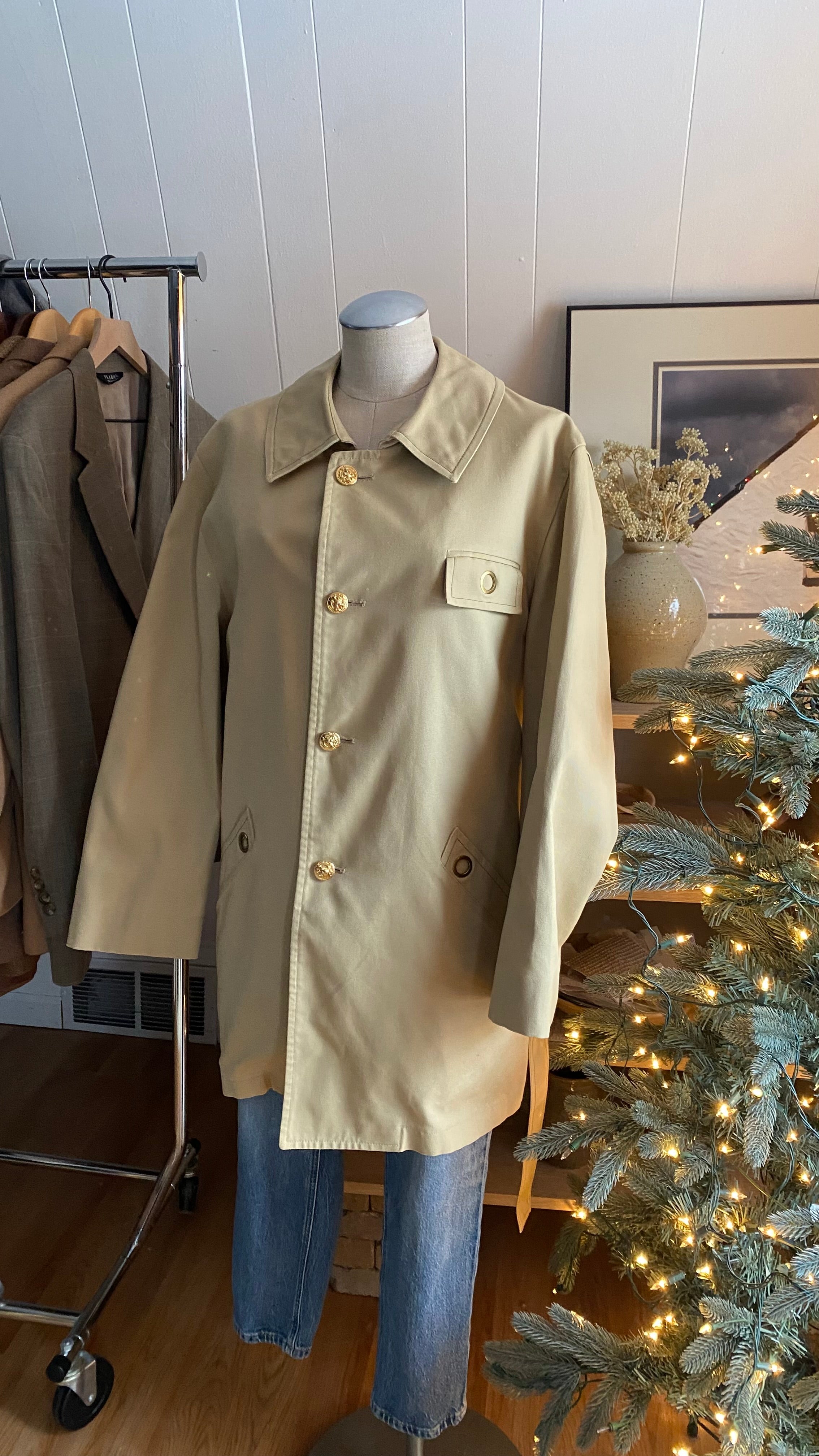Vintage grommet belt jacket good for woman’s xl (measurements in photos)