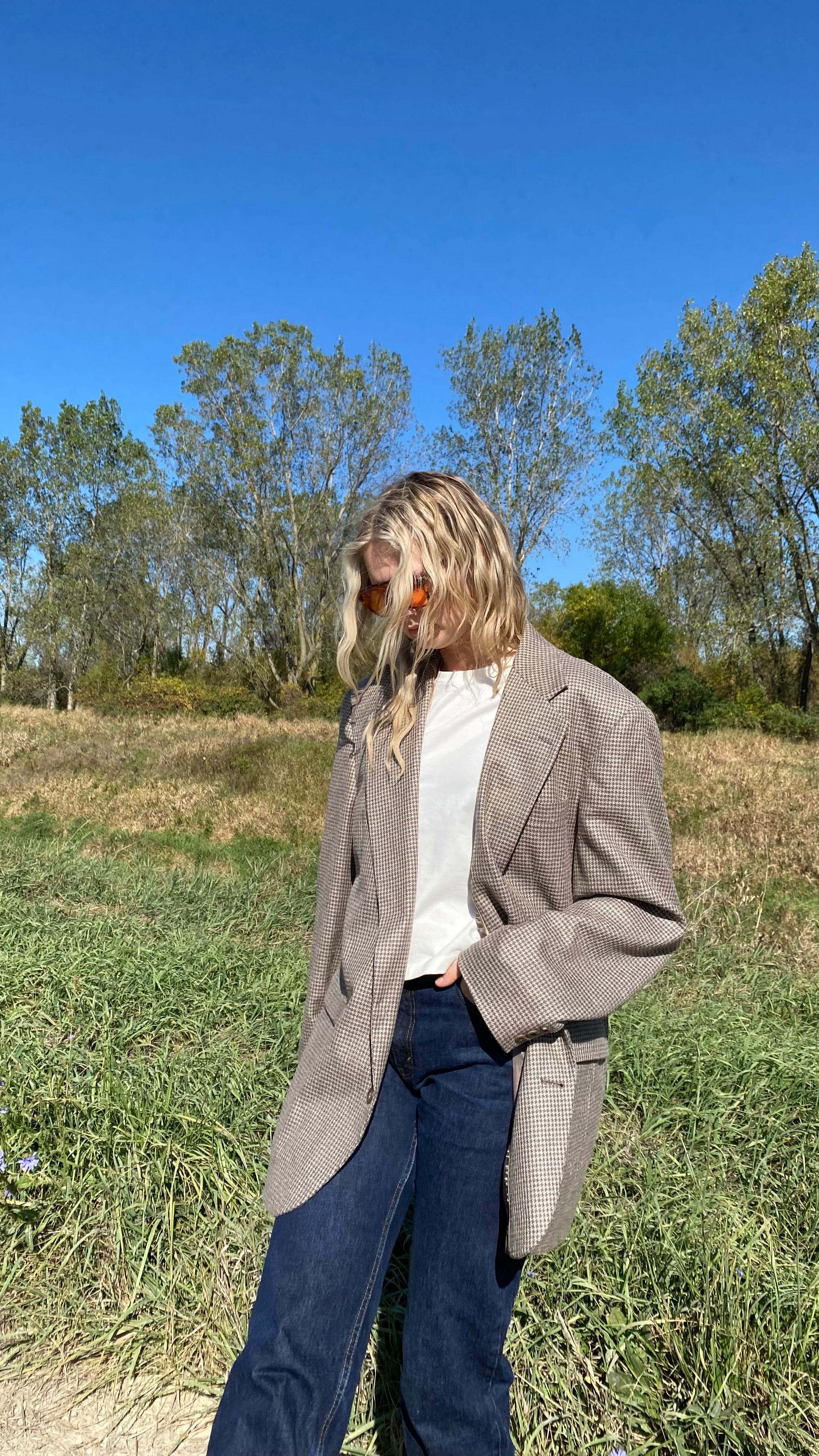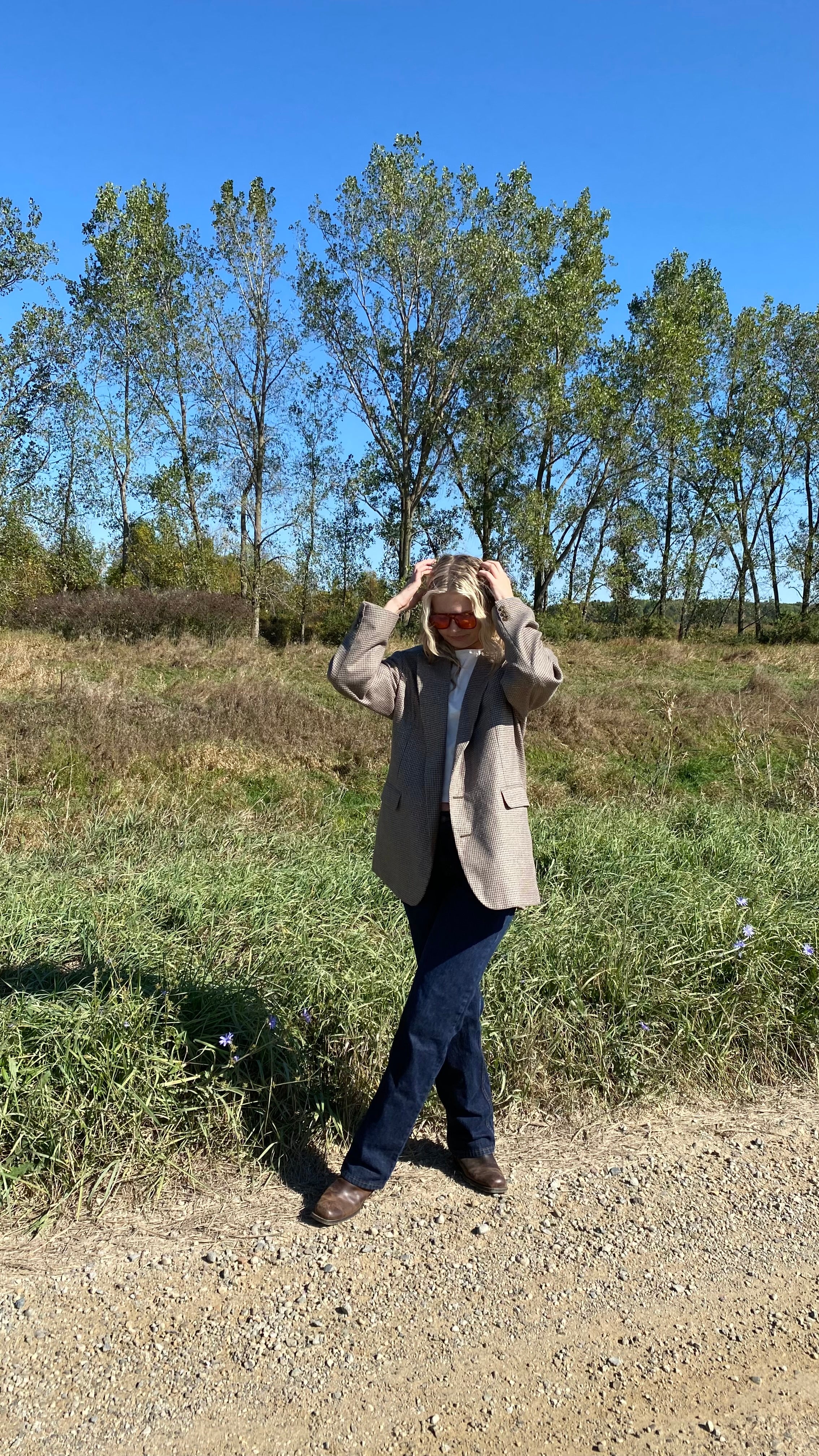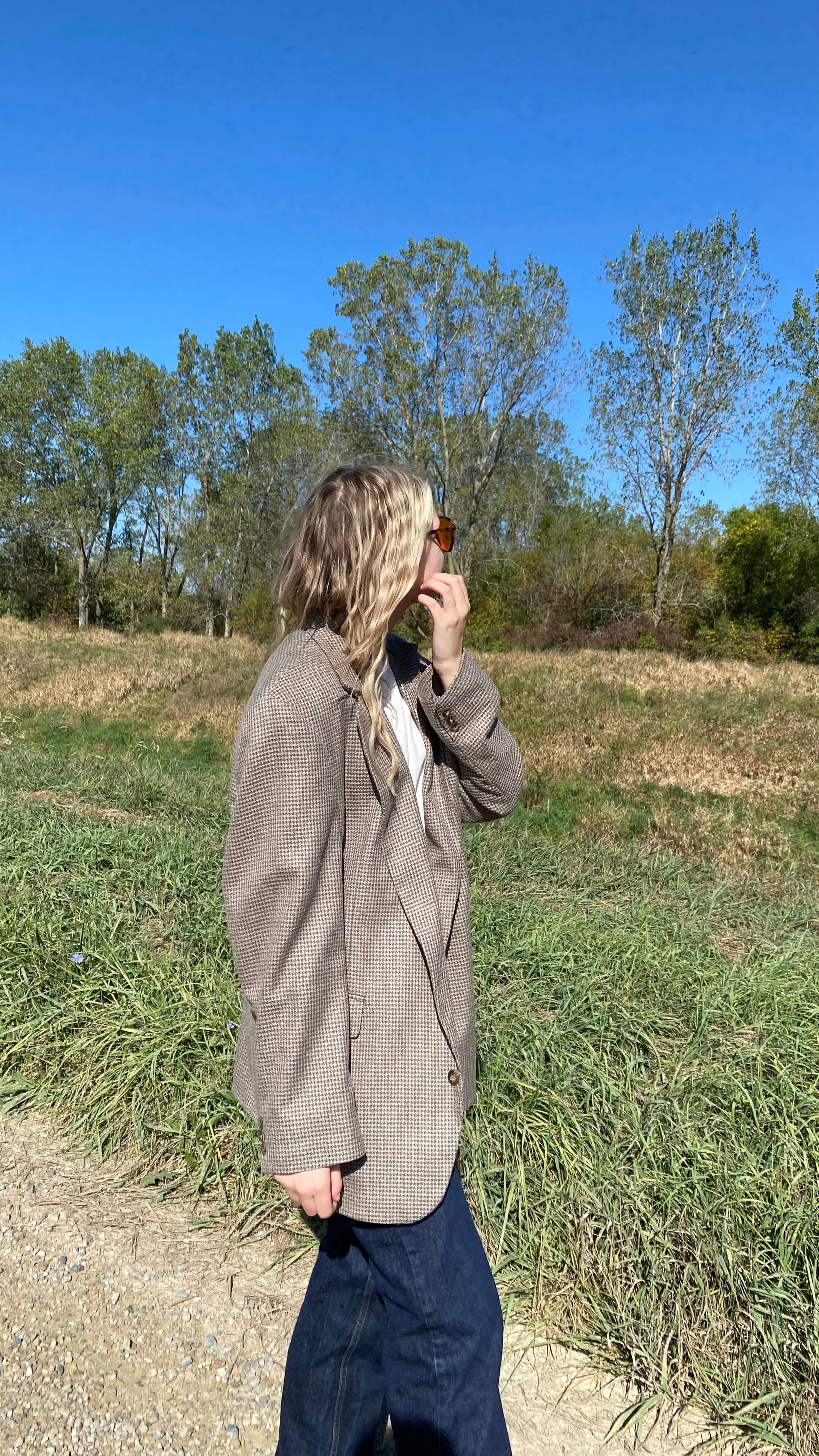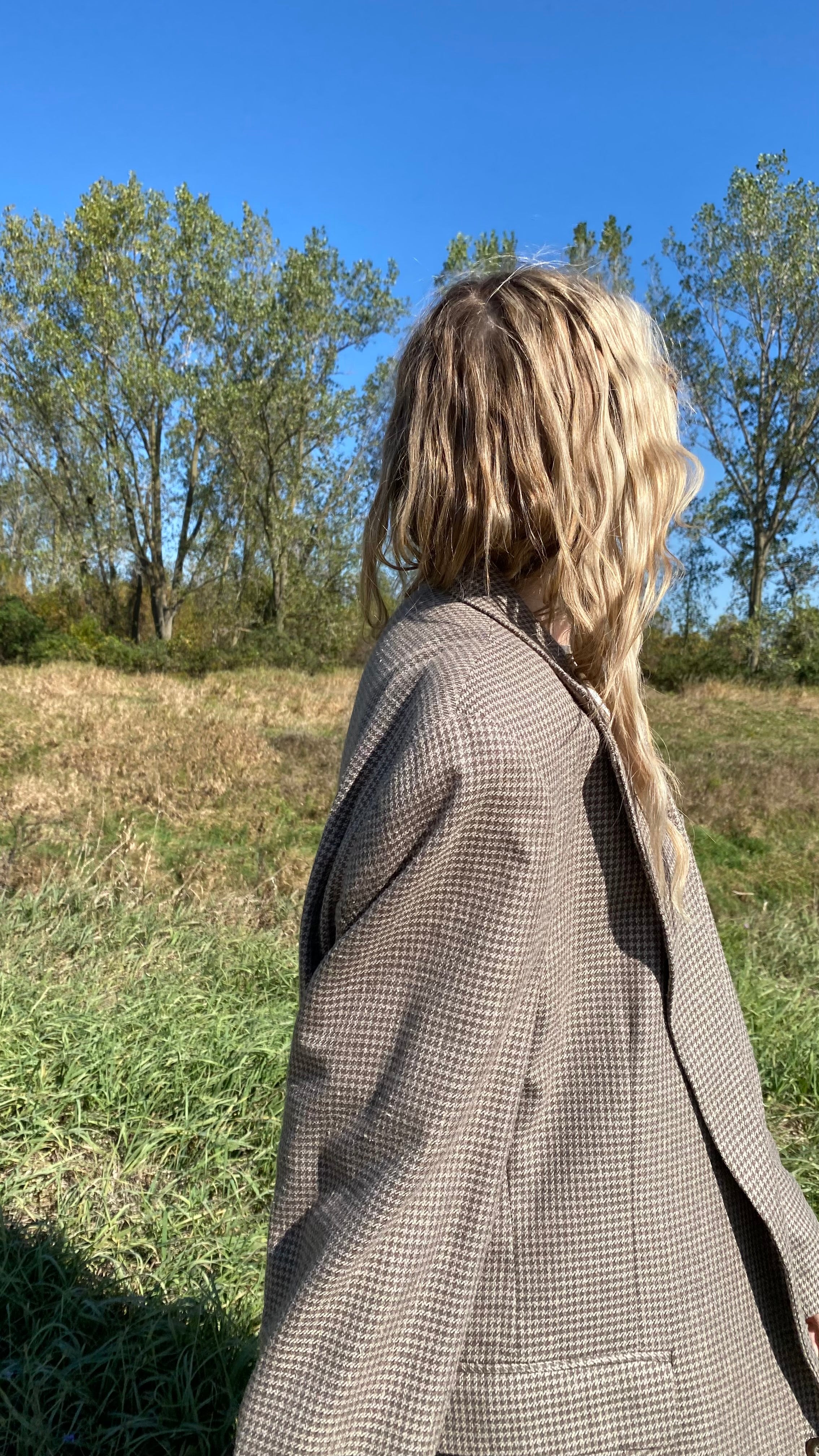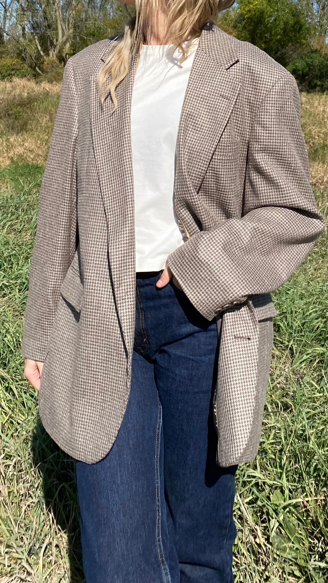 wool shell blazer good for woman’s large for slight oversized look (measurements in photos)