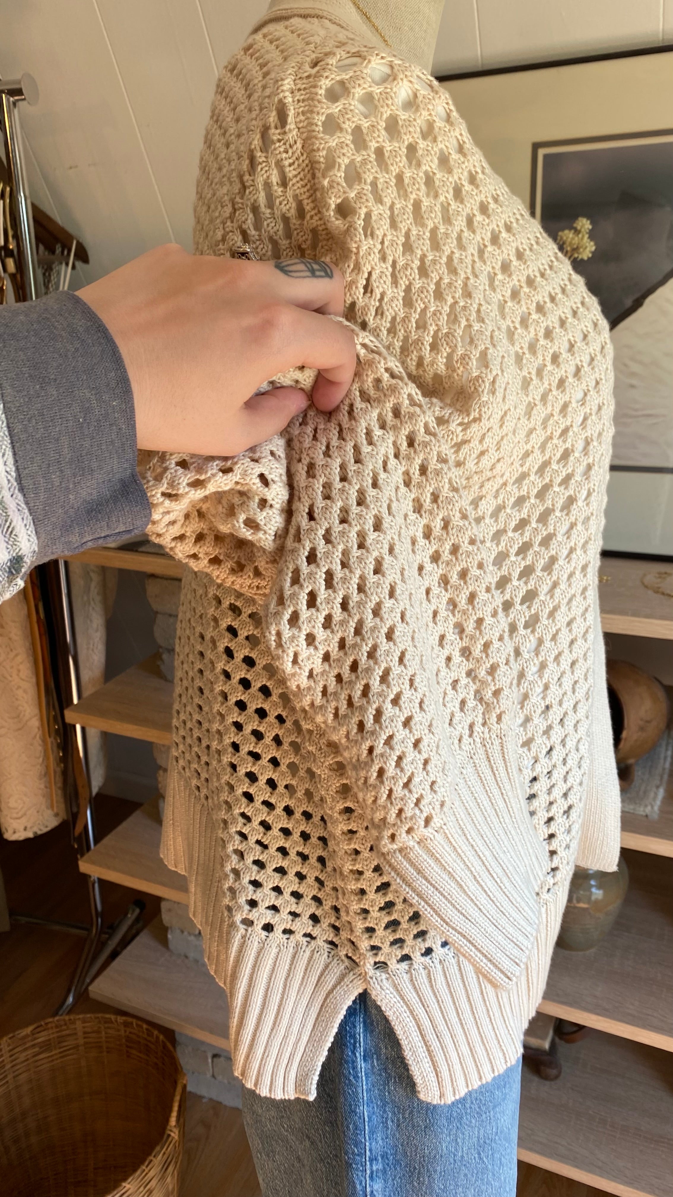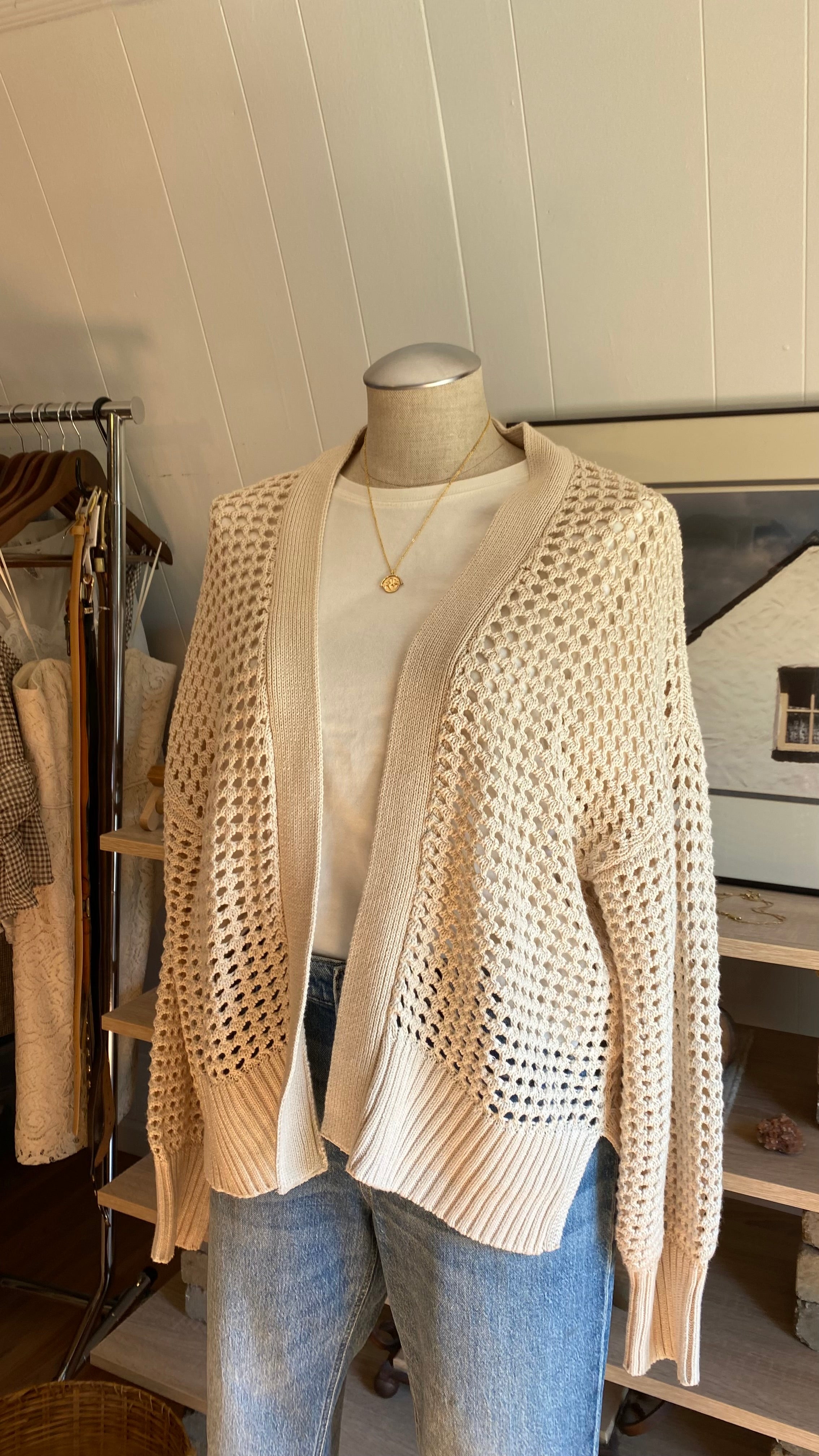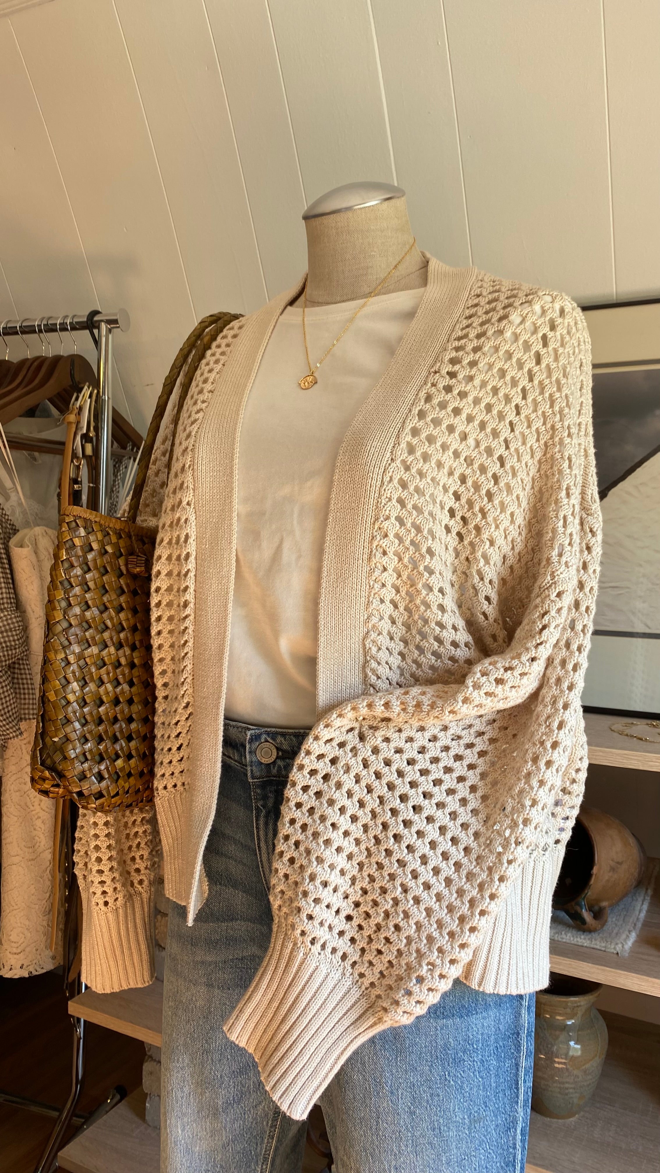 Xl cream open knit cardigan cotton blend
