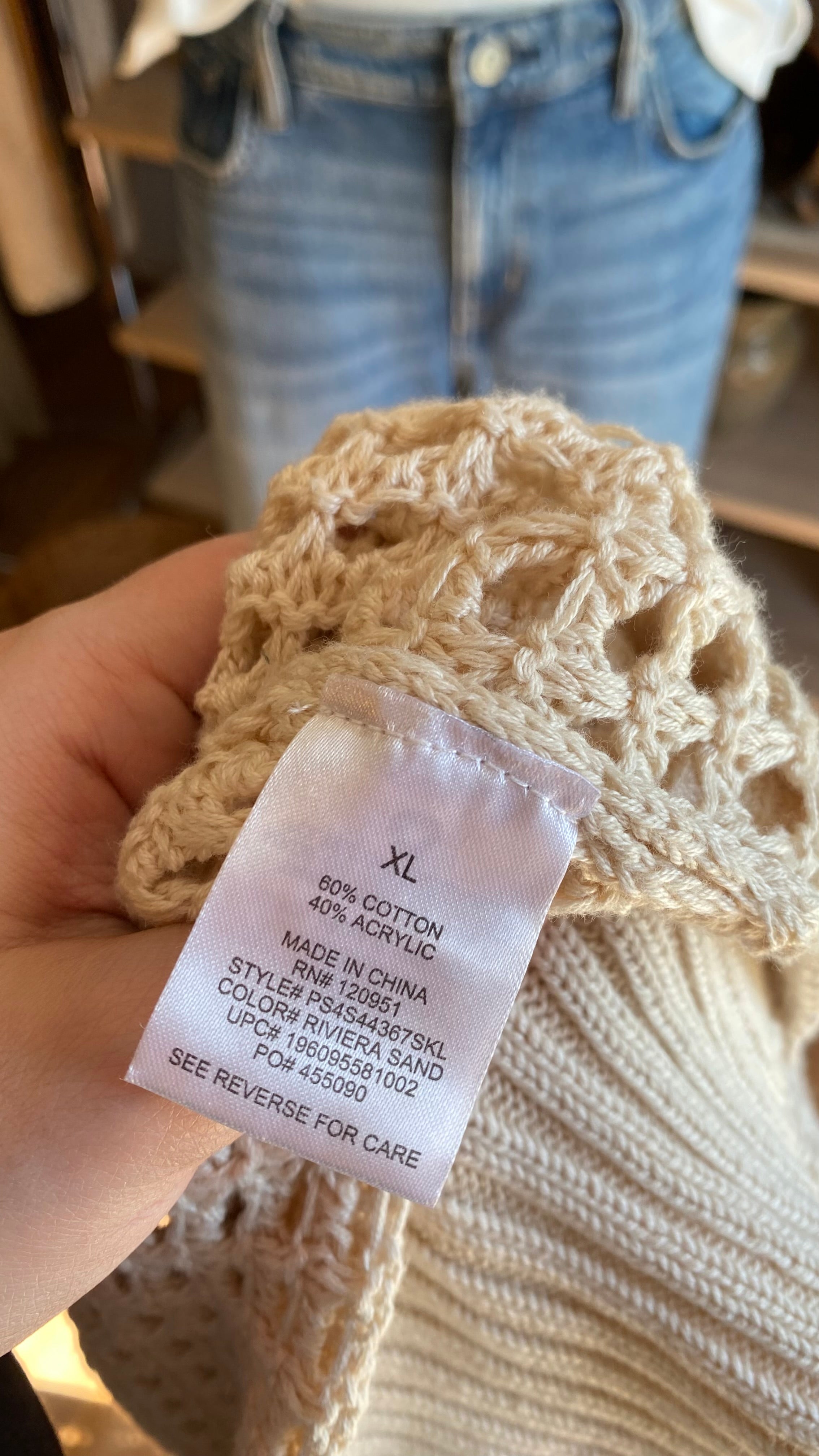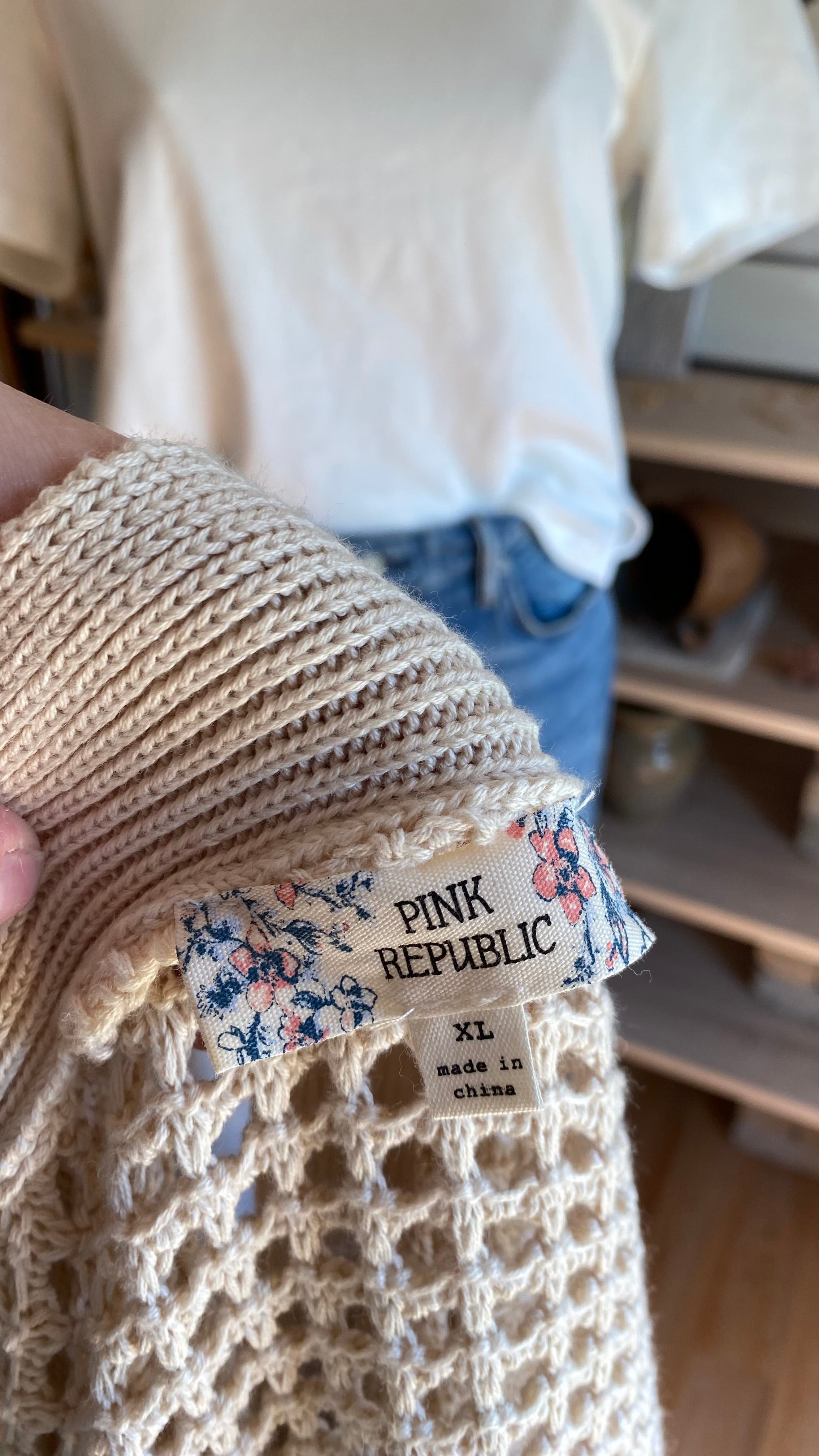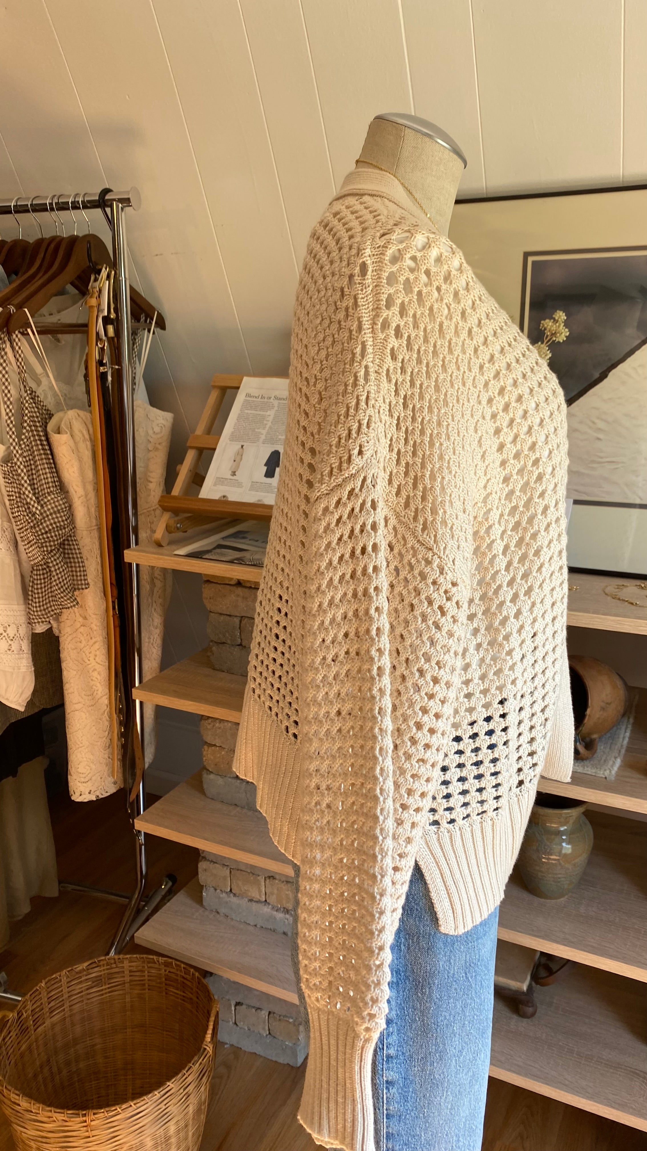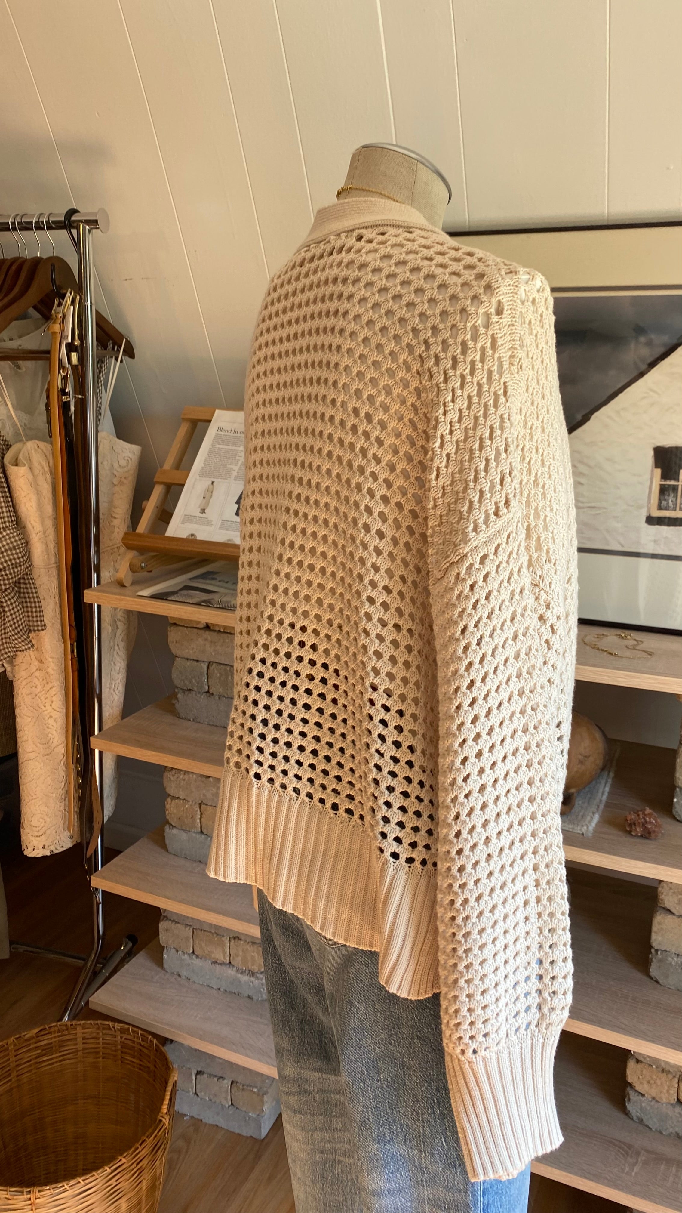 Xl cream open knit cardigan cotton blend