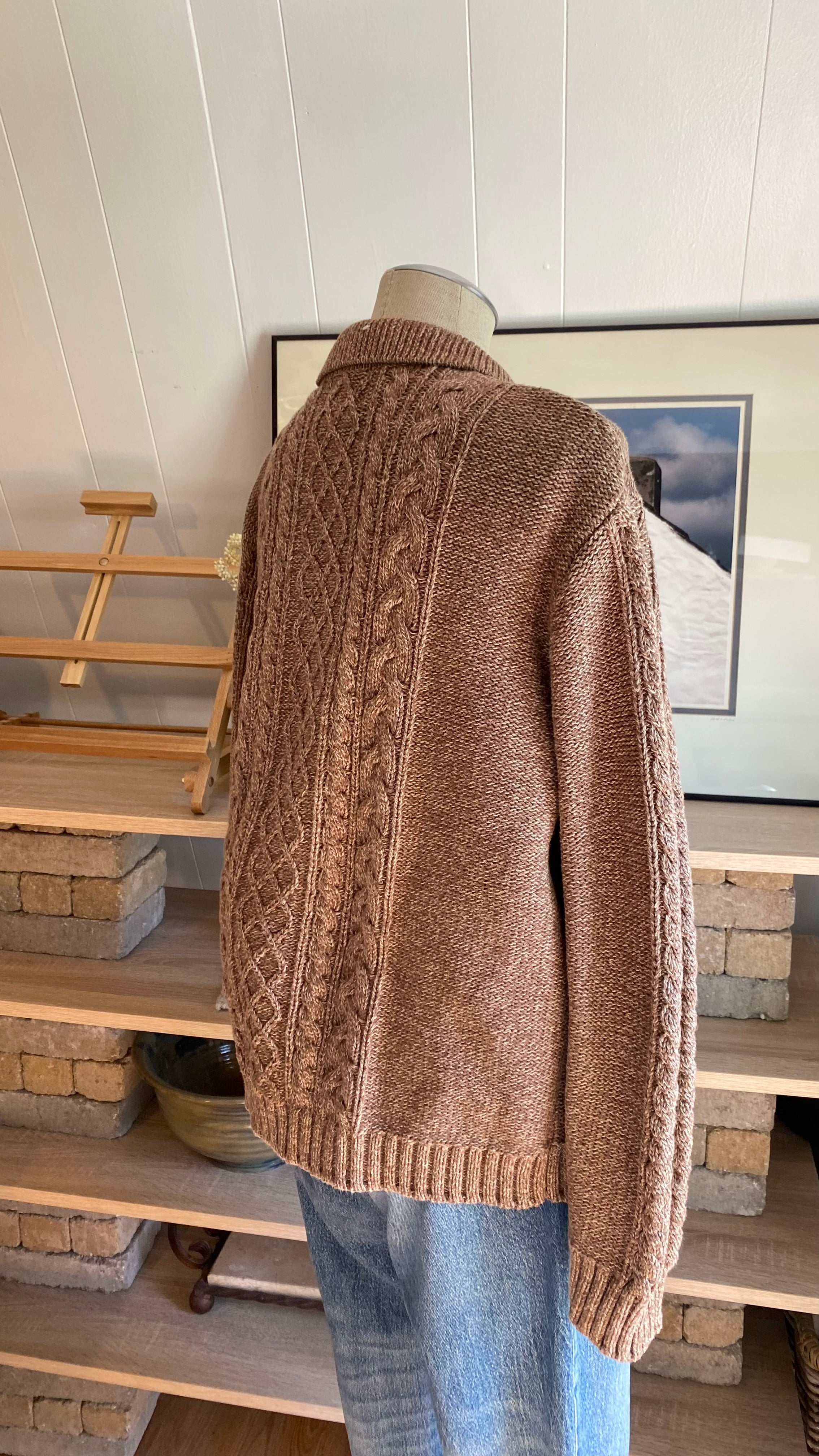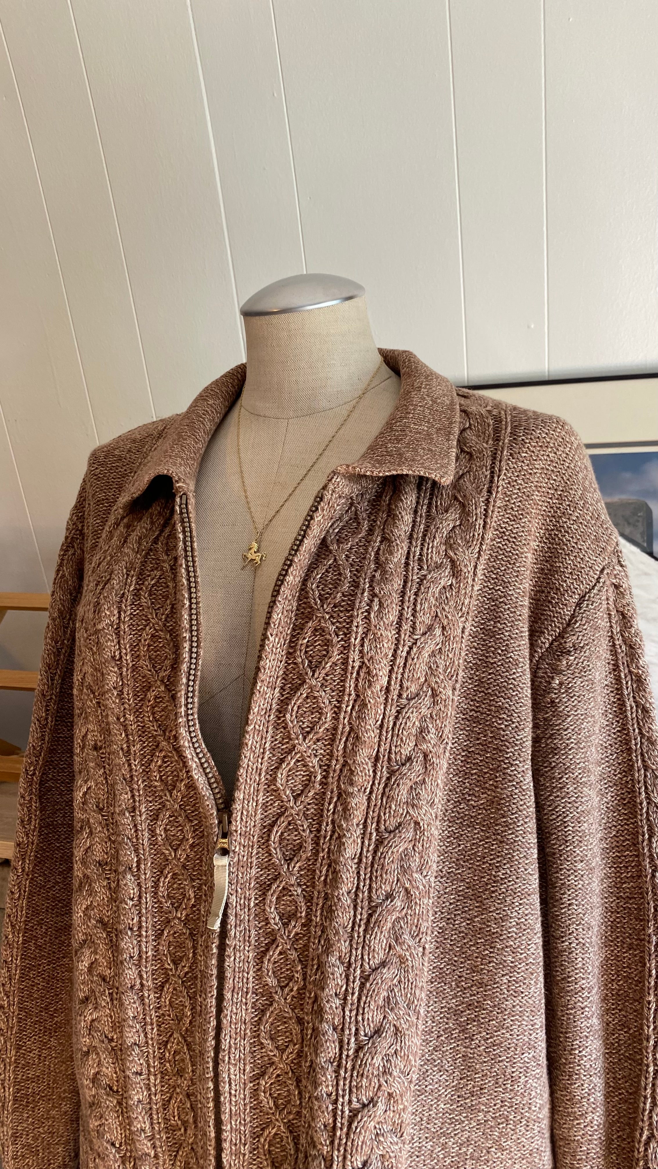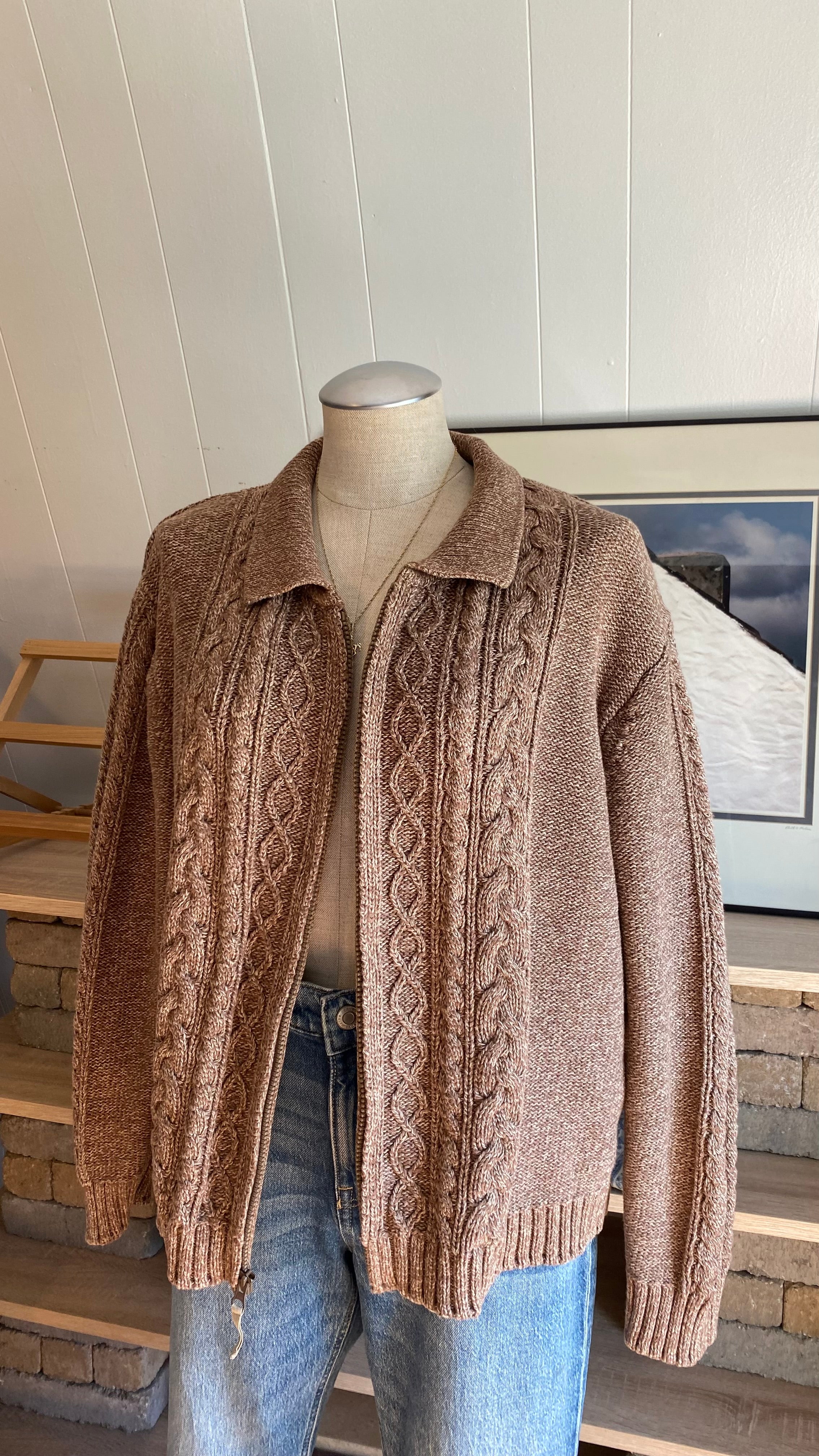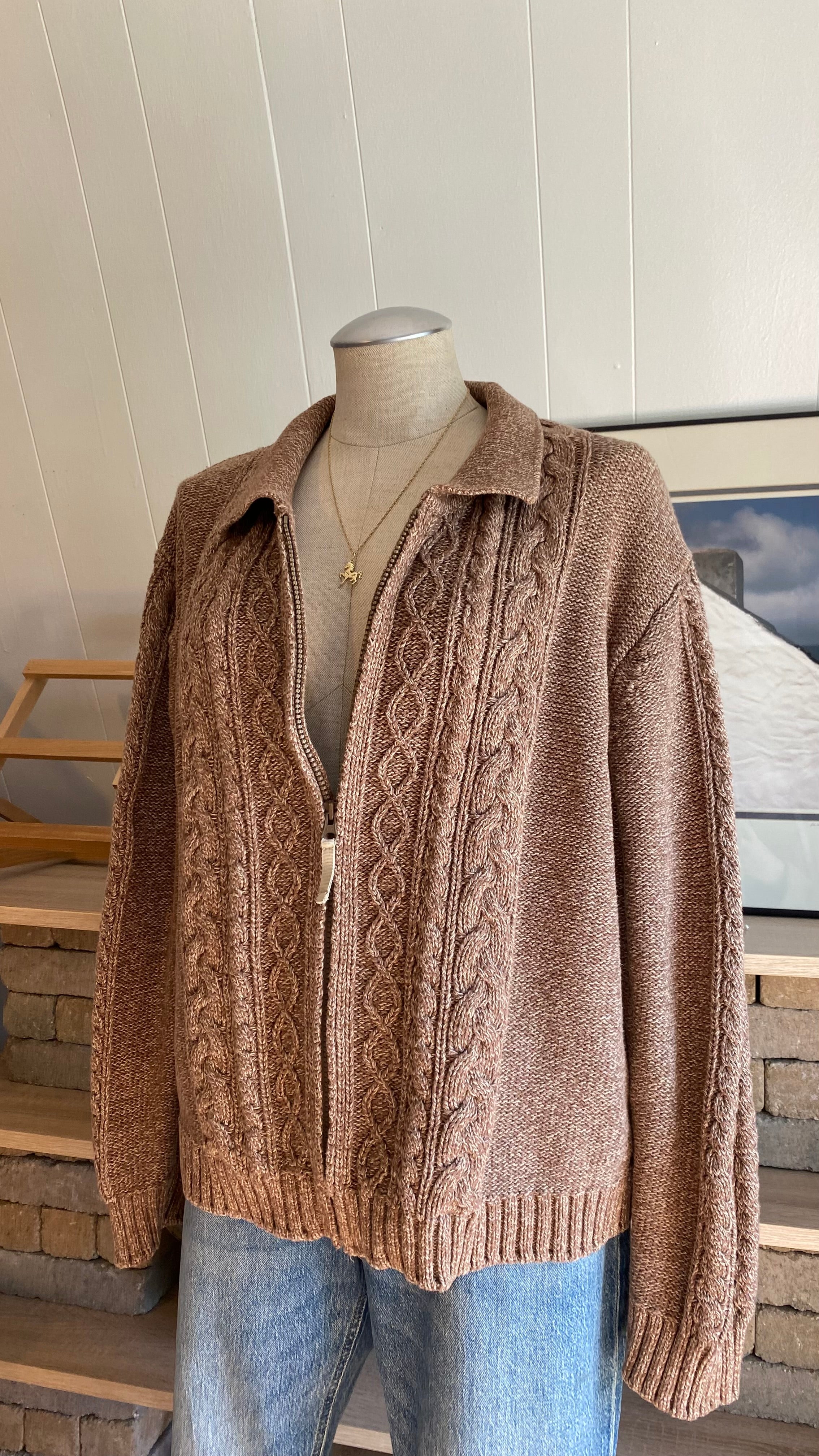 Xxl cotton cable knit zip up