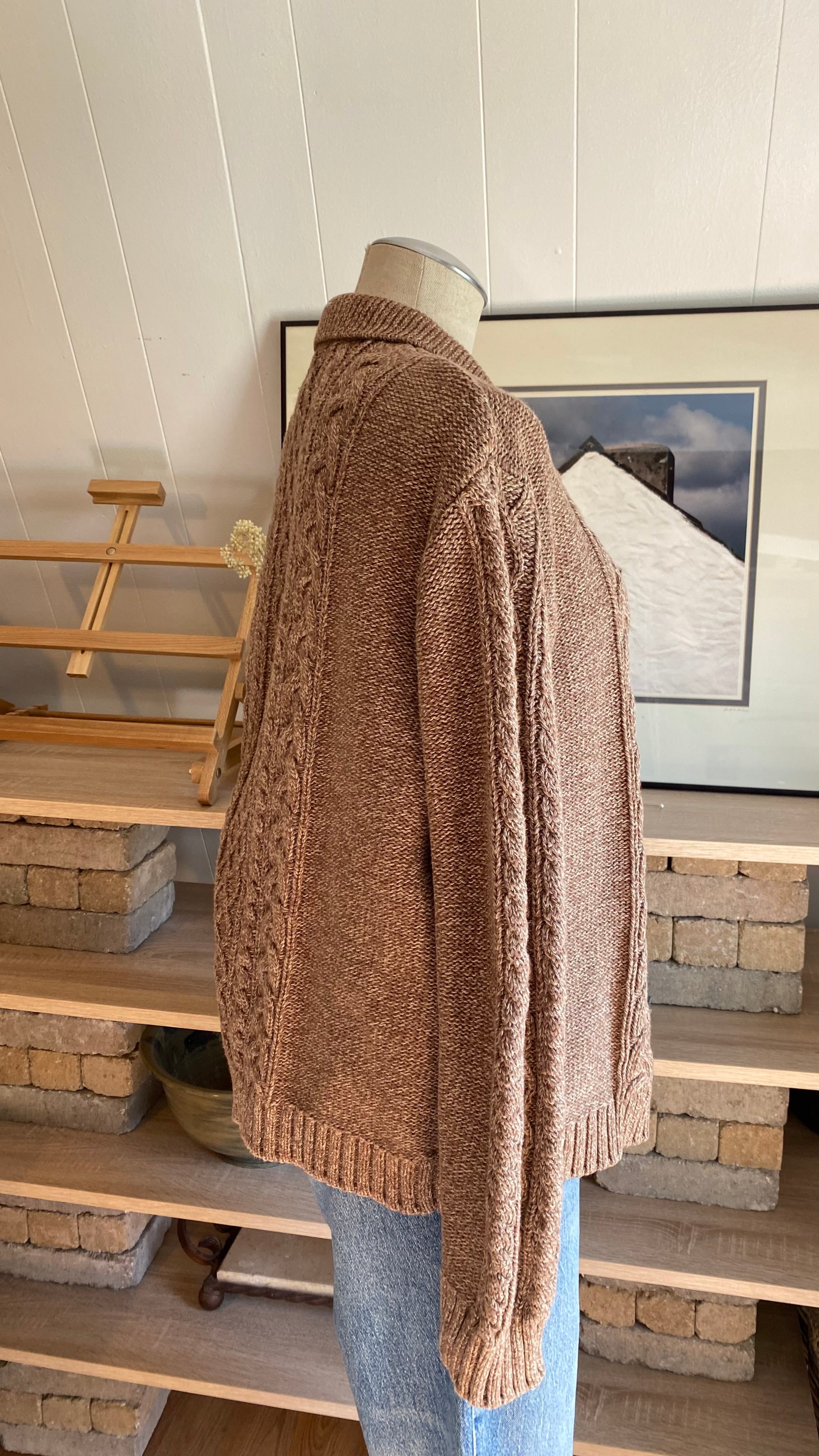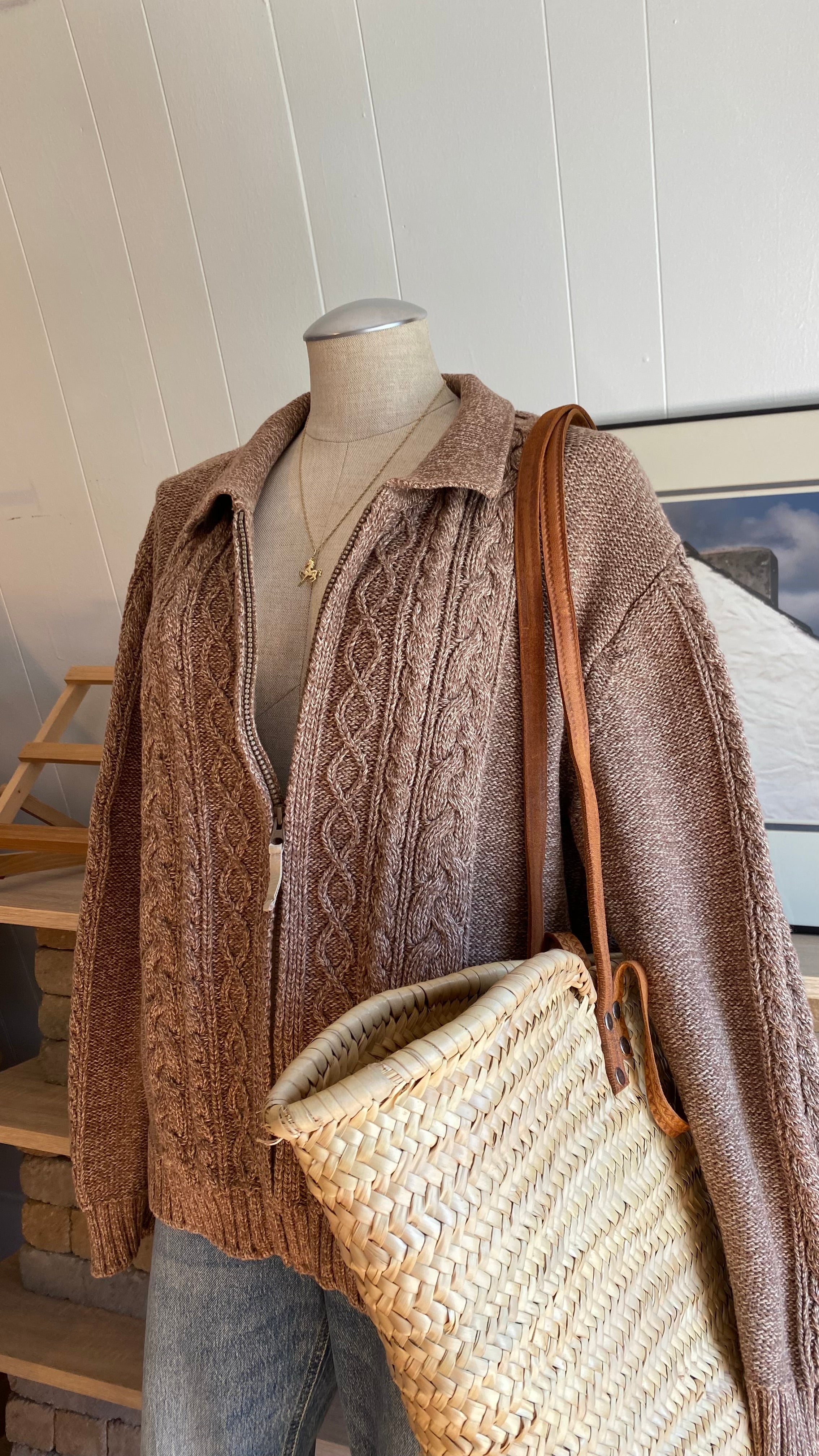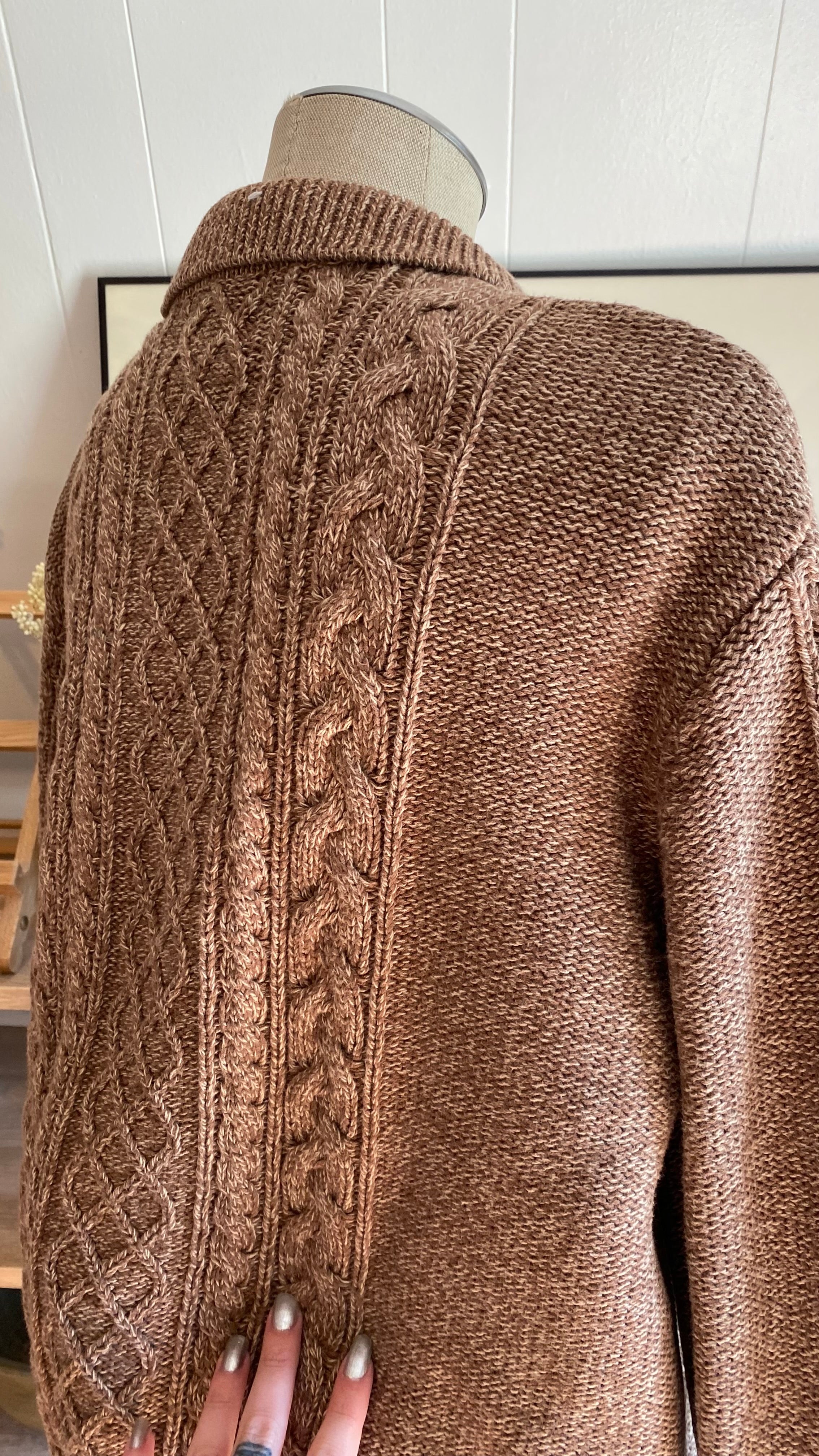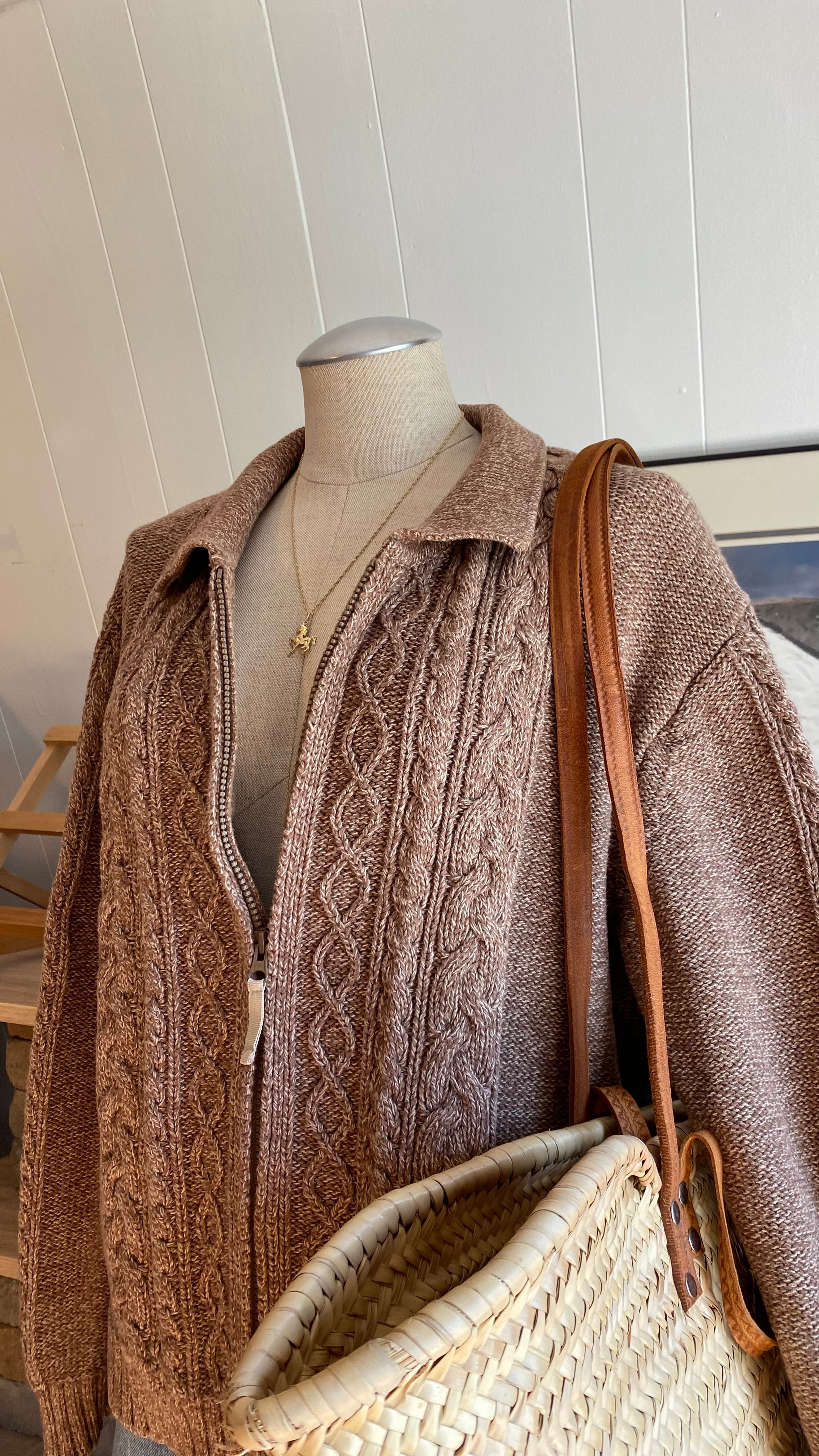 Xxl cotton cable knit zip up