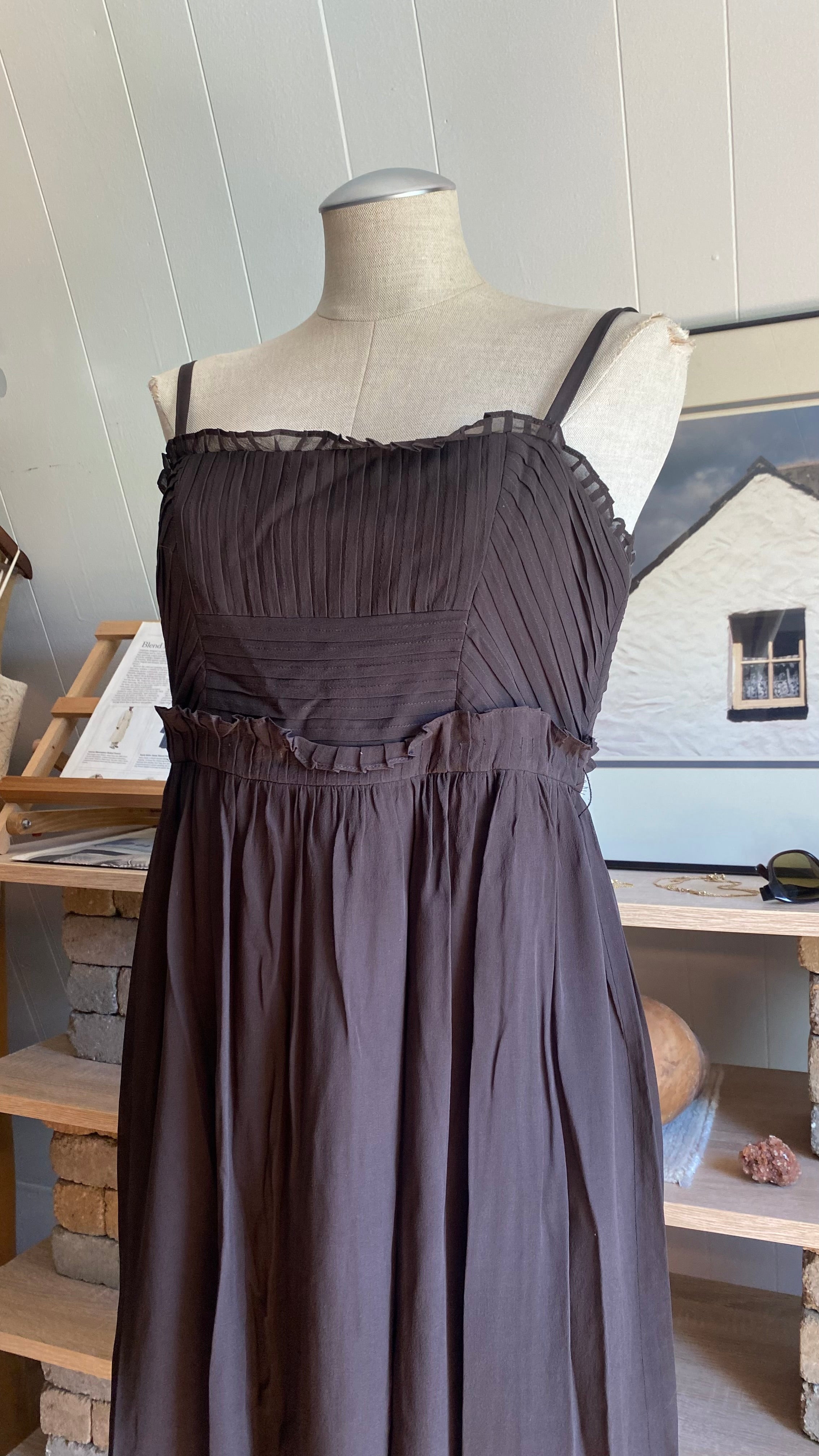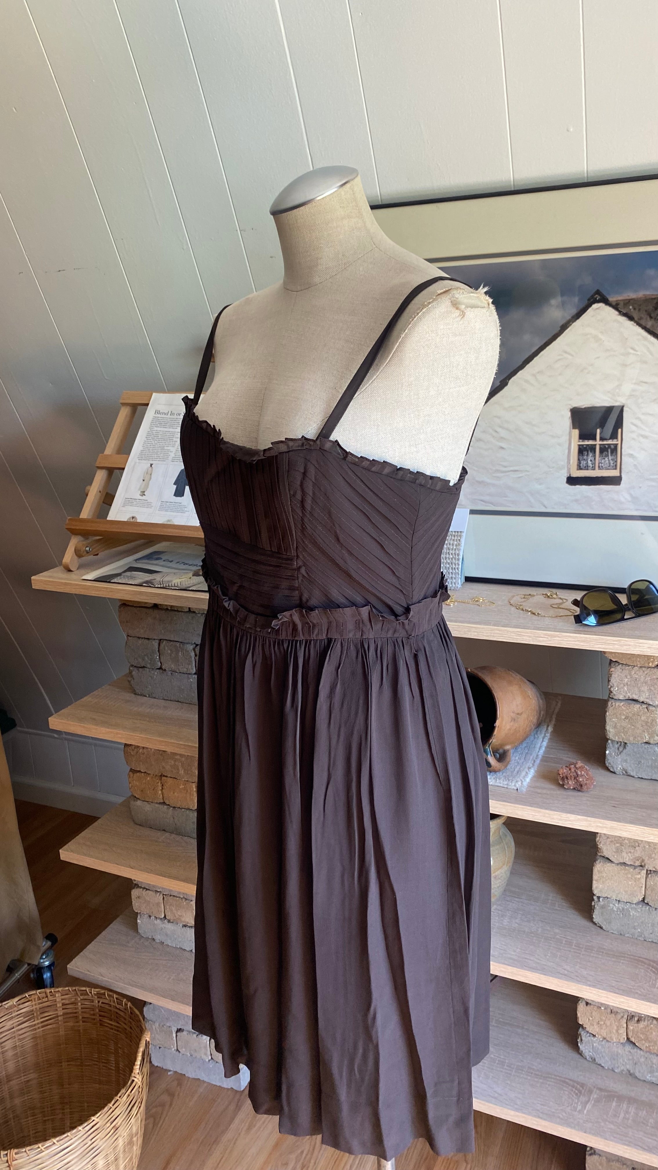 Y2k 100% silk and silk lined brown dress woman’s 10