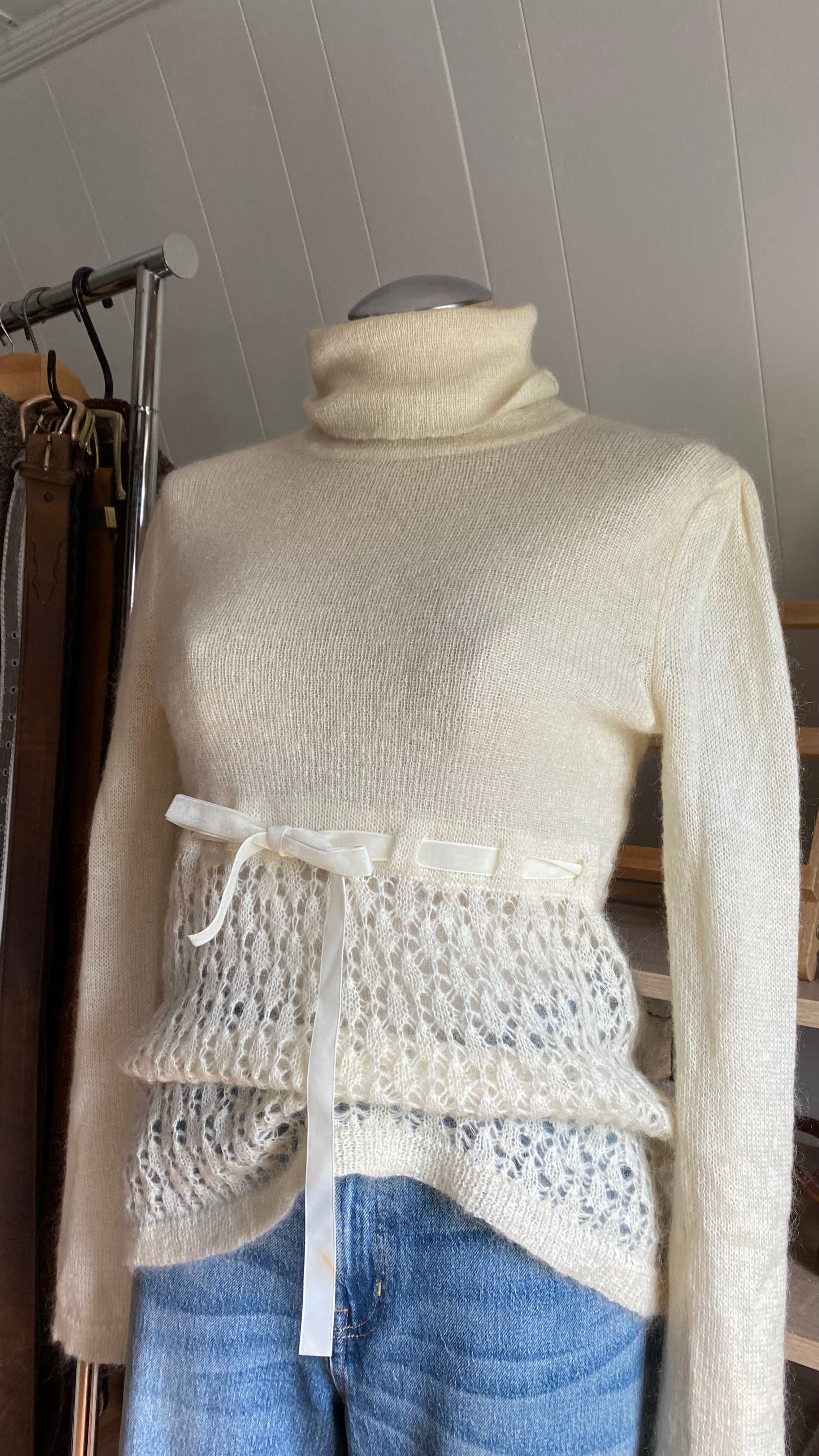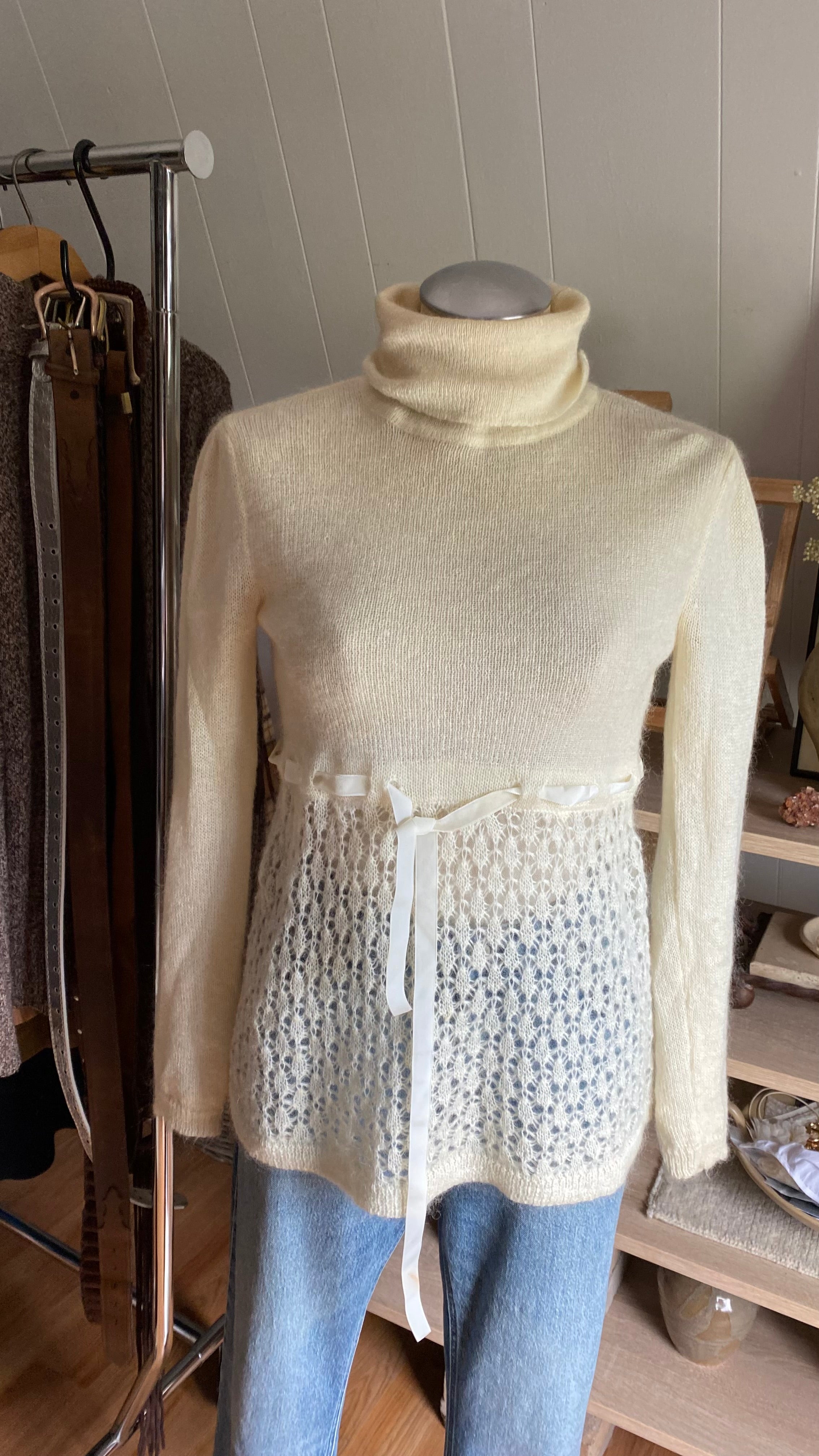 Y2k kid mohair blend delicate cream knit size xs
