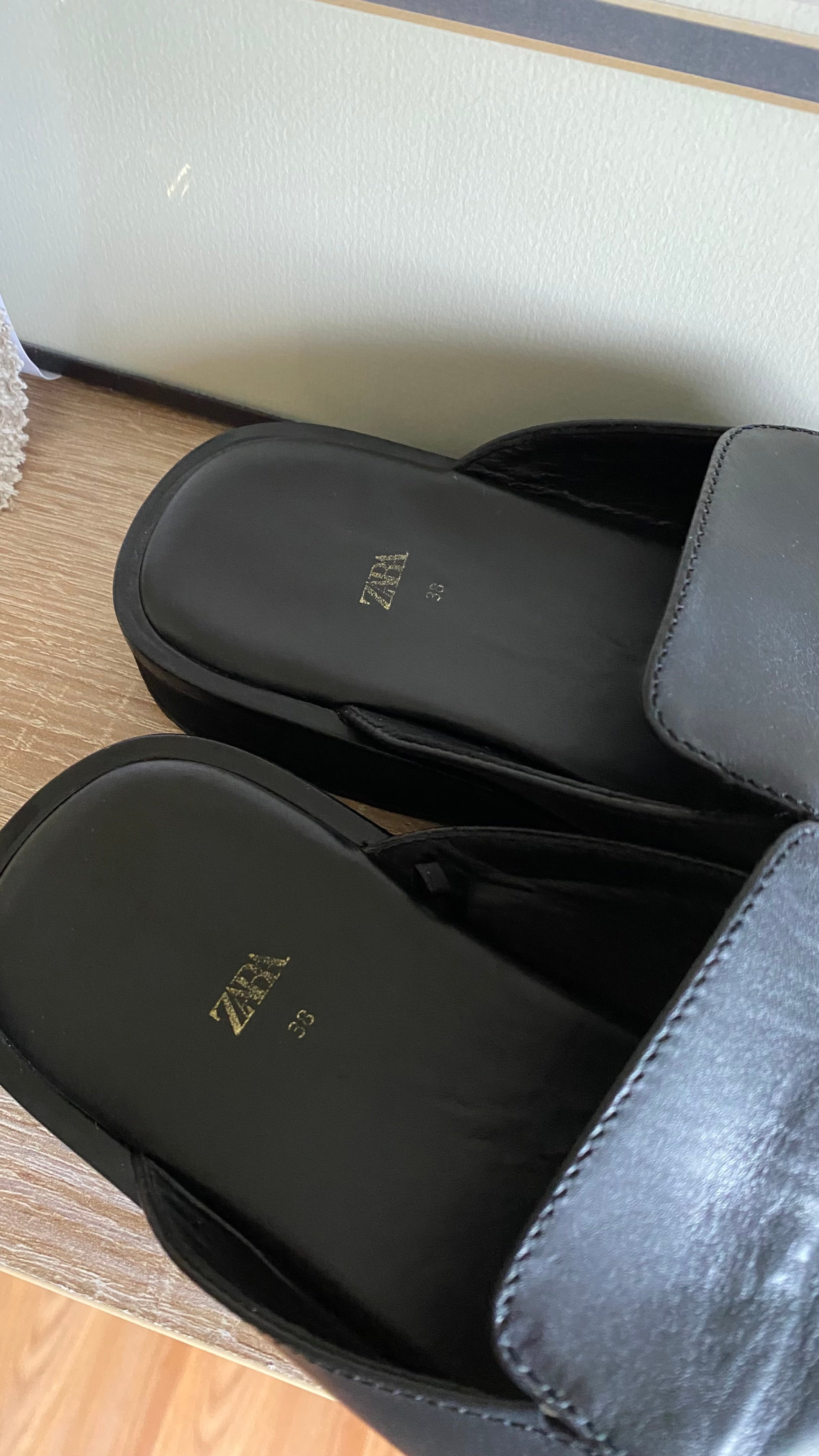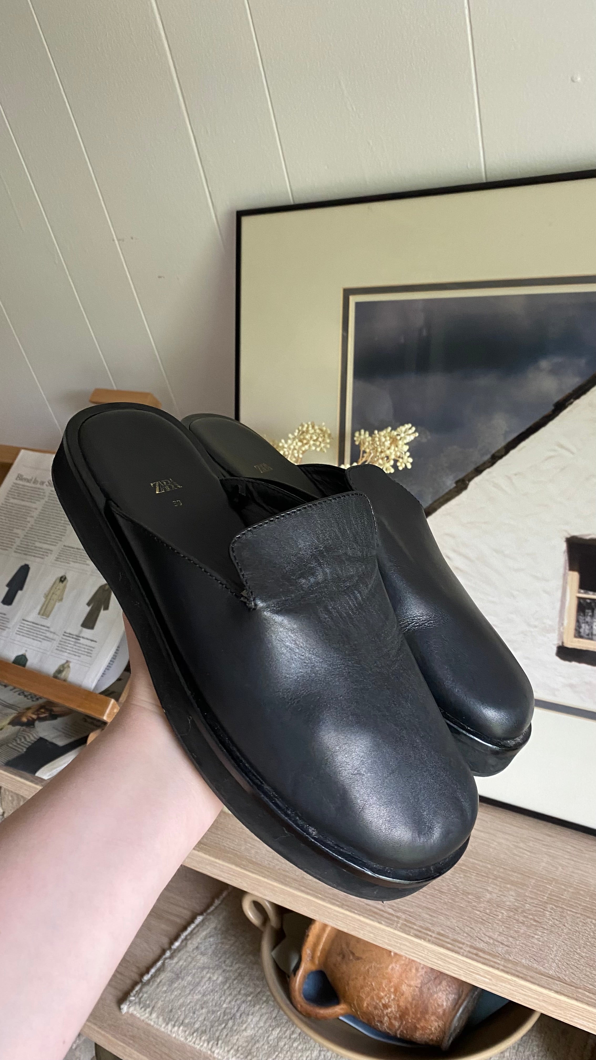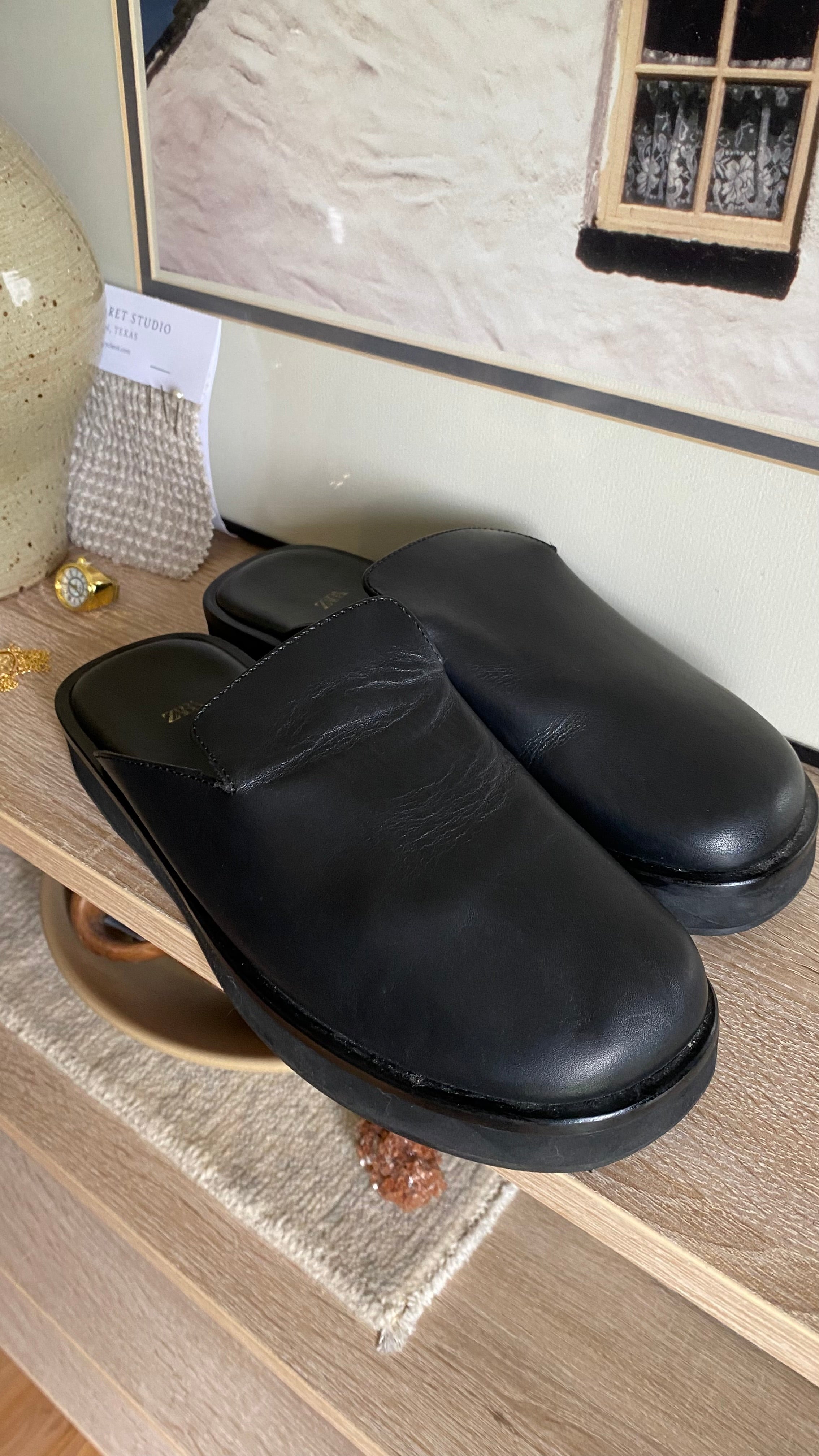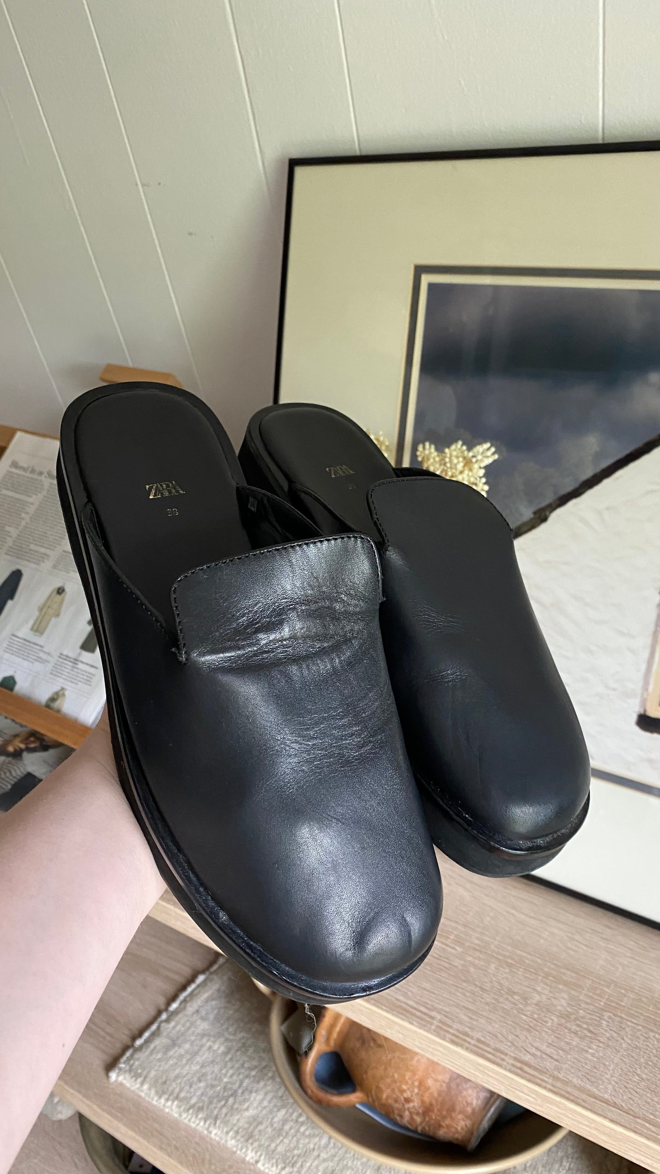 Zara 38 (7.5) black leather clogs run large best for 8 woman’s