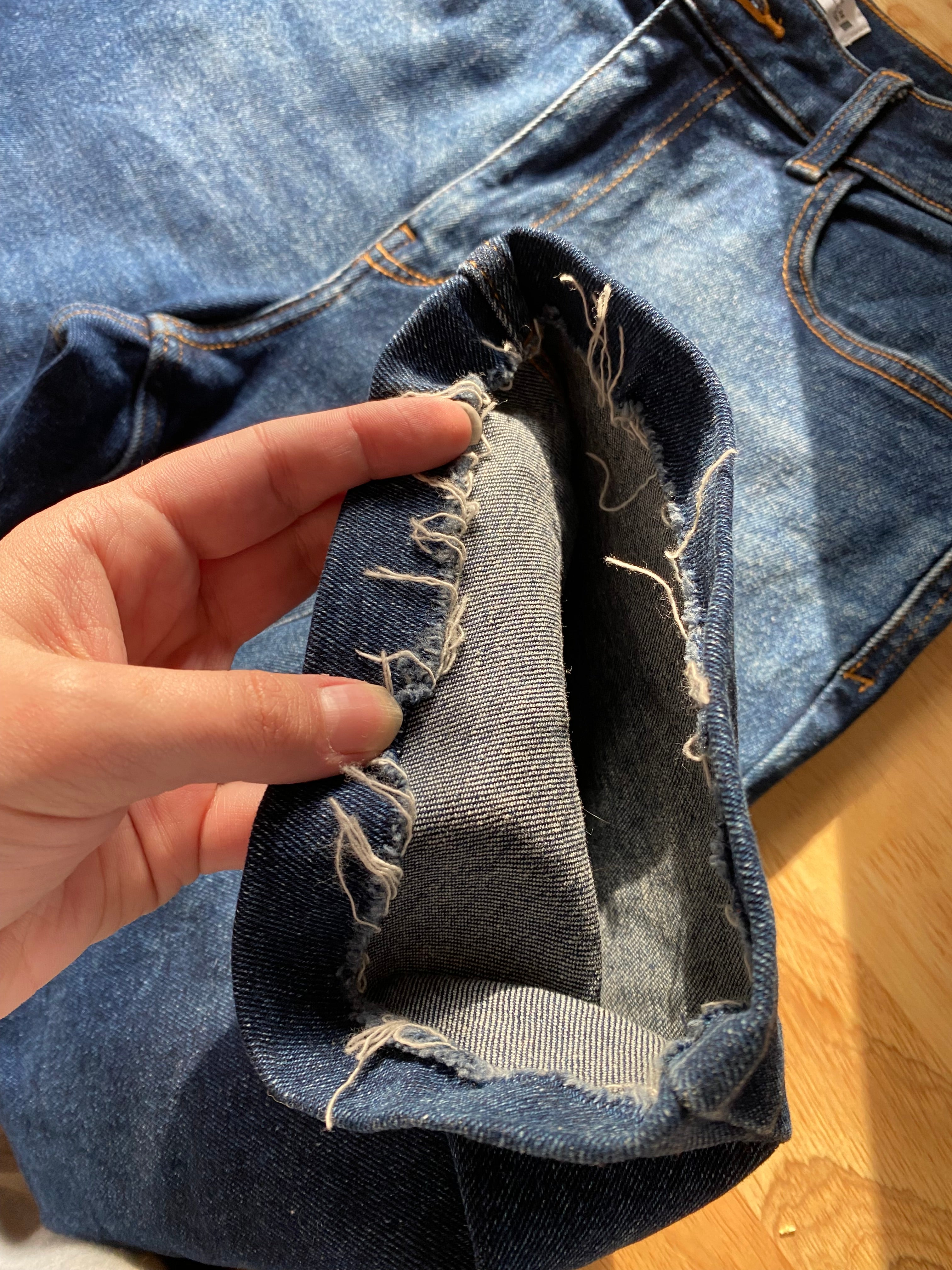 these jeans have been hemmed by previous owner